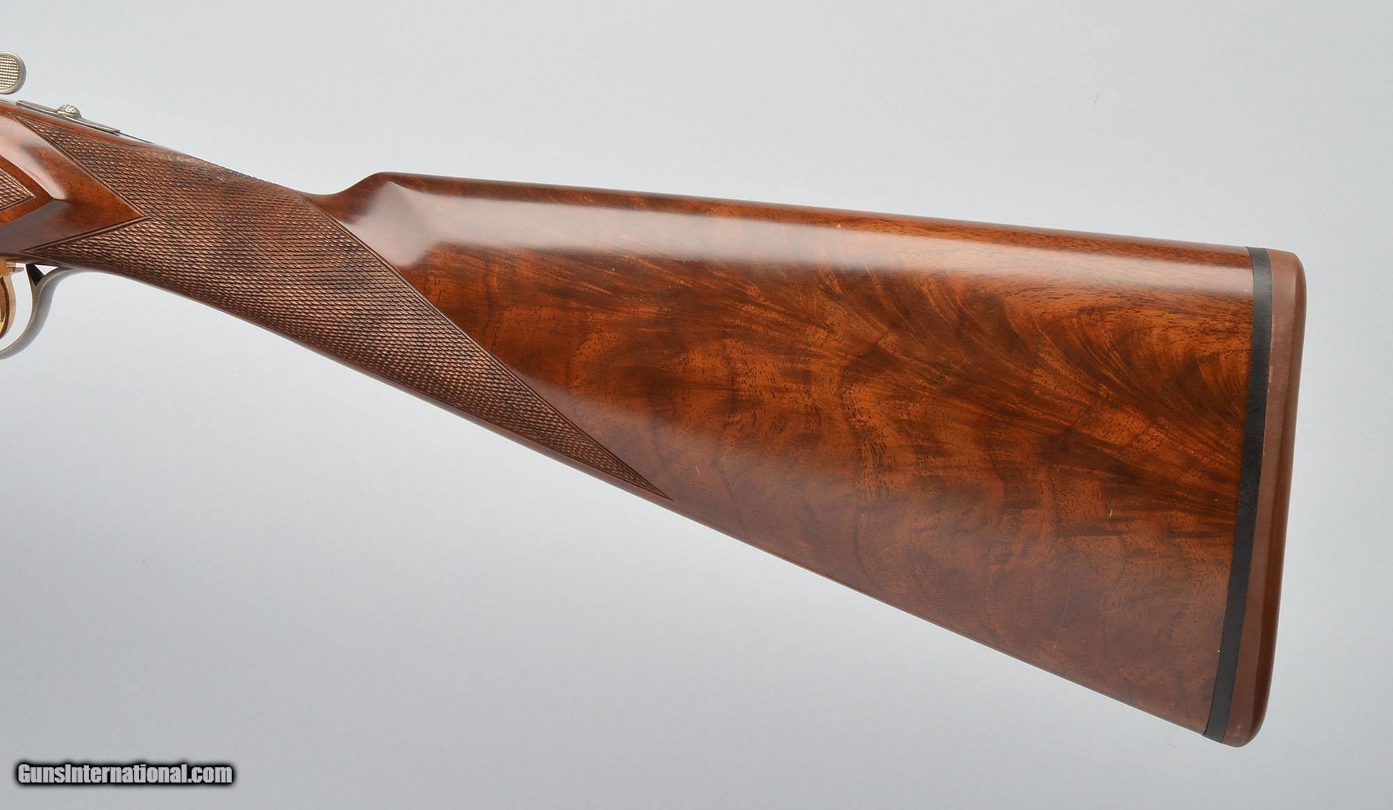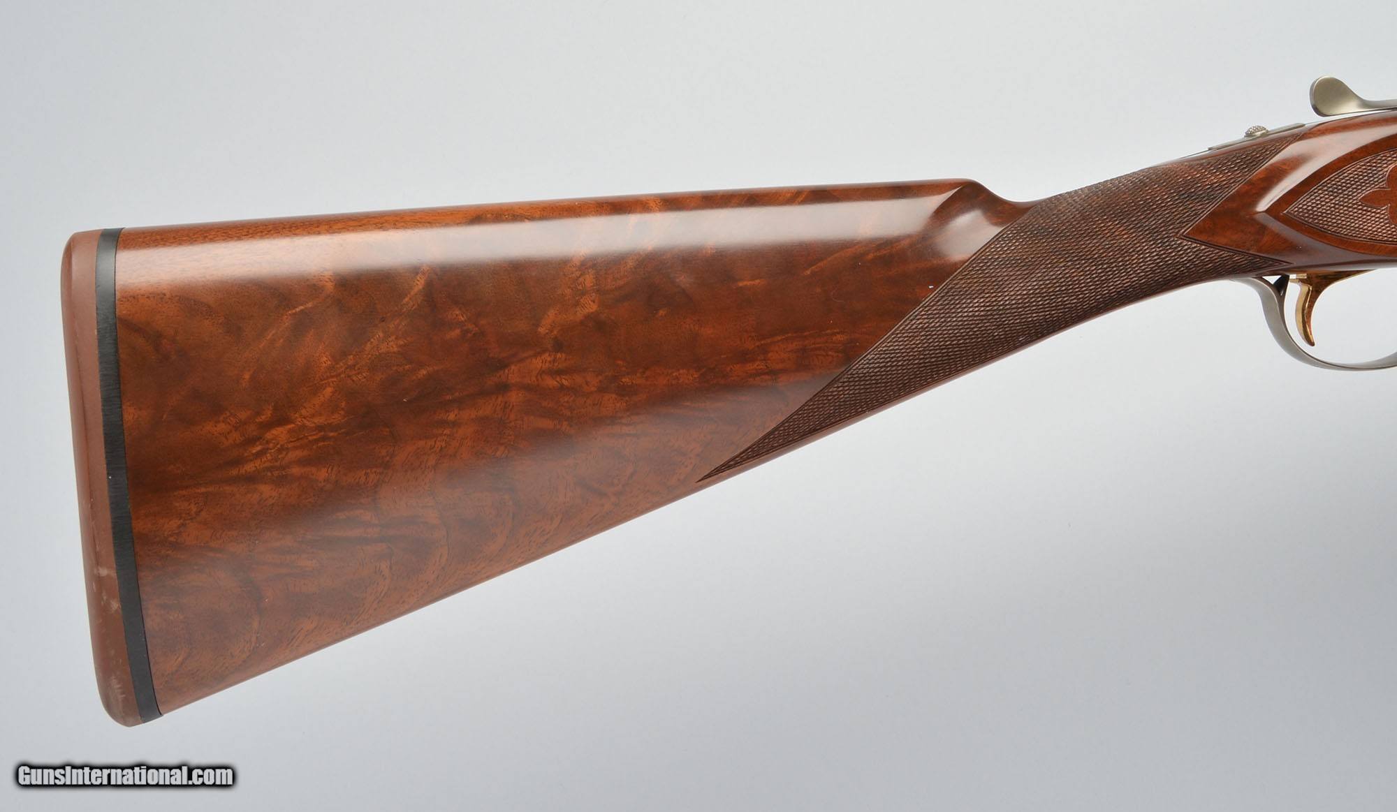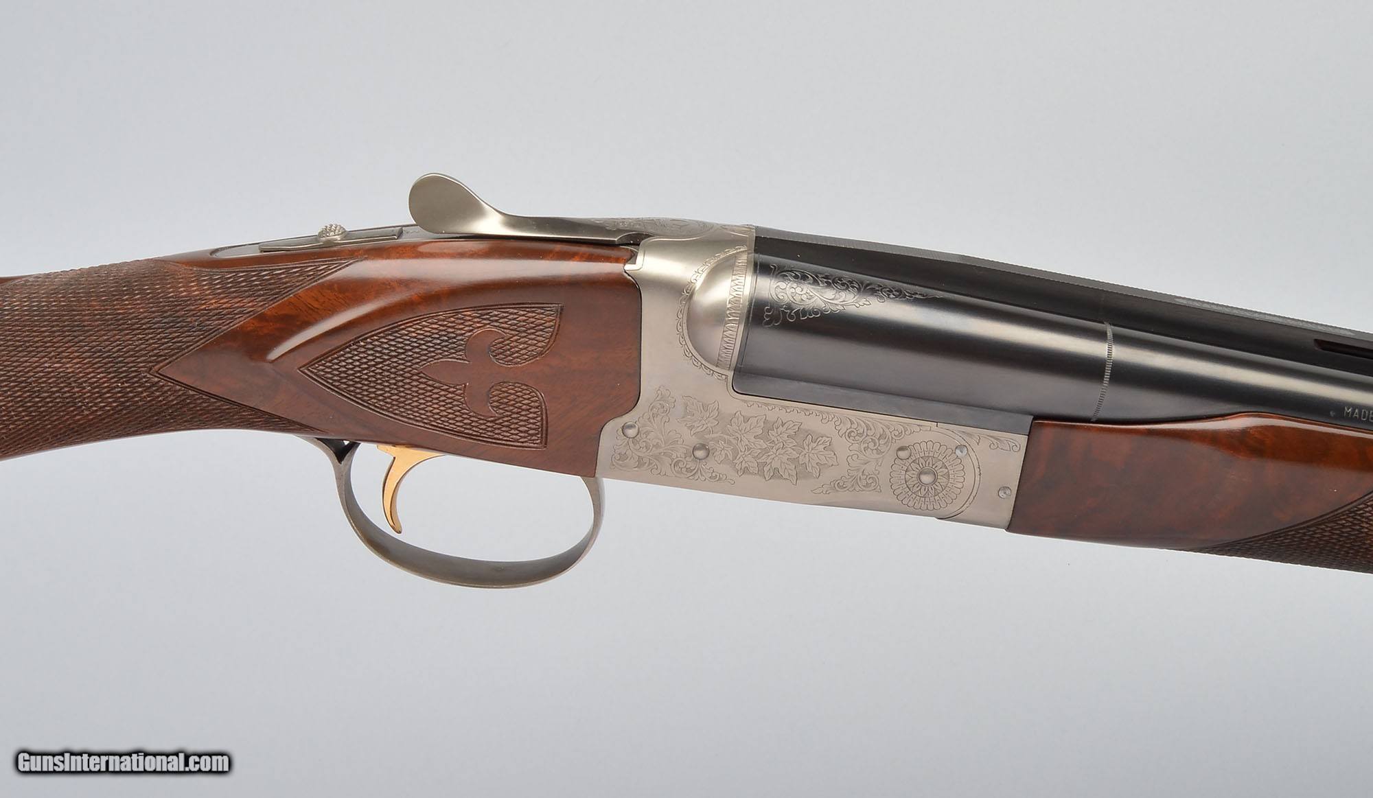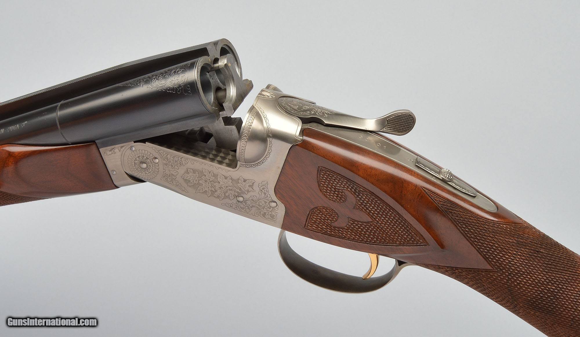 Description: Winchester 23 Grade Canadian. Boxlock action with single select trigger, auto-safety and ejectors. Coin finished receiver with foliate and oak leaf engraving. AAA grade walnut straight grip stock with fleur-de- lis style checkering pattern, cast off for the right handed shooter. Winchester produced only 450 shotguns in 20 gauge. 20 Gauge SOLD Chambers: 3 Inch Metal Condition: Blued Barrels, Coin Finished Receiver Wood Condition: AAA Grade Walnut Bore Condition: Bright Barrels: 25.5" BBL Triggers: SST Stock Dimensions: 14 1/4" LOP Fore End: Beavertail Butt Pad: Winchester Recoil Pad Weight: 7 lbs. 4 oz, Sights: Vent Rib, White Front and Mid Bead Chokes: Imp.Cyl. / Modified Item Location: Buda, TX |