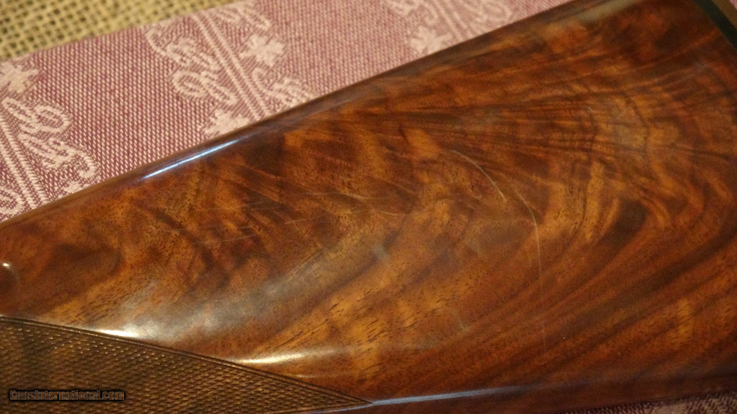 Description: Winchester Model 23 Grande Canadian 20 gauge side by side in great condition with original case in great condition as well. Has beautiful upgraded wood. Fixed chokes improved cylinder and modified with 26in barrels. some scratches on left cheekpiece (let me know if you can't see them in the pictures and will try to send more with detail). Great gun with great feel for quail, pheasant, etc. Going on a safari so trading in! Please contact me for any more information you would like! I believe this gun was made somewhere between 1986 and 1988. There were only about 450 of this shotgun made. SOLD Manufacturer: Winchester Model: Model 23 - Grande Canadian Serial Number: 162 Chambers: 3 Ejectors: Yes Condition: Excellent Metal Condition: Excellent Wood Condition: Excellent Bore Condition: Excellent Barrels: 26 Barrel Type: SxS Action: Boxlock Triggers: single Gauge Info: 20 Stock: English LOP: 14 1/4 Finish: Glossy Choke Left: Mod Choke Right: Imp. Cly. Case: Yes Item Location: Texas |