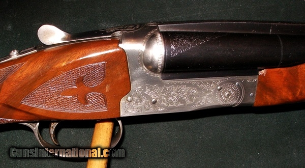Description: WINCHESTER MODEL 23 GRANDE CANADIAN BOXLOCK 20GA S/S SHOTGUN, SCROLL WITH OAKLEAVES ON COIN FINISHED ACTION, 25 1/2" BBLS, 2 3/4 & 3", IC/MOD, VENT RIB, EJECTORS, SST, BEAUTIFUL FEATHERCROTCH WALNUT, ST/SMALL BEAVERTAIL FOREND, LOP 14 3/8, 1 1/2, 2 3/8, 7LBS 2OZ, 98% BLUE, WOOD HAS FEW HANDLING MARKS, A TIGHT ACTION! SOLD |