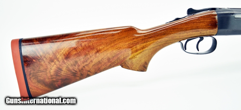 Description: Winchester 24 12 Gauge shotgun. Side by side field gun with 28” full/modified barrels. Has extra fancy custom stock of feathered walnut in excellent condition.