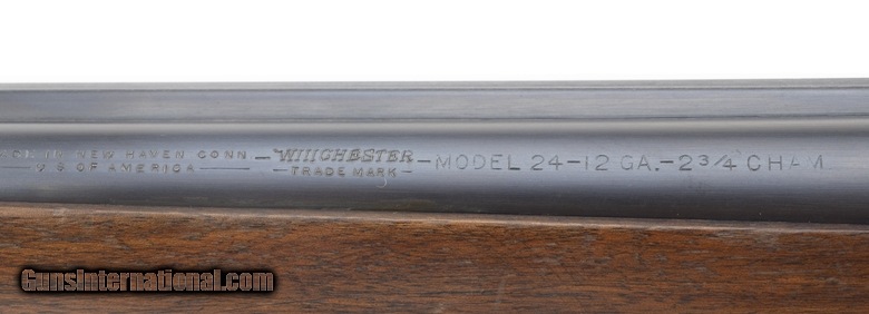 Description: Winchester 24 12 Gauge shotgun. Side by side made in 1948. 30” barrels and 14â…?” L.O.P. Good overall condition.