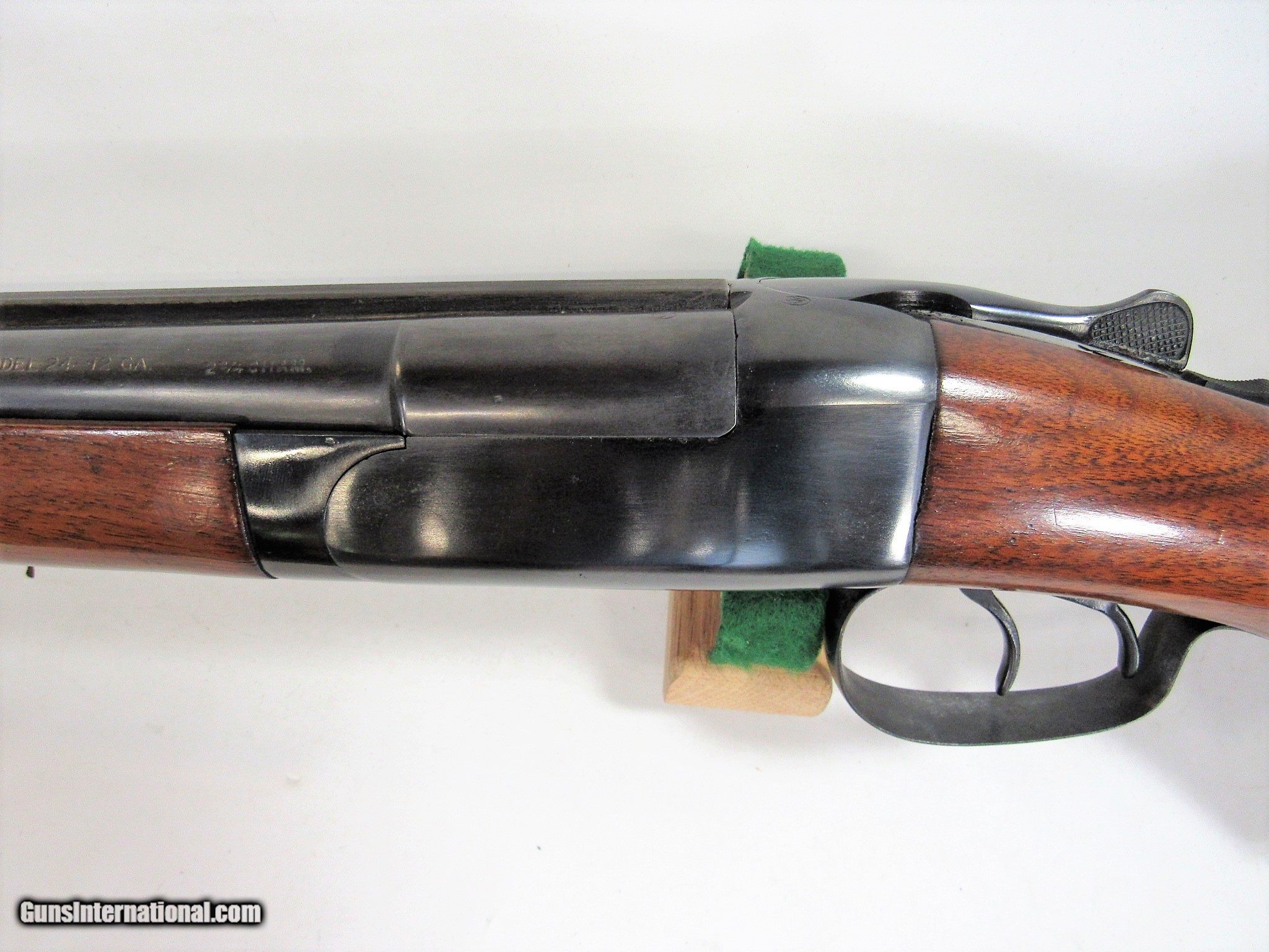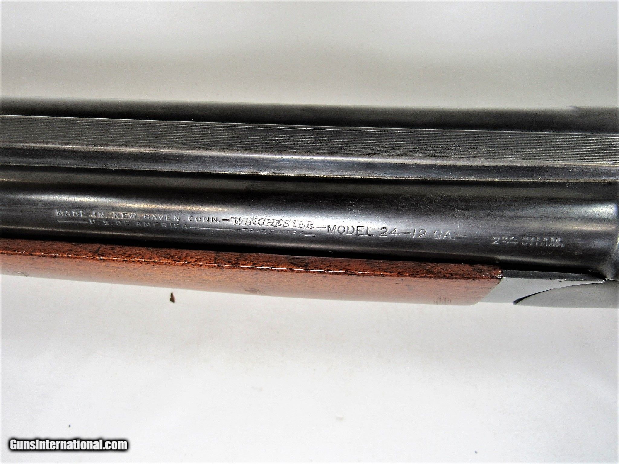 Description: WINCHESTER 24 12GA 30” F/M. 98% NICE OLD REFINISH. 795.00WINCHESTER MODEL 24 12GA 30” F/M. 95% BARRELS, 90% RECEIVER, NICE BORES. STRAIGHT GRIP WITH 13 5/8” LOP OVER A 1” PAD. WOOD A LITTLE MARKED UP. SOLD Curio/Relic: Yes Shotgun Gauge: 12 Gauge |