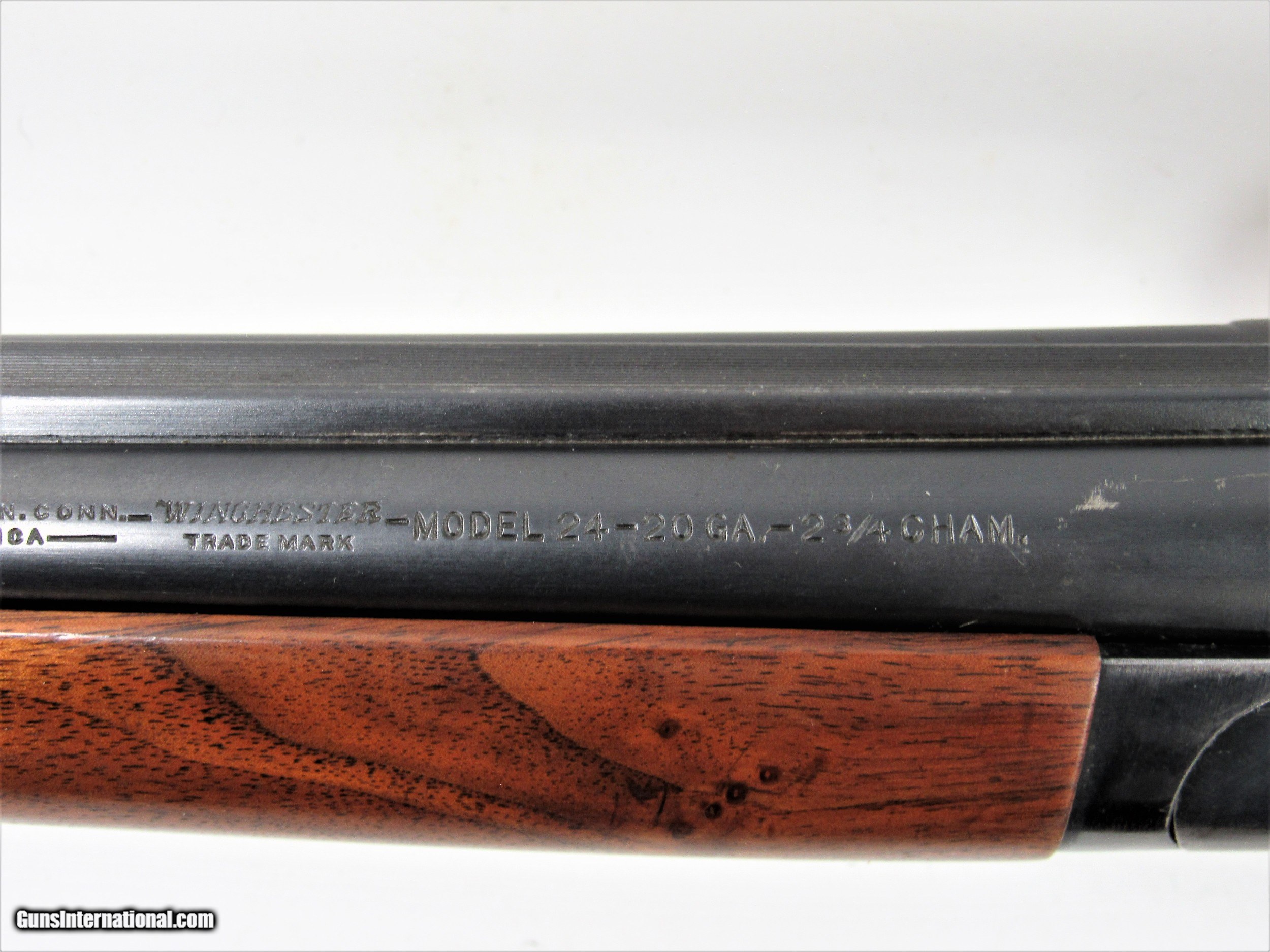 Description: WINCHESTER 24 20GA 28” F/M. 97% BARRELS AND EXCELLENT BORES. 90% RECEIVER WITH ONE AREA OF LIGHT PITTING. NICE WOOD, BUTT STOCK HAS BEEN CHECKERED. NICE TIGHT GUN. SOLD Curio/Relic: Yes Shotgun Gauge: 20 Gauge |