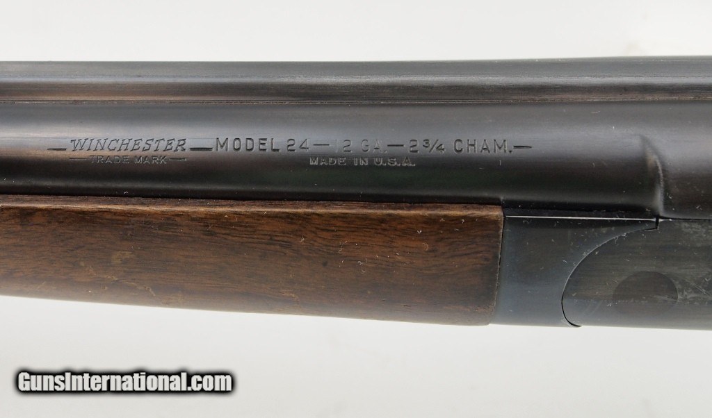 Description: Winchester 24 SXS MFG 1951 12 GA, 30" mirror bright smooth bores, fixed choke FULL/MOD, solid rib, metal front bead, blued finish, very nice smooth walnut stock-forearm, 14 3/8" LOP, 1 3/4" DAC, 2 1/4" DAH, and Winchester black checkered butt plate.This is a very clean shotgun! Add 3% for Credit Card Shipping $35.00 SOLD |