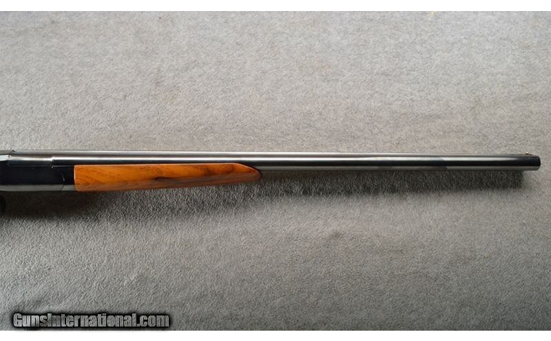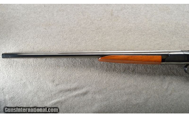 Description: This is a very nicely redone Winchester model 24 shotgun. The shotgun has 2 3/4" chambers and open chokes. The blue has all been refinishes to a nice gloss blue. The walnut stock has also been refinished with a nice gloss finish and a Kick-EEz butt pad added. 12 Gauge SOLD Chambers: 2 3/4" Side X Side with extractors. Metal Condition: Excellent refinishes. Wood Condition: Excellent refinishes. Bore Condition: Bright and shiny. Barrels: 26" Gloss blue with a solid rib. Triggers: Double triggers. Stock Dimensions: 14 1/2" LOP to the front trigger. Fore End: Non-checkered walnut beavertail style. Butt Pad: Matching walnut with a pistol grip and a Kick EEz butt pad. Weight: 7 lbs. 7 oz. Sights: Silver mid and a brass front bead on the solid rib. Chokes: Fixed MOD and CYL. Item Location: Owatonna, MN |