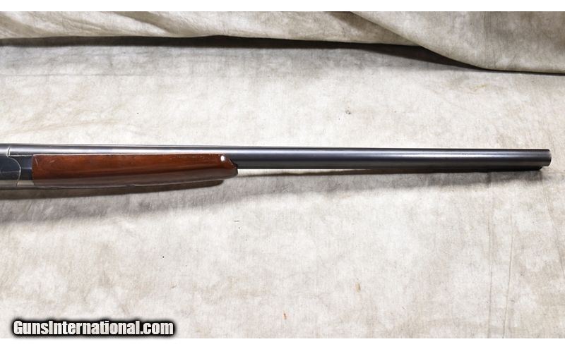 Description: The everyday version of the Winchester side-by-sides featuring very nice wood, open chokes, and light weight. This one was made in 1946. 12 Gauge SOLD Curio/Relic: Yes Chambers: 2 - 2-3/4 inch Metal Condition: Good. Much of the blue remains but there is wear on the carry point as well as a number of scratches. Wood Condition: Very good. Nice finish and few defects. Bore Condition: Shiny and bright. Barrels: 26 inches Triggers: Factory double triggers. Stock Dimensions: LOP: 14-1/8 inches Fore End: Matching beavertail. Butt Pad: Black wooden plate. Weight: 7 lb - 6 oz Sights: Silver bead on matted solid rib. Chokes: Fixed Cyl. and Imp. Cyl. Item Location: Rogers |