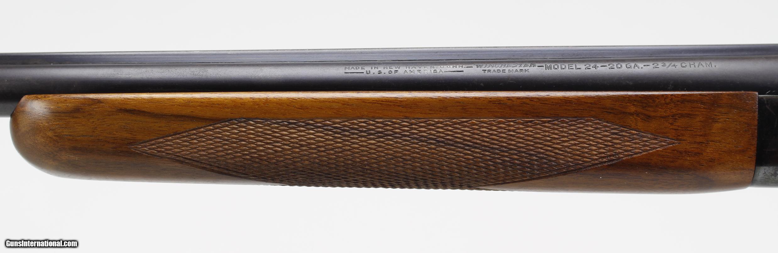 Description: WINCHESTER MODEL 24, 20GA, DELUXE CHECKERED WOOD, LOP:14 1/4", DAC: 1 1/4", DAH: 2 3/4", Excellent Bore, IC/Mod chokes, SN#72313, MFG: 1949. Ships to Lower 48, $40.00 SOLD Curio/Relic: Yes Manufacturer: Winchester Model: 24 Serial Number: 72313 Condition: VG Barrels: 26 Gauge Info: 20 |