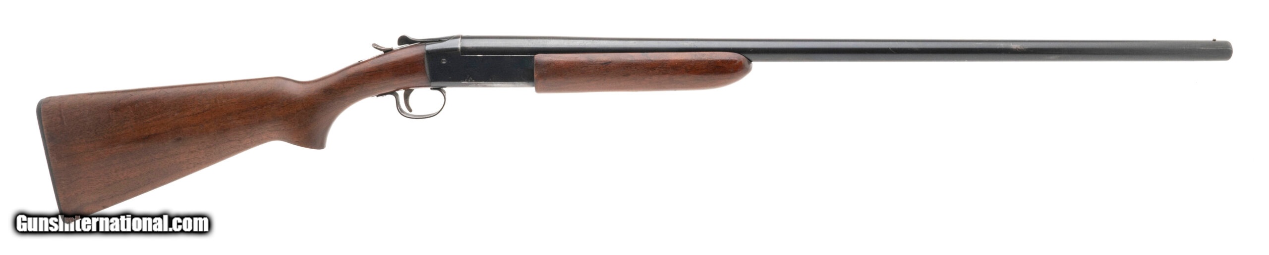 Description: "SN: NSN. 1936-1963. Single-shot Shotgun chambered in 12 Gauge 2.75 with a 30"" barrel. Bore condition is great. Metal exterior condition is very good with majority of its bluing remaining with handling marks throughout. Wood is in very good condition with some handling marks expected with its age. Original butt plate is in great condition. SOLD |