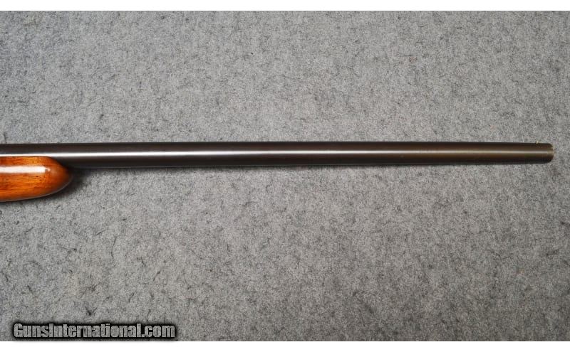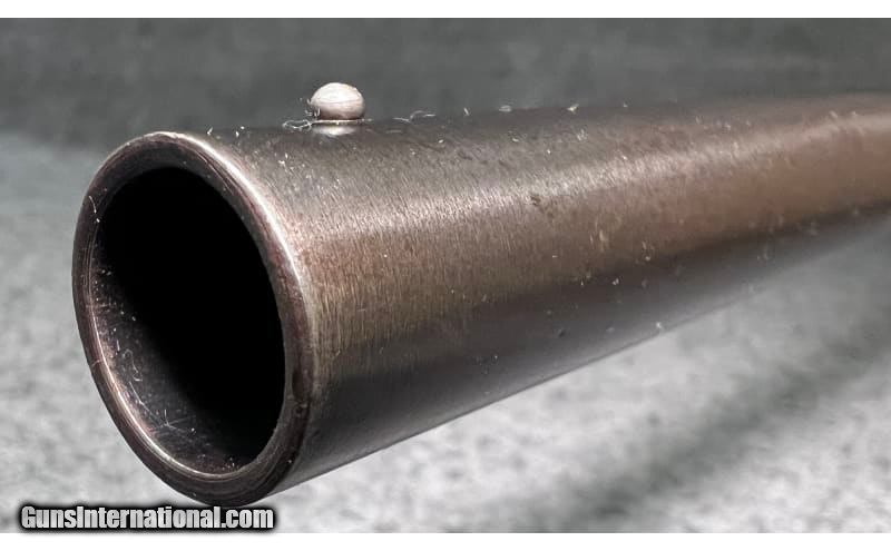 Description: This vintage break-action shotgun is a Winchester Model 37 chambered in 20 Gauge. It has a serrated hammer at the rear of the receiver, a silver bead front sight, an original Winchester Repeating Arms Co butt plate, and a smooth wood fore arm and butt stock. This firearm retains significant blue over 70% of the metal; however, the receiver shows considerable bluing loss on underside, but it has a great patina. The finish on the wood surfaces is in good condition, but does show light handling marks and wear throughout. 20 Gauge SOLD Chambers: 2¾" chamber Metal Condition: "Firearm retains significant blue over 70% of the metal, receiver shows considerable bluing loss on underside (great patina) Wood Condition: "Finish on wood surfaces is in good condition, but does show light handling marks and wear throughout Bore Condition: Bore is bright and shiny Barrels: 28" barrel Stock Dimensions: "14¼"" LOP, 44¼"" overall length Fore End: Smooth wood fore arm Butt Pad: Original Winchester Repeating Arms Co butt plate Weight: 5 lb 14 oz Sights: Silver bead front sight Chokes: Integral improved modified choke Item Location: Wichita, KS |