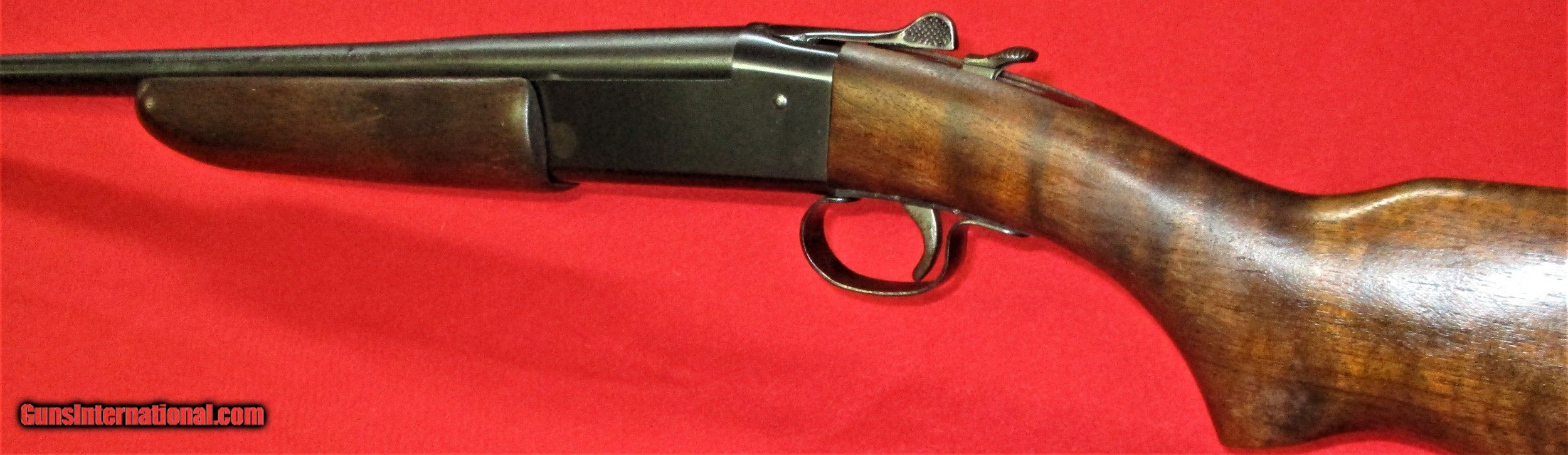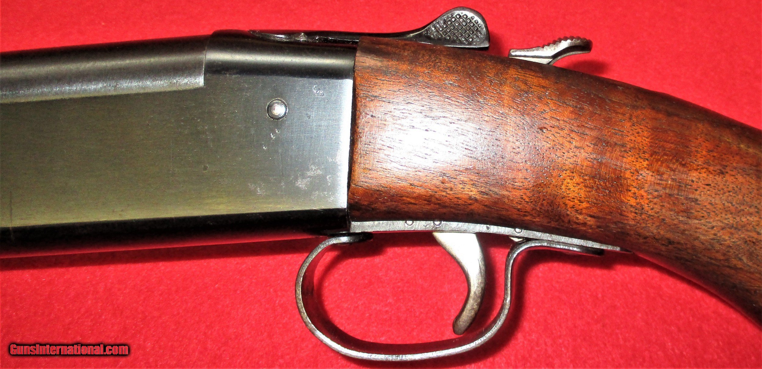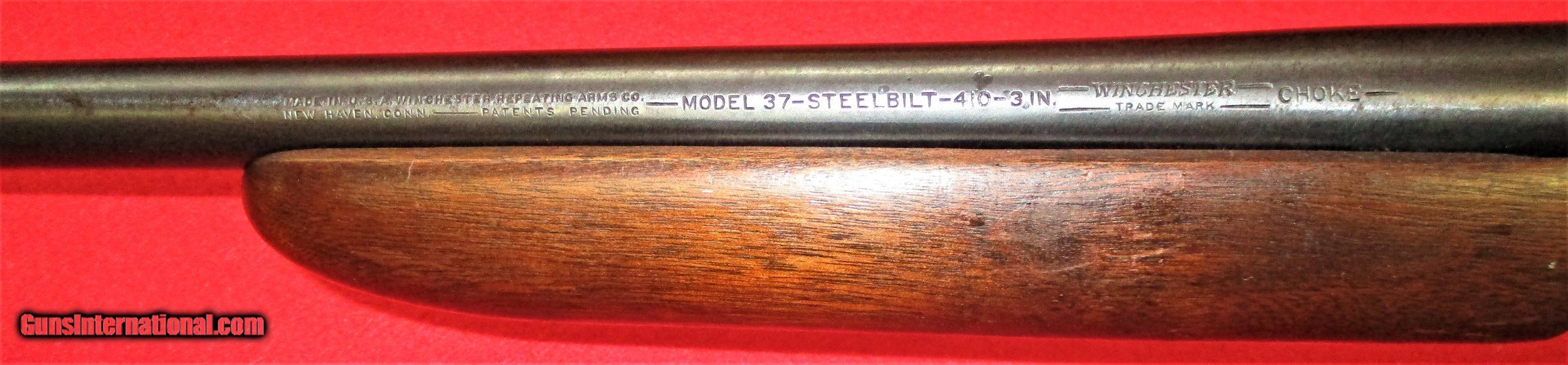 Description: SALE PENDING on this Winchester Model 37 Shotgun in 410 Bore.The barrel is 28" with Full Choke and factory front bead. The blue on the barrel is rated about 90% with some light freckling in the chamber area and down the barrel about 10". The blue on the receiver is quite nice rated about 92% plus. The wood is Walnut with finish loss and some minor scratches and dings. There are no cracks or extra holes. The rear stock does not fit the receiver perfectly as seen in pictures.The butt plate has the Winchester Logo and is checkered but it may be a reproduction as fit is not perfect either. I rate the wood at about 88%.The bore is clean and very shiny. Lock up is very tight and function seems perfect.The lever sits right of center. The hammer is the larger late production type.This is a nice little 410 and would make a great truck gun riding the dirt roads or a fine shotgun for a young hunter. I will ship this gun to a FFL within the Continental US only. The lower 48 states will pay $30.00 for shipping, however HI,AK and CA will pay extra. Email your questions or feel free to call me at the telephone numbers listed. I am a storefront FFL in business over 16 years with about 1500 A+ internet feedback ratings. Thank you, Glenn SOLD Shotgun Gauge: .410 Gauge Manufacturer: Winchester Model: 37 Serial Number: None Barrel Length: 28 Condition: Very Good |