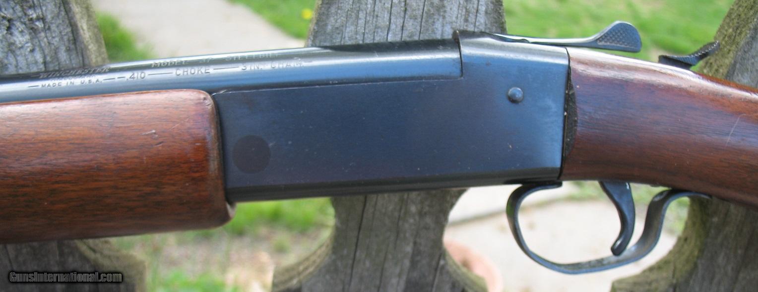 Description: WINCHESTER - MODEL 37 - 410 ga. SINGLE BARREL TOP BREAK - 28" BARREL FULL CHOKE - MARKED "STEEL BILT" - 3 INCH CHAMBER - BLUING 98% - WOOD 99% - $350 SOLD |