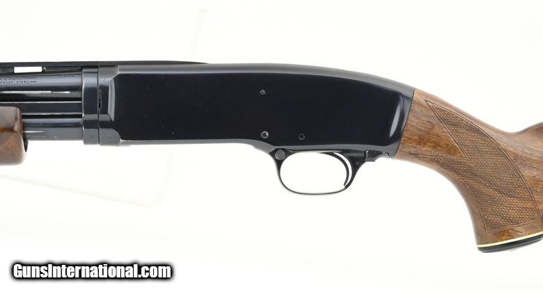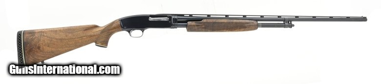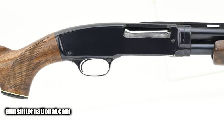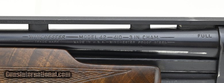 Description: "Winchester 42 .410 Gauge shotgun. Beautiful upgraded field gun. A Simmons vent rib was added as well as a deluxe figured custom stock. The gun was re-blued when the rib was added. L.O.P. is 14¾" over a recoil pad. Has a 28" Full choke barrel. A great looking gun, ready for the field. SOLD |