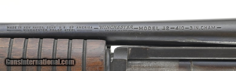 Description: " Winchester 42 .410 Gauge shotgun. Slide action made in 1952. 28” Barrel choked Full. Bore is excellent. Has some field wear, otherwise very good condition.