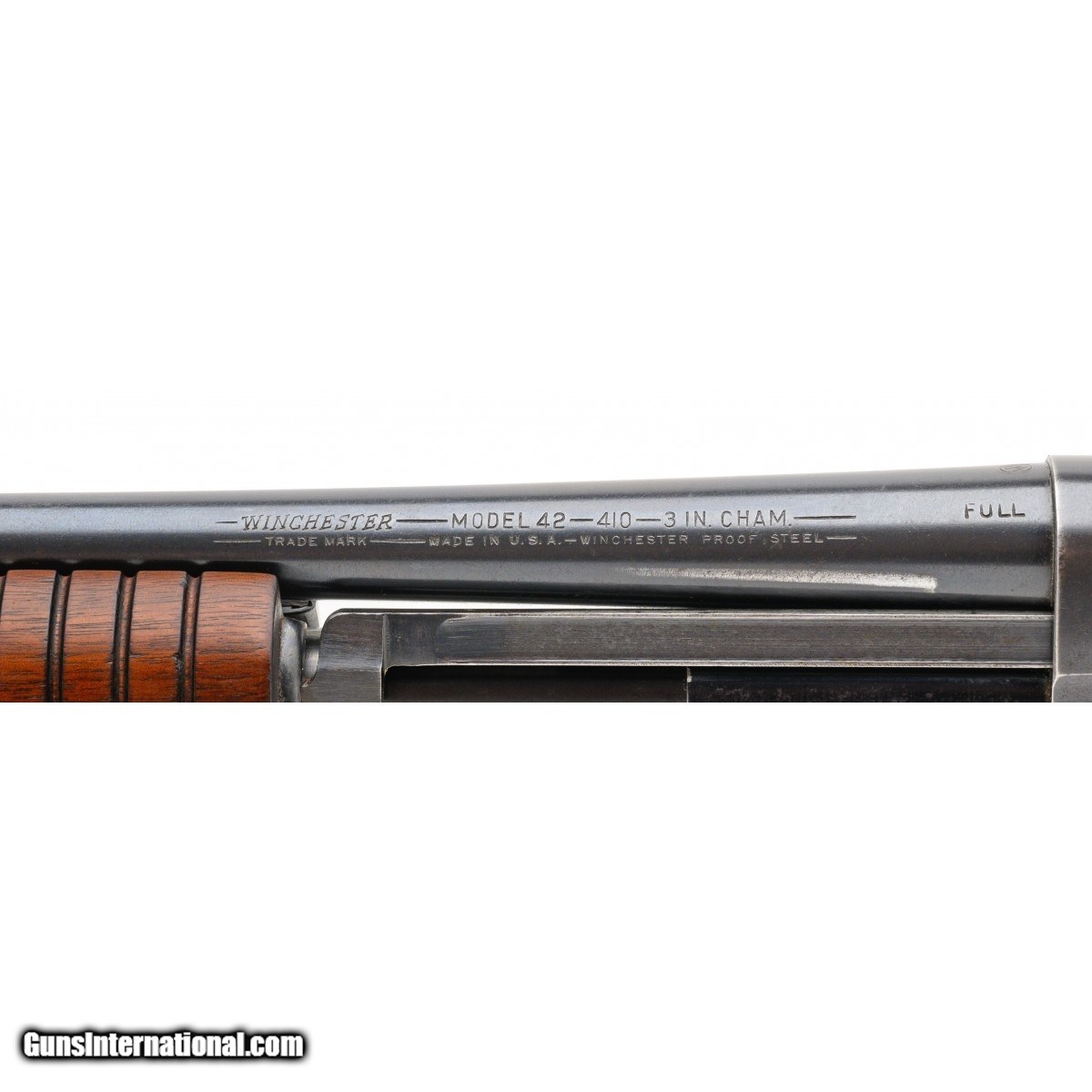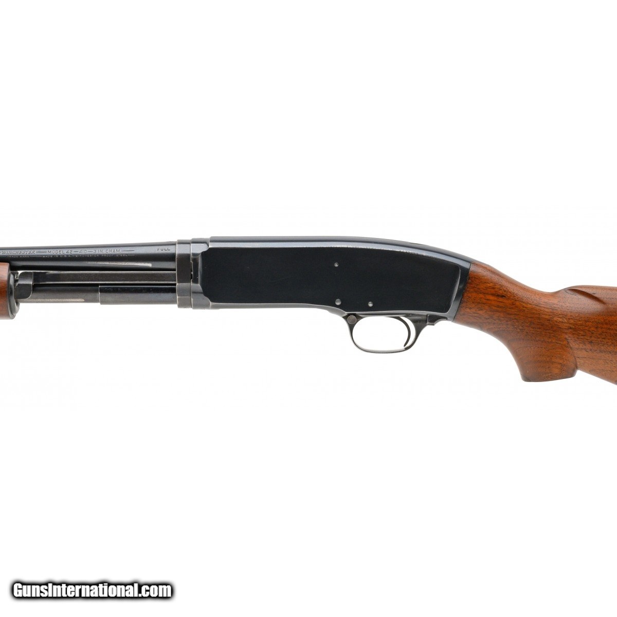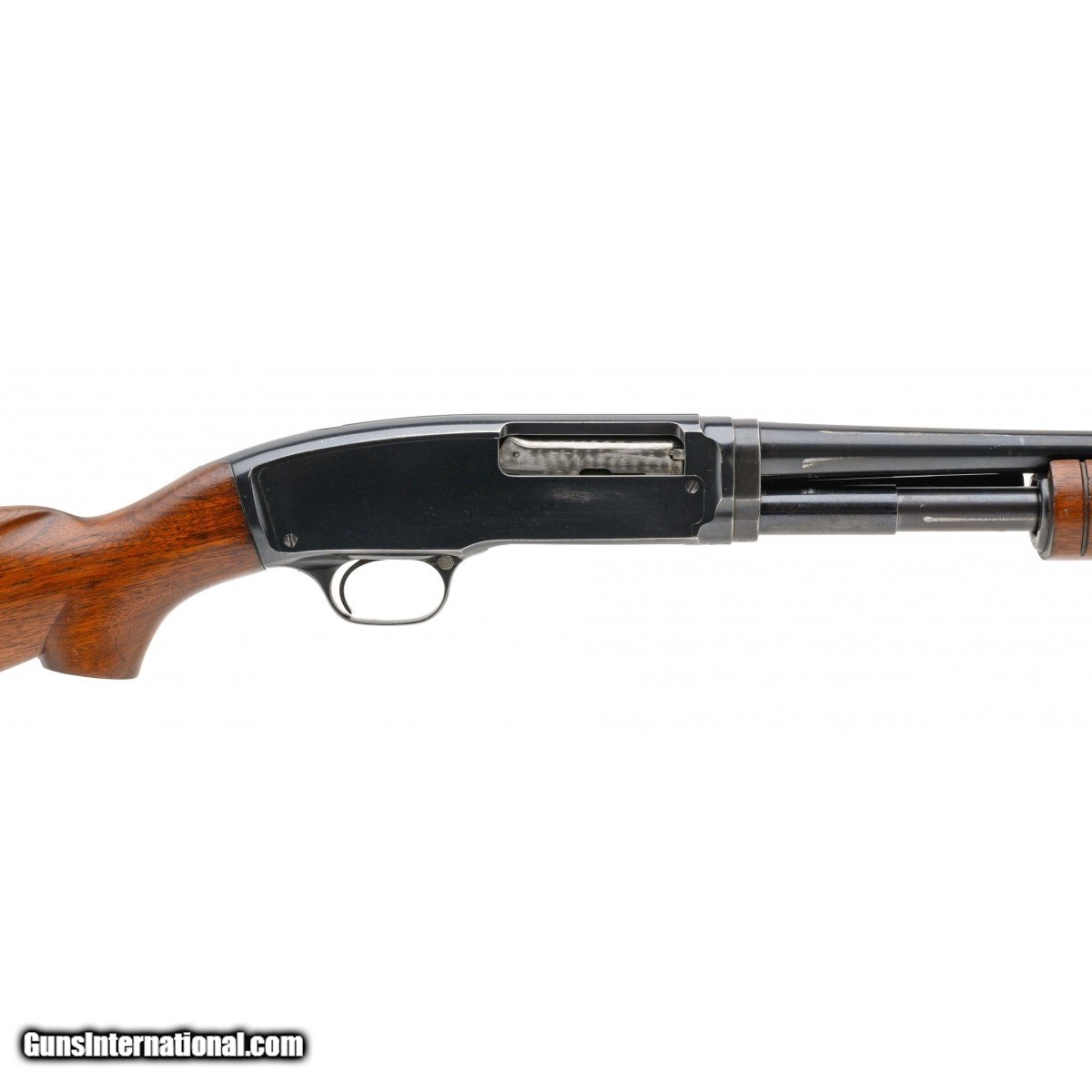 Description: "SN: 107695. Made in 1951. .410 Gauge with a 26"" barrel choked to full. Bore is in very good condition. Pre 64' Winchester pump action field shotgun. Finish is in very good condition with 95% of factory blue finish retained with speckled wear on receiver. Wood stock is very good condition with field wear. LOP is 14"". Overall condition is very good. SOLD |