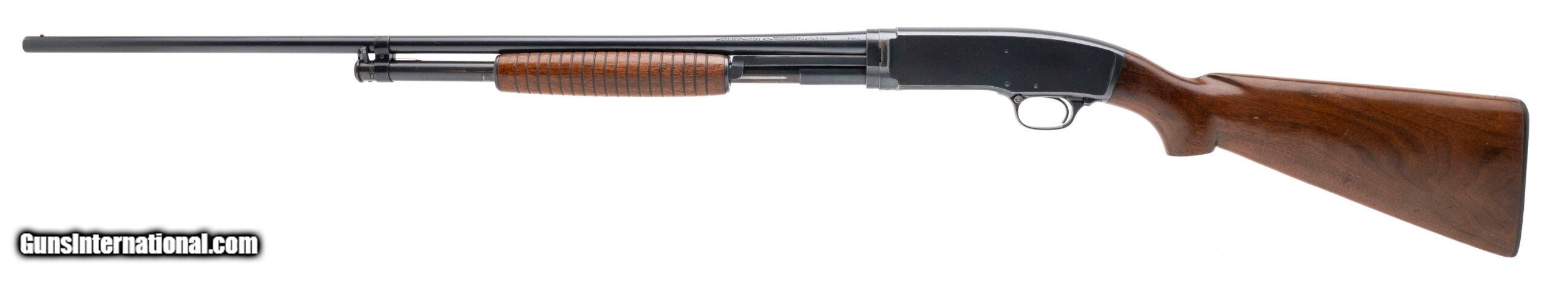 Description: "SN: 23973 made in 1936. Pump action takedown 410 gauge shotgun with a 28" barrel with 3" chamber and fixed full choke. Walnut furniture with a 14.25" LOP to the original butt plate. Original bluing is in very good condition with some light wear and the bore is excellent. Dallas Location SOLD |