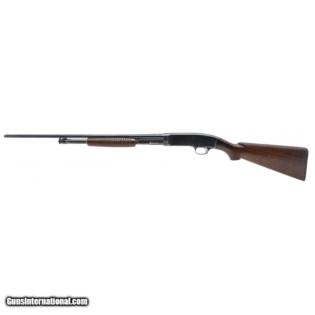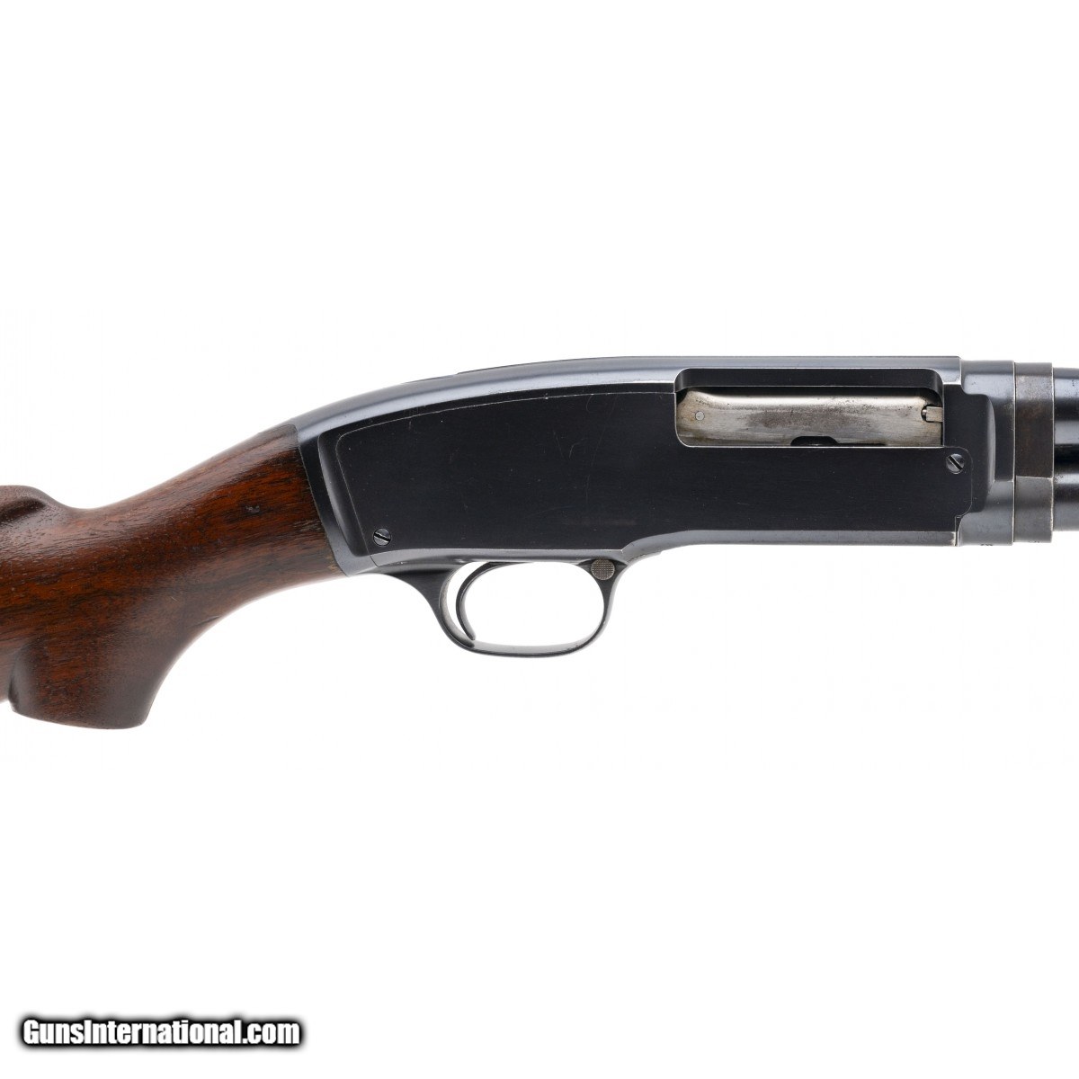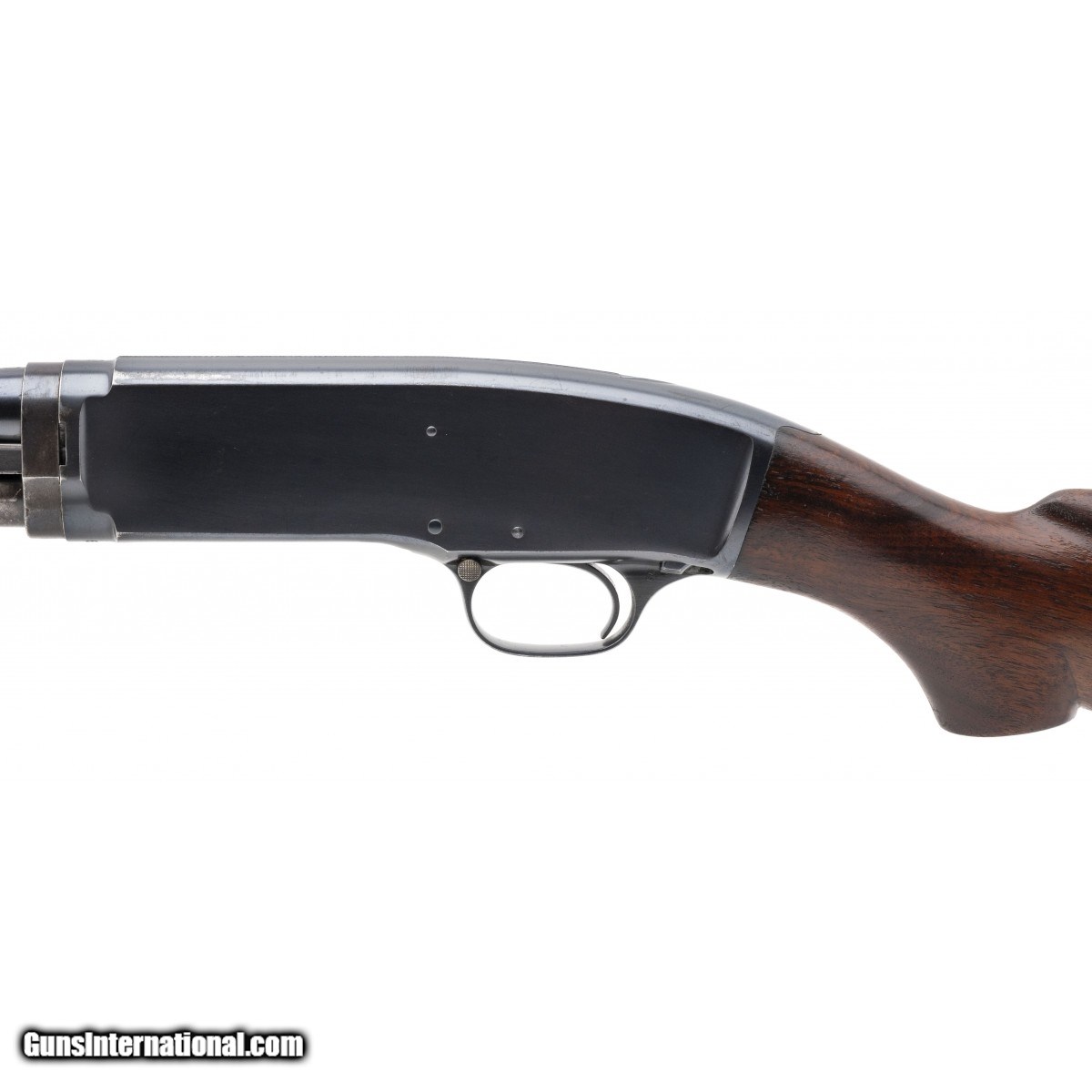 Description: " SN: 5199. Made in 1933, 410ga with a 26"" full choke barrel. Bore is excellent. Pump action field gun. Has about 90% original blue finish. The stock has some light marks. LOP is 14"". Overall very good condition. SOLD |
