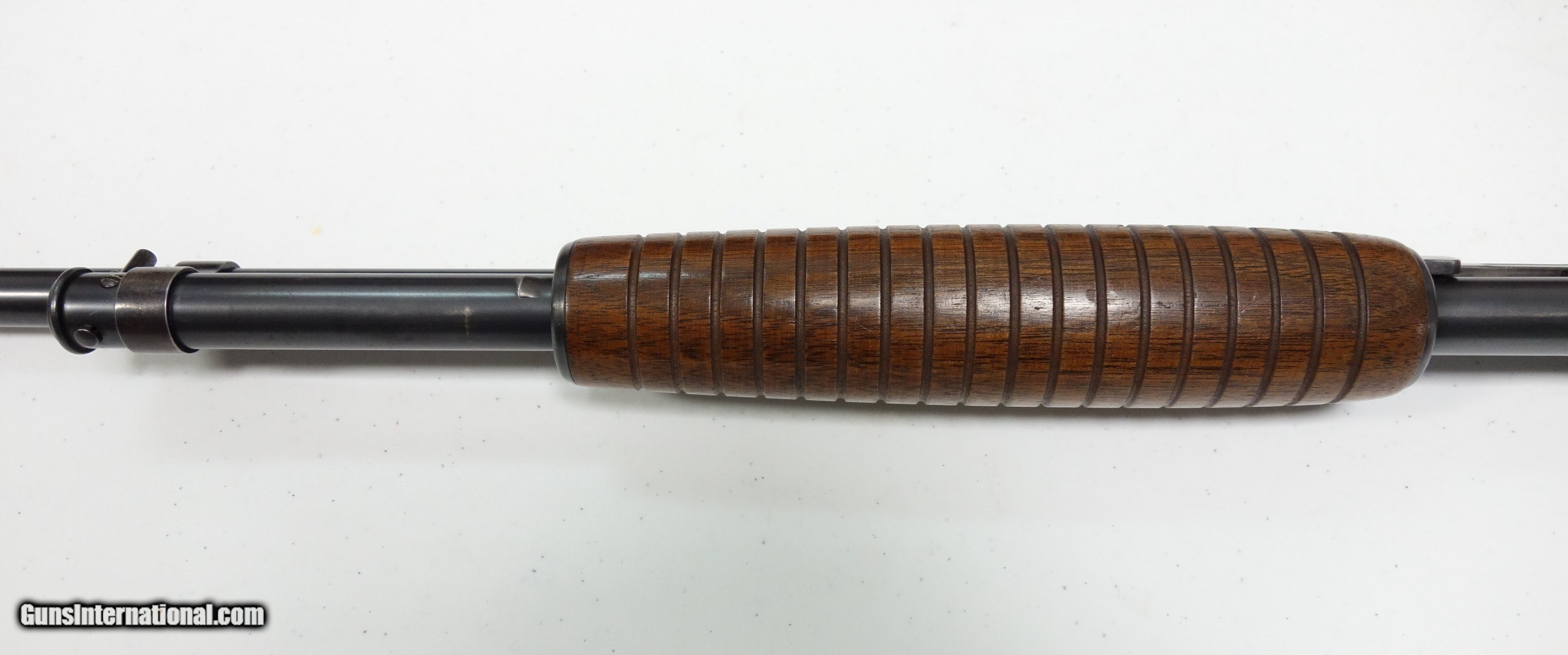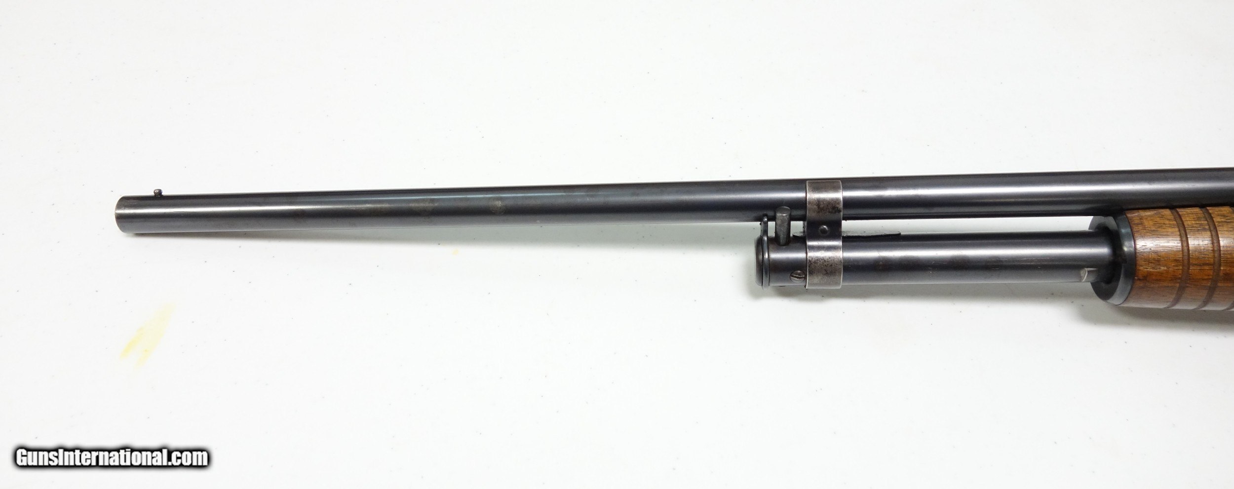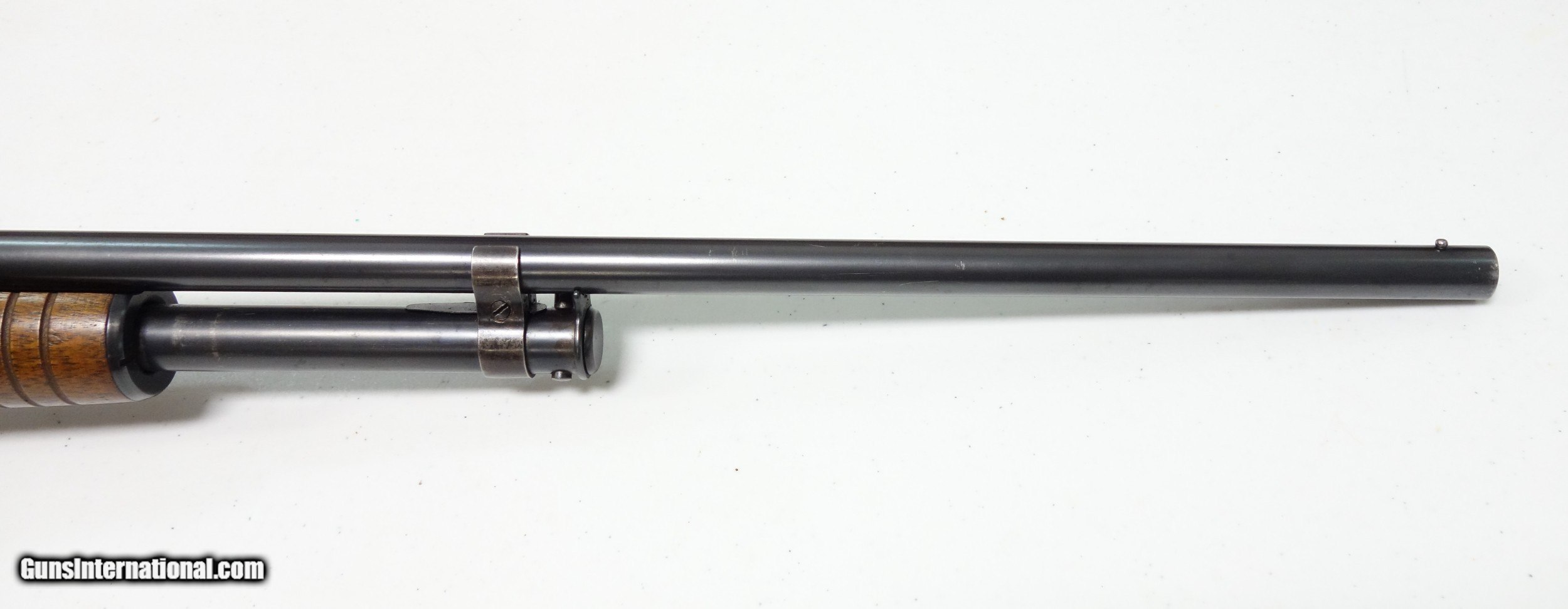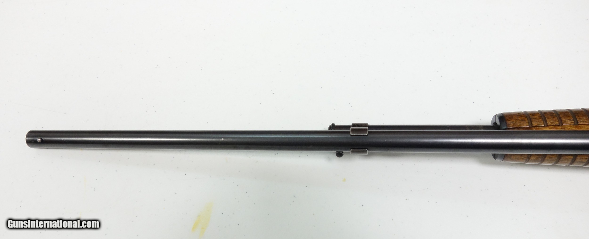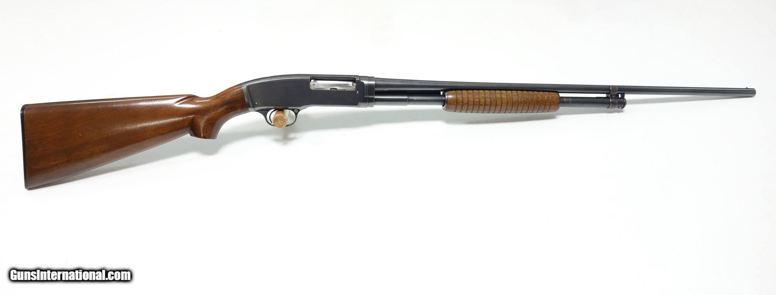 Description: Extra nice and untouched Pre War Model 42 pump-action shotgun. S/N 75** made during the very first year of production 1933! The barrel is 26" with bright shiny bore. Full choke, 3" chamber. Excellent condition overall, especially considering age. 95% Blue and Varnish other than the sides of the receiver which do show some light freckling. I have exaggerated this considerably by tipping into a most unfavorable light. (Is not as apparent in hand, under normal light). The mechanical functions appear to be working perfectly. A true survivor that is more than ready for another 87 years of stellar service to its next lucky owner! SOLD Curio/Relic: Yes |