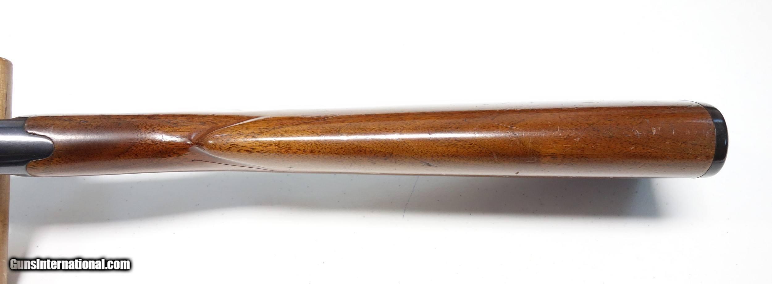 Description: Very nice Pre War 42 made in 1941. S/N 45***. 28" Plain Barrel, 3" chamber, Full Choke. Finishes are better than 90% overall. There is more blue wear showing at the carry point. The stock is uncut with full 14" LOP, showing some scattered impressions and a notable scratch on the left side of butt near the comb flute. Mechanics and bore are excellent and this should make a great collectible shooter. SOLD |