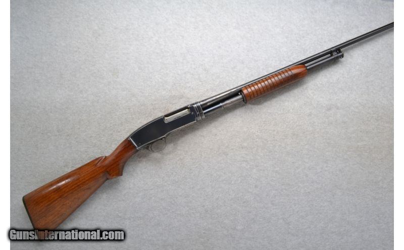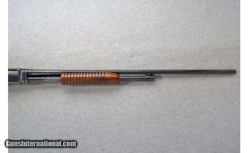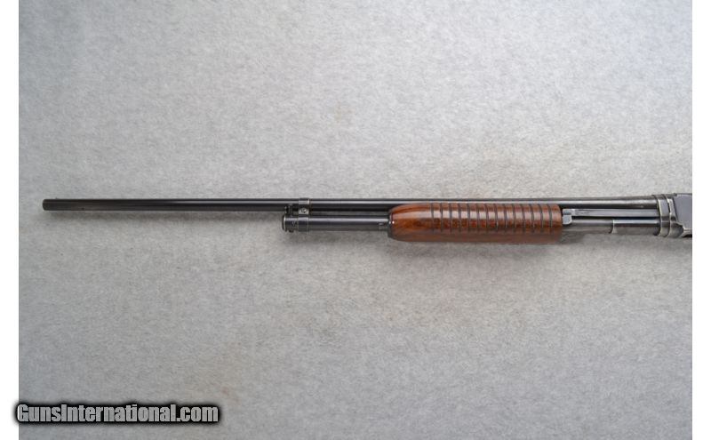 Description: This Winchester Model 42 is a right hand pump action shotgun in .410 Ga. It has a 28 inch barrel with a 3 inch chamber and fixed Modified choke. It has a smooth grip walnut pistol grip stock and a grooved grip walnut forearm. In overall fair condition it comes as is. It does show some age, use and wear. SOLD Curio/Relic: Yes Manufacturer: 1948 Caliber Info: .410 Bore Chambers: 3 inch. Metal Condition: Fair. Has blue wear and some minor surface stains. Wood Condition: Fair. Handling marks and minor wear. Bore Condition: Shiny. Barrels: 28 inches. Stock: Smooth grip walnut pistol grip. Stock Dimensions: LOP 13 7/8 inches. Fore End: Verticle grooved grip walnut. Butt Pad: Winchester checkered black plate. Weight: 6 lbs. 2 oz. Sights: Metal front bead. Chokes: Fixed Modified. Item Location: Richfield, WI |