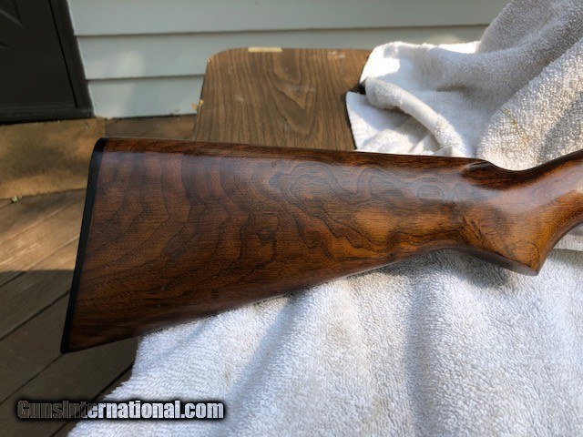 Description: Up for your consideration is a really very nice , all original ,mint , Winchester 42 , .410 ga., 3" chamber Serial # 140200 . 28" plain barrel , Full Choke .. The bluing is excellant , 99%+ . The bore is perfect 99%+. The wood is outstanding 99.+% , notice the character in the wood stock , no chips , cracks or splits. There is no rust , no pitts , really no handling marks .A tiny bit of wear on the slide . There is no muzzle wear . This Winchester was made in 1959 I believe . This winny has been in my collection for years . It will be vary hard to improve on this one .You will not be disappointed . Will ship from my FFL to your FFL only . No sales to Kalifornia . Shipping and ins.75.00. Will ship in a hard Plano rifle case . Will accept Bank Checks , Personal checks , Postal Money orders . As always a 3 day inspection . Satisfaction guaranteed . Thanks for looking , SemperFi , John SOLD |