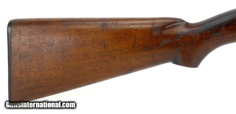Description: Winchester 42 410 Gauge shotgun. Manufactured approximately 1949. Excellent bore. Smooth perfect action. Gun has approximately 85-90% blue. Note: there is a small pit area on the left side of the barrel just forward of the end of the magazine tube. Stock has no chips or cracks and shows varnish wear from hunting. Very reasonably priced. SOLD Curio/Relic: Yes |