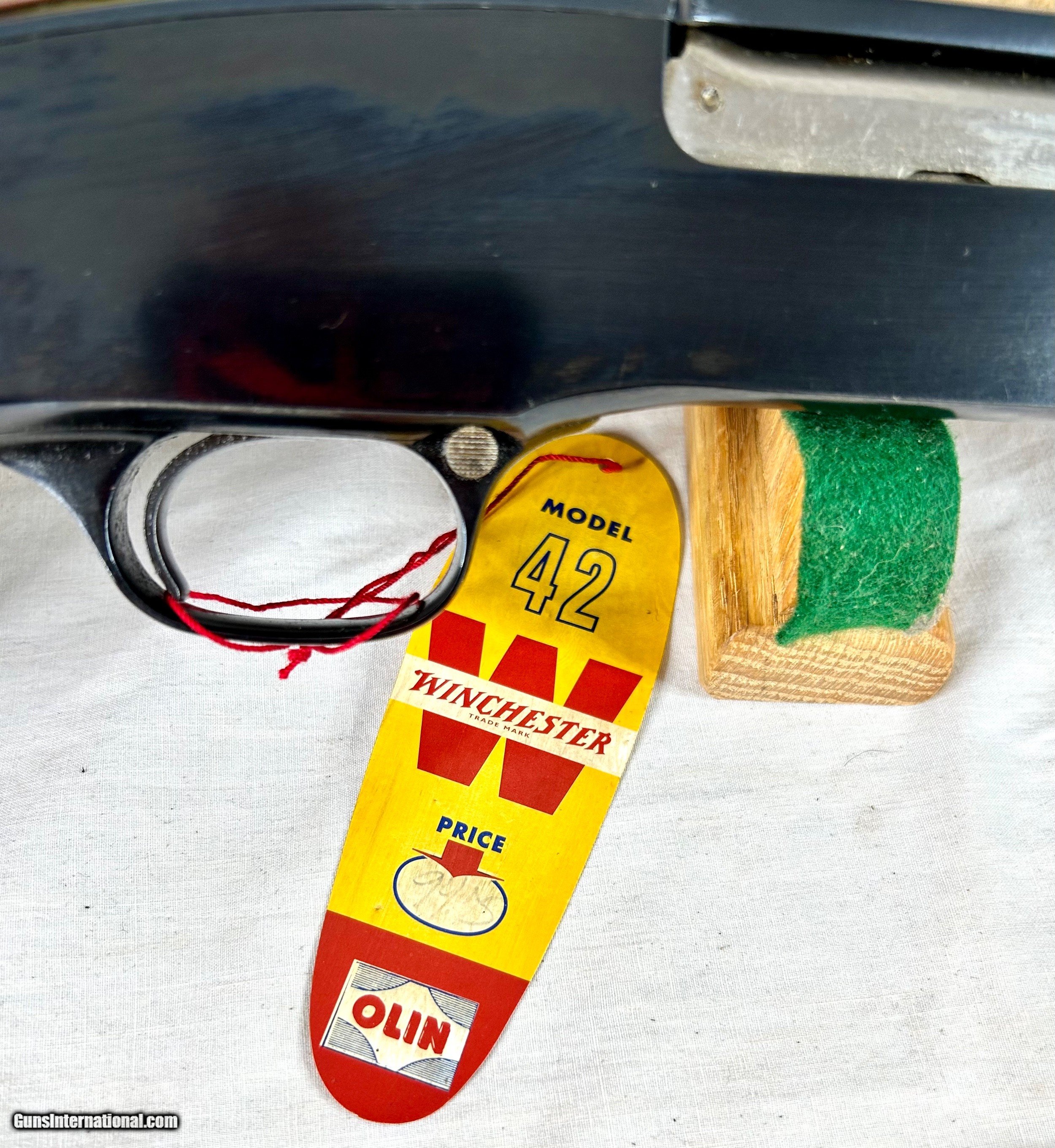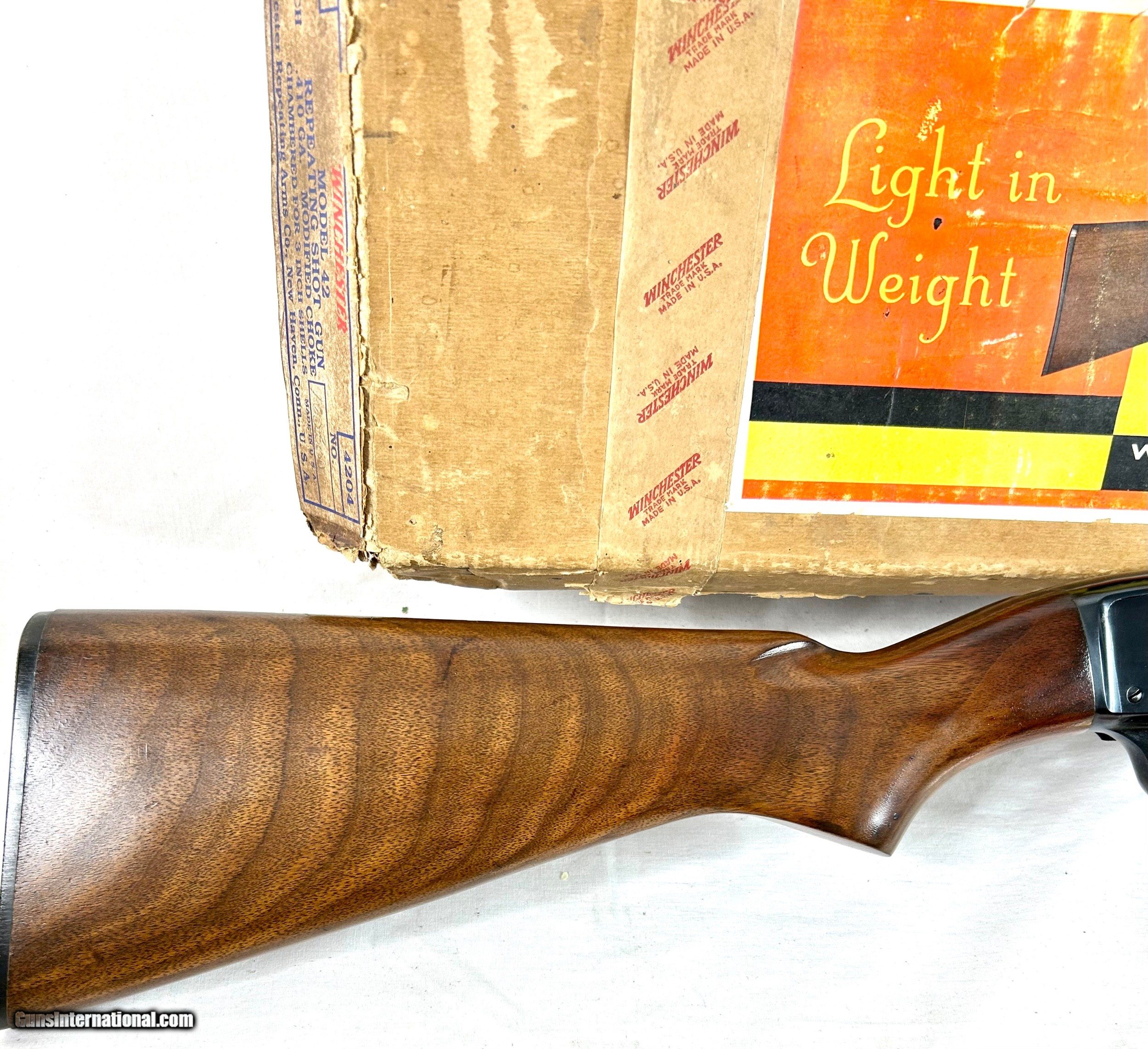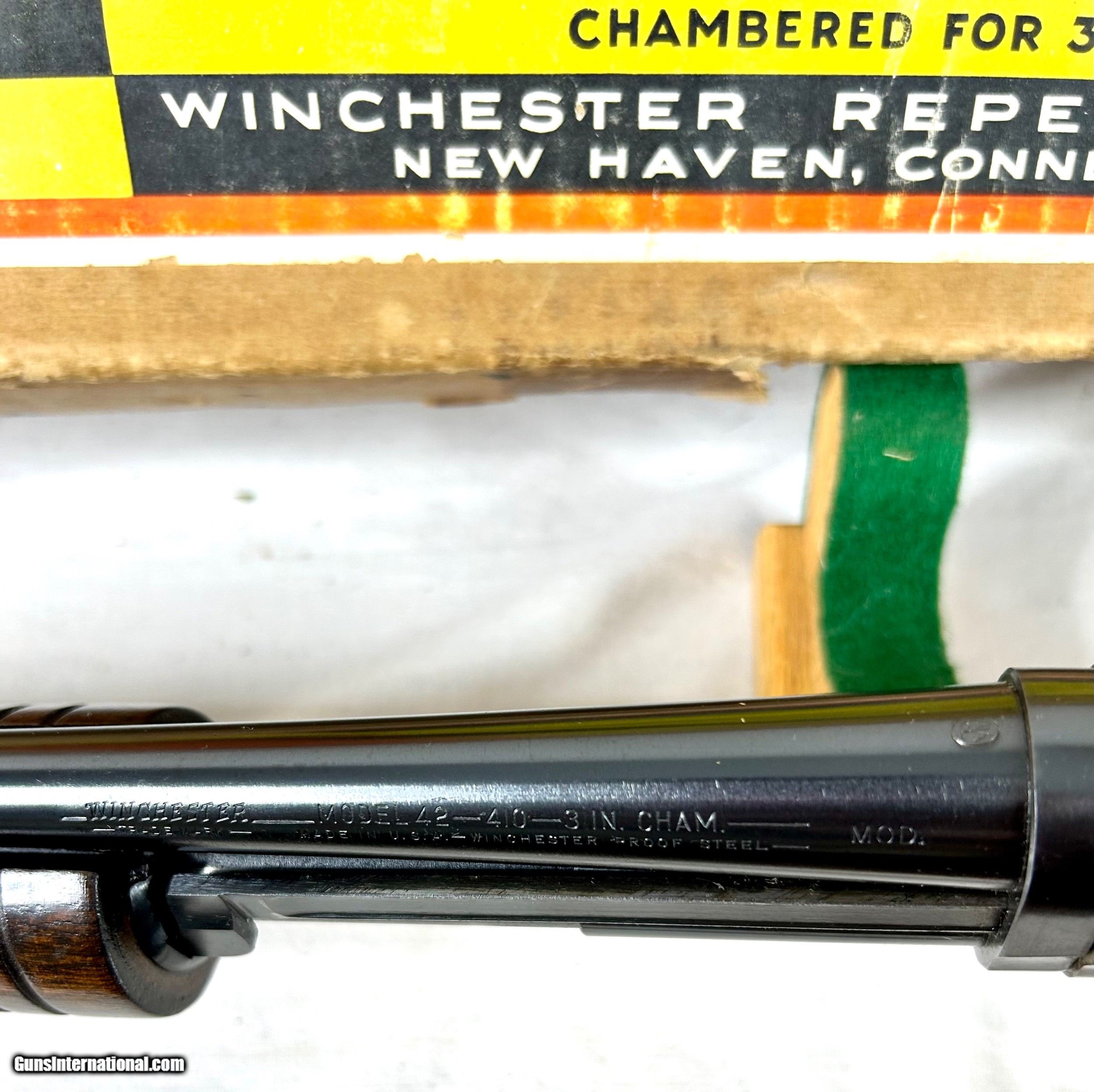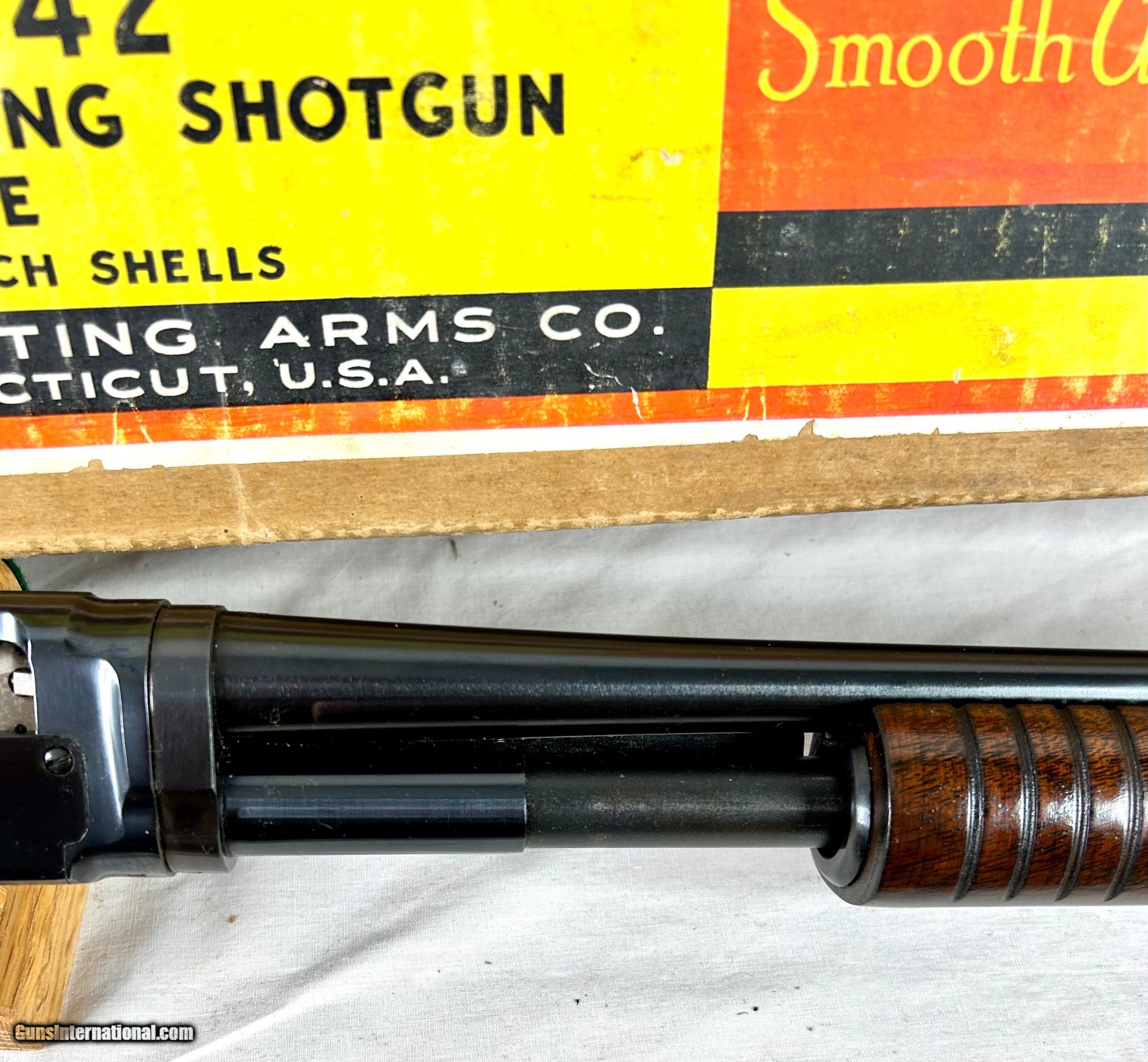 Description: *****ON HOLD****Up for sale I have a Winchester model 42 chambered in 410. This is a really rare little gun to find in its original box. This little gun has a 28" barrel with a modified choke. I would rate the condition of this little shotgun at 99.9% bc it has a couple tiny, tiny handling marks on the stock that I photographed. These Winchester boxes with the big pretty labels are very hard to find in this condition and are highly sought after. Shipping will be $75 and to FFL only. Please don't hesitate to ask any questions or request more photos. SOLD |