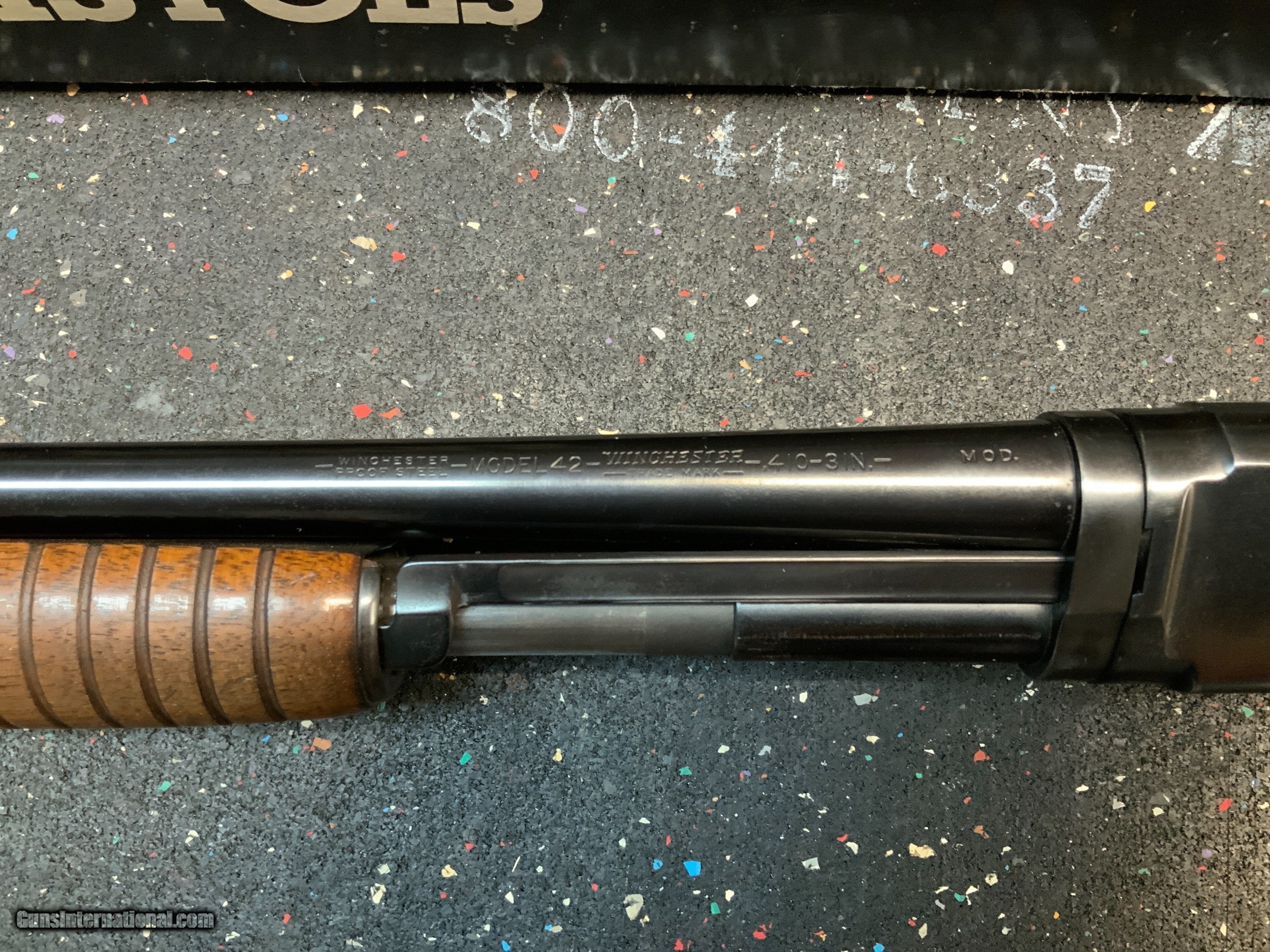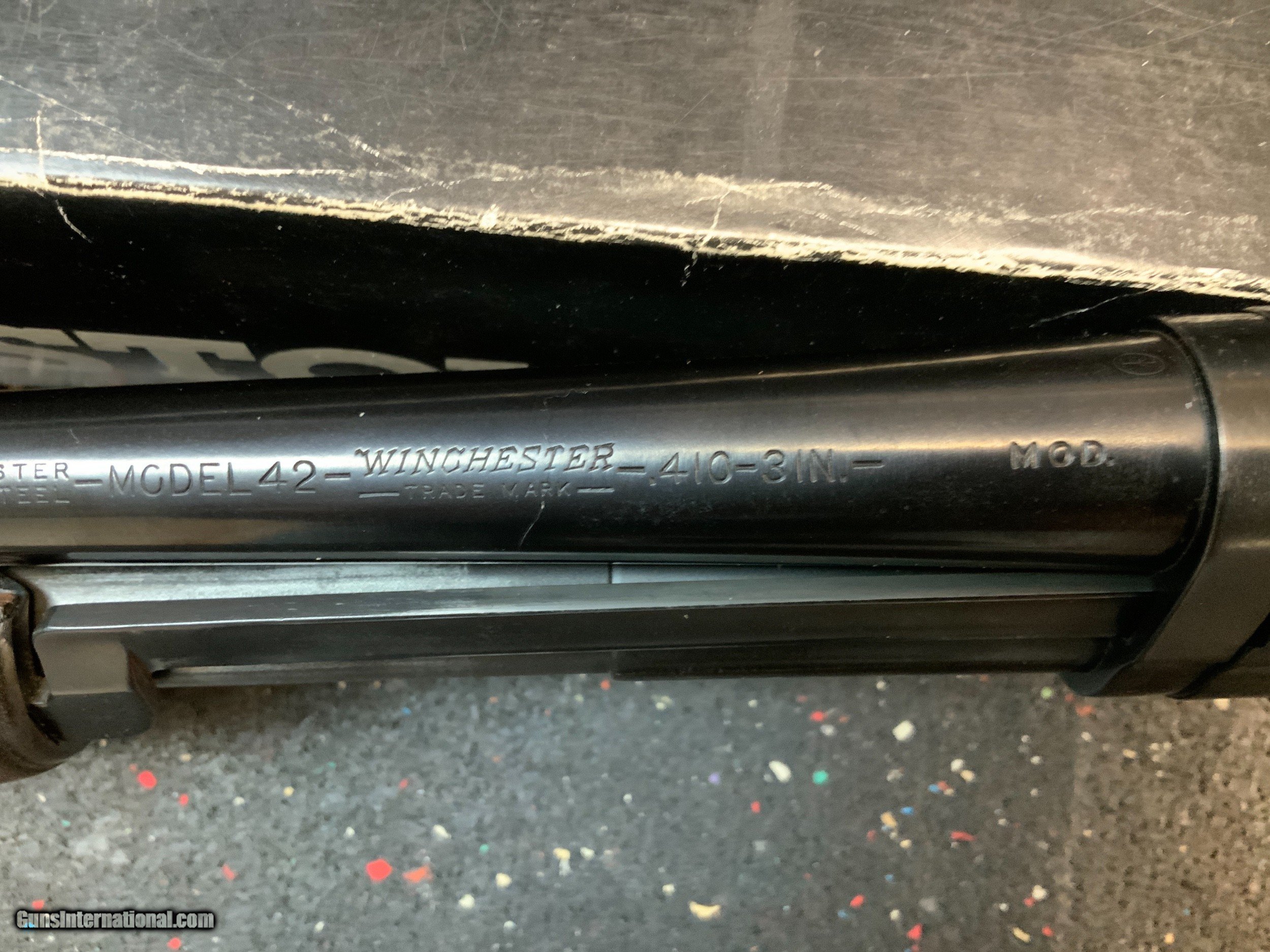 Description: (Sale Pending)Winchester model 42 pre-war first year production 410 pump shotgun in a very rare field grade with the English style straight stock configuration. Add to this the modified choke and you have a fantastic quail killer. Pictures show what you get. Please add $50 for shipping and insurance to your FFL or C&R. SOLD Curio/Relic: Yes Shotgun Gauge: .410 Gauge Manufacturer: Winchester Model: 42 Serial Number: 4183 Barrel Length: 26” Condition: Very Good Metal Condition: Very Good Wood Condition: Very Good Bore Condition: Excellent Action: Pump Manufacture Date: 1933 |