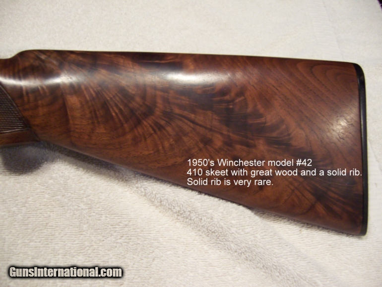 Description: Winchester Mode 42 .410 Skeet 26" Barrel Original Bluing Matte raised rib Date of Manufactur 1950 Ser# 87048 I am the second owner and has been shot very little. SOLD Curio/Relic: Yes |