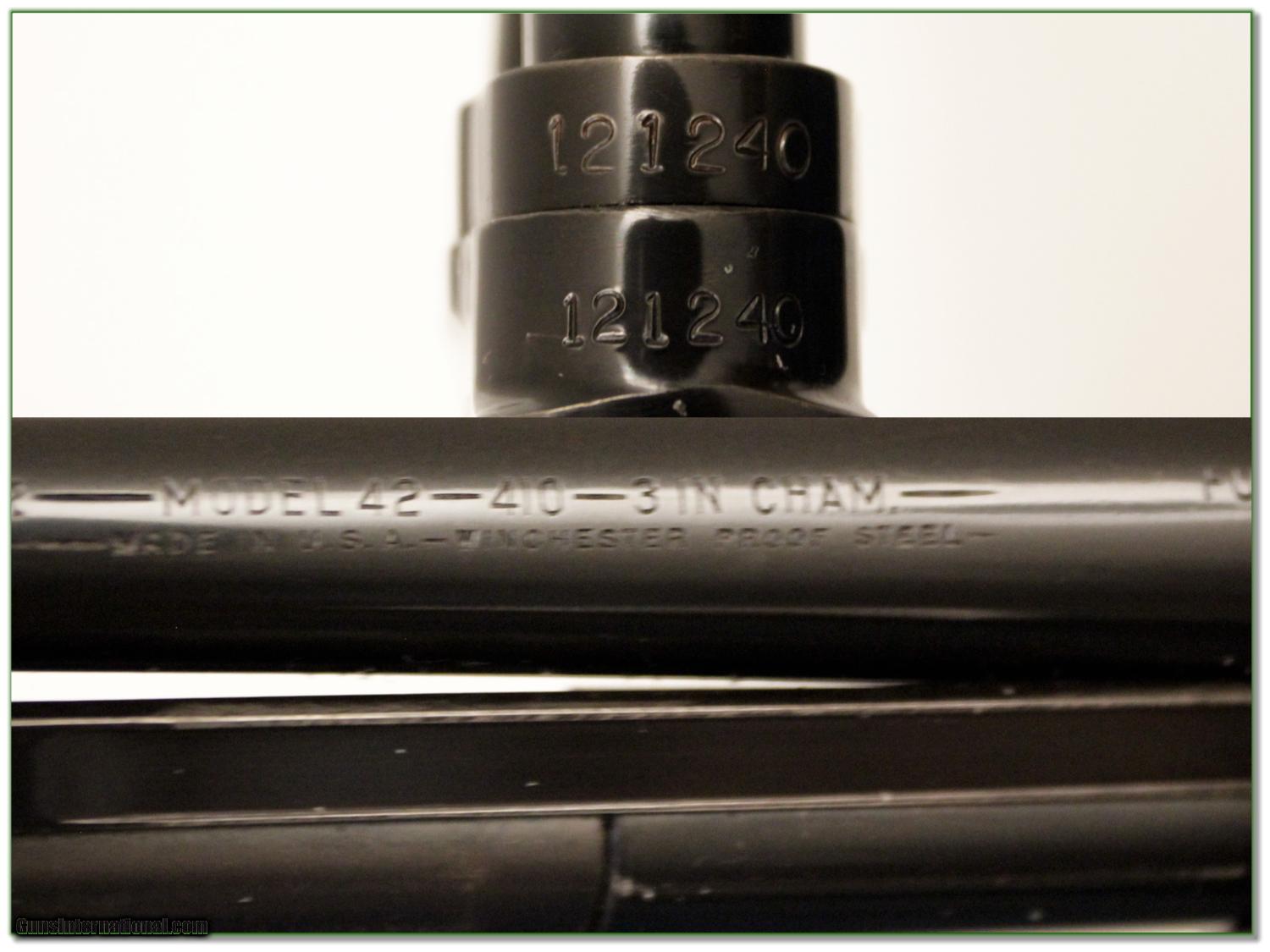 Description: Collectors, this is an excellent condition and all original Model 42 Winchester. It was made in 1955 and shoots 2 3/4in and 3in shells. The barrel is choked full. It will make a fine addition to your collection. I am selling this one on consignment and as such lay-a-way can’t be used. It does of course have the standard 3 day inspection. Shipping and insurance is $30 or $18 more if you want it shipped in a new Plano hard case. Please email me with any questions or larger pictures. (I now consign quality firearms only 10%! Let me know if you have any you would like to sell!) [15-1434] Payment: Payment is by Money Order, Cashiers Check or Personal Check. I can now also accept MasterCard and Visa with a 3% convenience fee. PayPal can be used for some items but never firearms. Please let us know if you would like to pay via PayPal. Shipping: The shipping charge will be listed in each description. It is $30 for most guns. Some heavy guns or those insured for over $2000 may be higher. Shipments to Alaska and Hawaii are higher because air shipment is required. Most firearms are shipped within 5 days of receipt of payment. We prefer shipping at the beginning of the week to avoid firearms in transit over weekends. We package all shipments carefully and insure them for the full purchase price, rounded up to the next $100. In the unlikely event that damage occurs, it is important that you save all packaging material for the claims process. Optics are shipped Priority Mail and most other non-firearm shipments are shipped First Class. Returns: Our return policy is simple. If for any reason you are not pleased with your purchase, you may return your item for a refund. The only exception is ammunition, it cannot be returned. It is important to us that you are happy. Guns cannot be fired or dissembled before returning them and must be returned in the same condition as received. Notification of a return must occur with-in 3 days of receipt at your dealer. Shipping, convenience and dealer fees are not refundable and are the responsibility of the buyer. Lay-a-way: If needed, we offer a 60 day lay-a-way option on most firearms. It is 1/3 now, 1/3 in 30 days and 1/3 in 60 days. Lay-a-way firearm sales are final. Consigning your firearms with Shooting Investments: We will help you get top dollar for your firearms. While most local guns shops charge 20% or more, our fee is only 10% with a minimum of $50. At your local gun shop it might take months to sell. Selling on-line provides instant access to thousands of interested buyers. You won’t find any other on-line dealer willing to sell your firearms for only 10% or listing every gun on 4 separate s. Selling through an House typically costs the seller 15% and the buyer an addition 15% (so 30%) and you have to wait several months to sell and longer to receive funds. If properly priced, we will sell your firearms in a week or two. Send us an email or give us a call and we’ll explain how easy it is for you to get top dollar. Trading: We collect guns and usually just trade for guns we want to add to our collections. We often sell guns for others wanting to purchase one of ours. We find this the most fair to both of us. Our Commission is only 10% and we hold the gun you want until yours sells. Please contact us if you want to sell one of yours to buy one of ours. Help for California Buyers: We are happy to ship to California. It is the buyer’s responsibility to make sure any item you buy is legal in your state. We are also happy to help with your purchase of a firearm from someone other than us. If you see a gun you would like to buy but the seller can’t or won’t ship to California we can help. You buy the gun and have it shipped to us. We’ll then ship it to your California dealer. The cost for this service is only $30 + shipping. Let me know if we can help! SOLD |