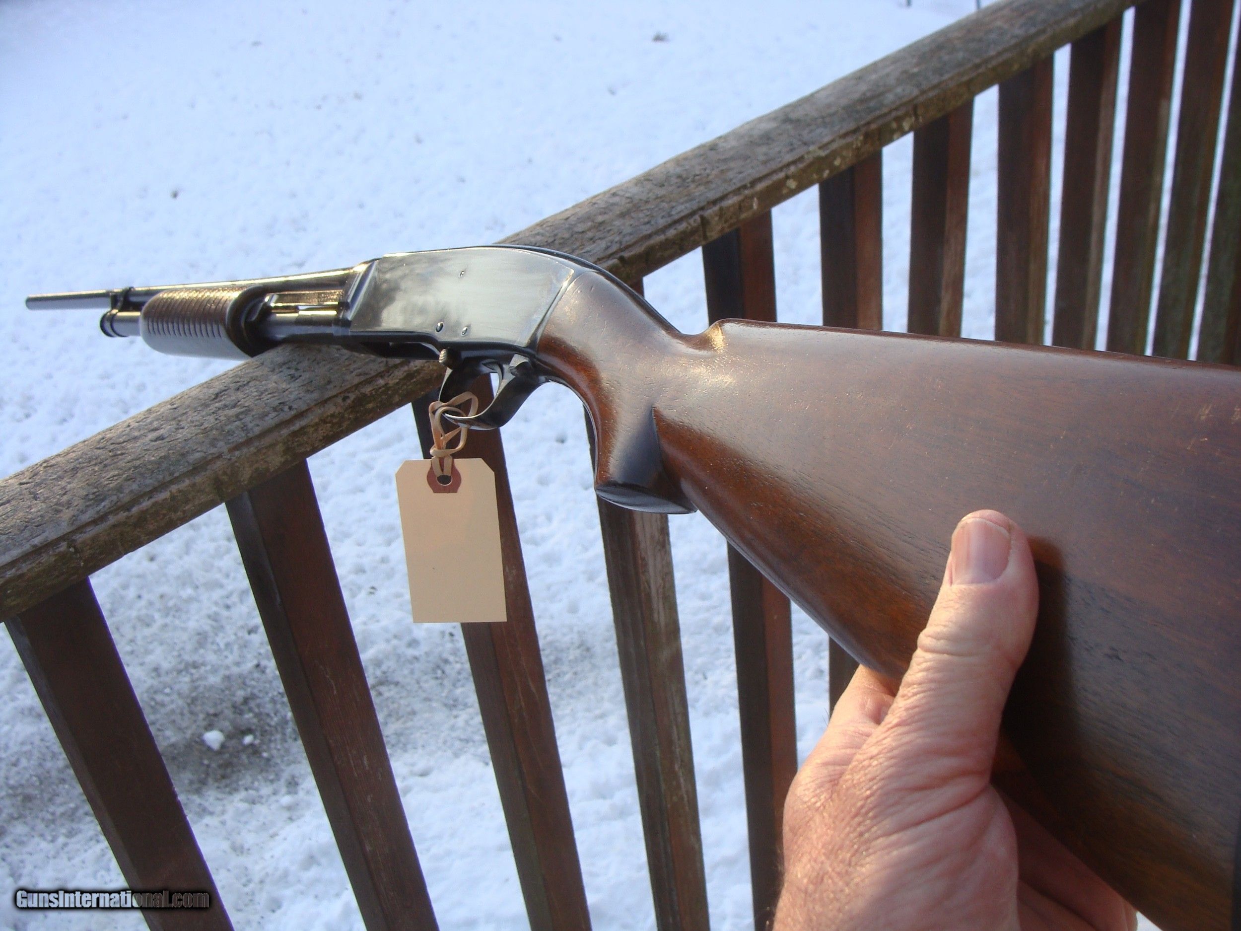 Description: We have never seen an original mode 42 in better condition; this is litterally the best example we have ever seen or had. More so as it is a 1947 gun that has survived 73 years almost without much evidence of handling or even meaningful scratches or safe marks, NOT REDONE NOT REBLUED OR TOUCHED UP. COLLECTORS if you have been looking for a field grade 42 to add to your collection this is probably your gun, even the slide bar retains almost full blue. 28" full choke brl chambered for 3" shells. Pls look at pics carefull for the few minor imperfections and request addit pics if you are serious about buying but require more to decide or phone us. NOTE WHAT LOOKS LIKE SMUDGES ON RECEIVER ARE NOT..IT IS OIL OR LIGHT REFLECTION..THE CONDITION OF THE BLUE ON RECEIVER AND BARREL IS TRUELY NEAR NEW At a time when good 870's chambered in 410 or 28 can bring amounts up to and greater than 1200.00 this gun is a bargain at our price. Shipping is $ 65.00 with insurance IF IT DOES NOT SAY NEXT TO THE PRICE..."SALE PENDING OR UNDER DEPOSIT"...IT IS AVAILABLE. WE DO NOT REPLY TO INQUIRIES THAT SAY "INTERESTED IN THIS GUN" OR "IS IT AVAILABLE" IF YOU WOULD LIKE TO BUY THIS OR ANY OF OUR GUNS WE SUGGEST YOU PHONE US; WE ARE OFTEN AVAIALABLE LONG HOURS. IF YOU ARE INTERSTED IN A GUN THAT IS UNDER DEPOSIT AND WOULD LIKE TO BE NOTIFIED IF A SIMILAR GUN COMES IN DROP US A LINE AND WE WILL MAKE EFFORTS TO CONTACT YOU WHEN ONE DOES COME IN. WE HAVE OVER 2000 SALES ON ALL SITES WITH AN A+ RATING ON ALL WE ALSO KEEP AN INVENTORY OF OLDER PERIOD CORRECT SCOPES; CALL WITH NEEDS WE MOSTLY PICK VERY CLEAN AND LIGHLTY USED GUNS. WE ARE HAPPY TO TAKE CONSIGNMENT GUNS AND COLLECTIONS OR WILL BUY YOURS OUTRIGHT. WE SOMETIMES ARE EMPLOYED FOR ESTATE PURPOSES AND VALUATIONS. CT RESIDENTS MUST CONTACT US TO UNDERSTAND OUR IN STATE TRANSFER POLICIES. WE CAN TAKE A CREDIT CARD HOWEVER THERE IS A 3% ADD ON BASED ON THE TOTAL FOR USE OF A CARD. IT IS ALWAYS THE BUYERS RESPONSIBILITY TO GET US A COPY OF YOUR RECEIVING FFL'S LIC AND WE REQUIRE A COPY OF YOUR PHOTO ID BEFORE THE GUN SHIPS YOU MUST CALL YOUR FFL.WE DO NOT CALL FOR YOU. LAYAWAY PURCHASES NOT COMPLETED OR ANY RETURNED ITEM UNLESS NOT AS DESCRIBED OR DAMAGED ARE SUBJECT TO A 10% RELISTING/RESTOCKING FEE AND MUST BE RETURNED WITH NO NEW MARKS OR SCRATCHES, SENT BACK INSURED, PRIORITY SIGNATURE REQUIRED SOLD Curio/Relic: Yes |