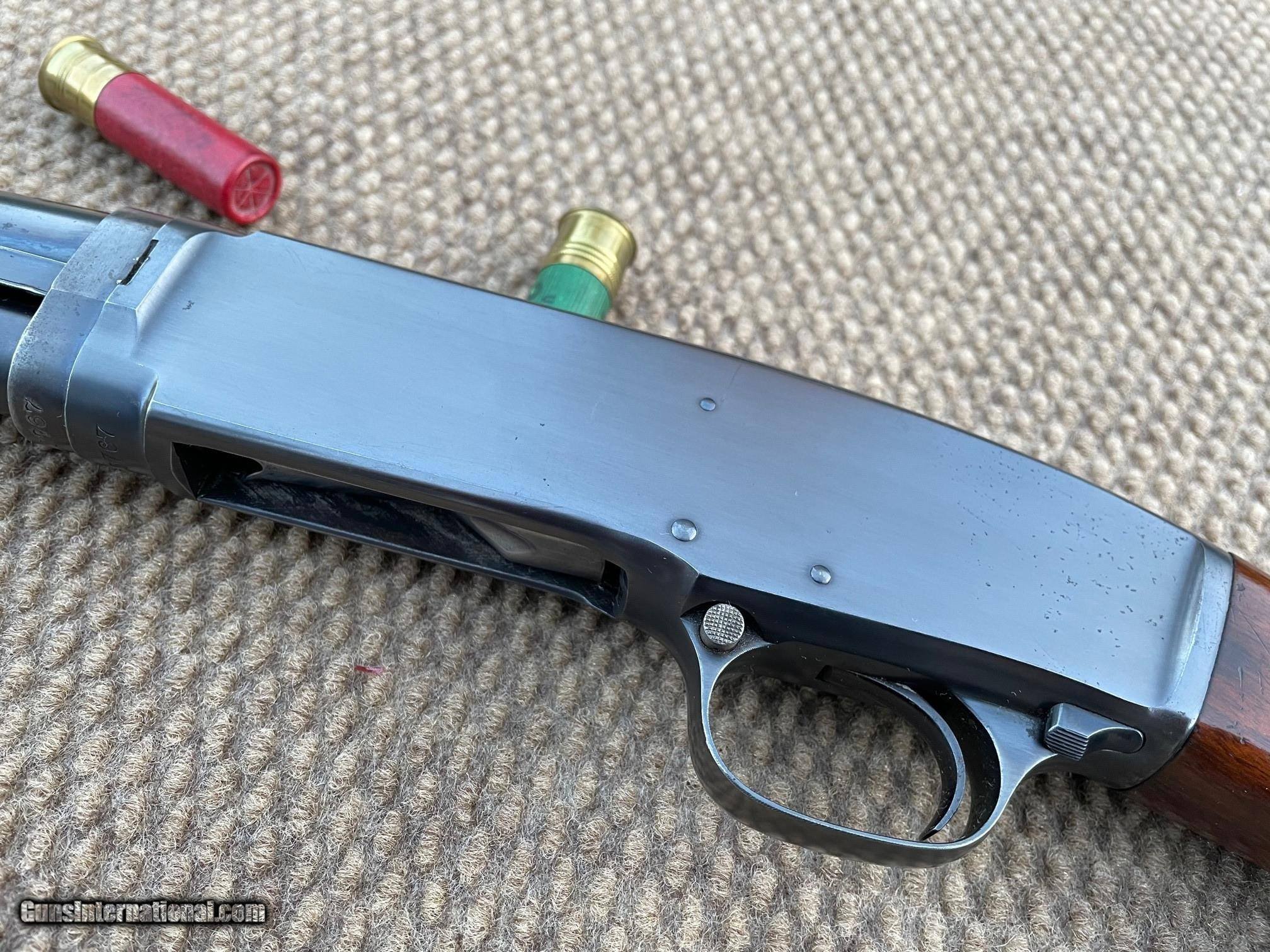 Description: SALE PENDING. Winchester Model 42 .410 Pump with 26" full choke barrel and 13 3/4" LOP. Serial number 12767 makes this 1934 manufacture. Gun has shiny bore and bluing remains very good however there is some freckling on receiver (see photos). Barrel has no blemishes. All in all the gun looks really nice. Additional photos available upon request. $35 ground shipping plus insurance to your FFL in lower 48 only and three day inspection period provided to Buyer. SOLD Shotgun Gauge: .410 Gauge Manufacturer: Winchester Model: 42 Serial Number: 12767 Barrel Length: 26 LOP: 13 3/4 Manufacture Date: 1934 Chokes: Full |