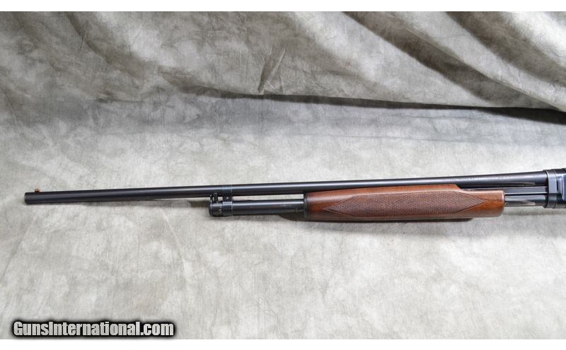 Description: This pre-WW II Model 42 features solid wood, good bore, and uncommon modified choke. It does have a couple scratches on the stock and a white line butt plate. .410 Gauge SOLD Curio/Relic: Yes Chambers: 3 inch chamber. Metal Condition: Very good. Some light handling marks and bluing wear. Wood Condition: Good. Overall the wood is nice but there are two long scratches on the stock. One (pictured) is a bit deep. Barrels: 26 Inch - blue. Triggers: Factory trigger. Stock Dimensions: 14 inch LOP. Fore End: Checkered walnut. Butt Pad: Black White Line plate. Sights: Orange bead. Chokes: Fixed Modified choke. Item Location: Rogers |
