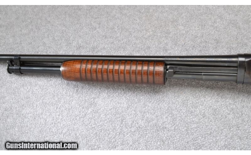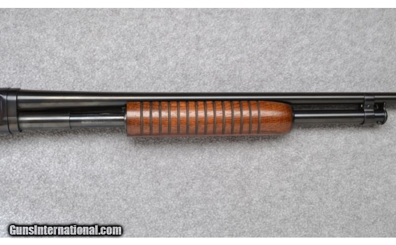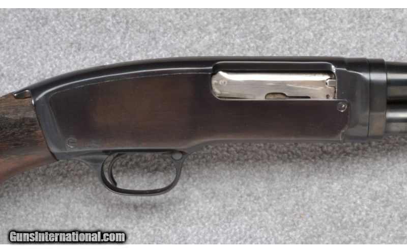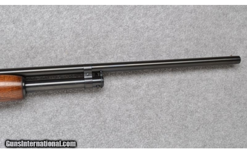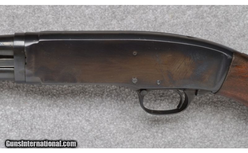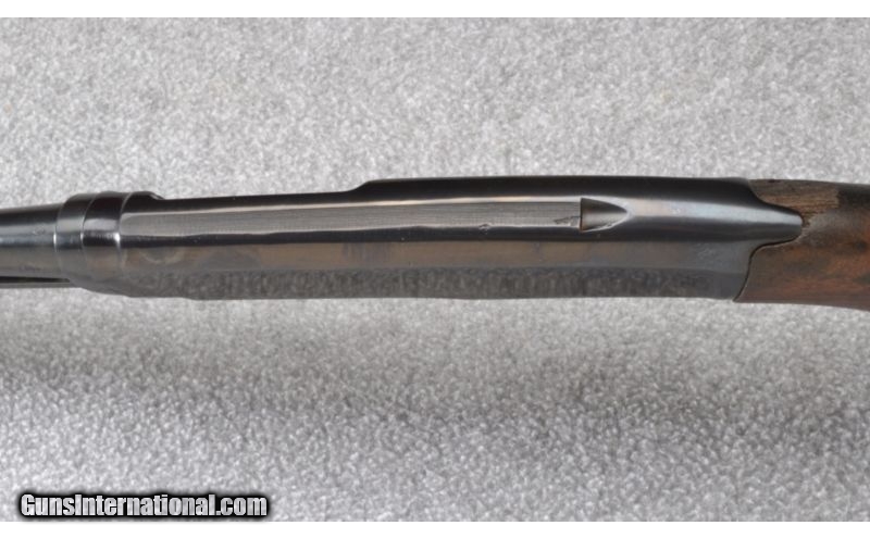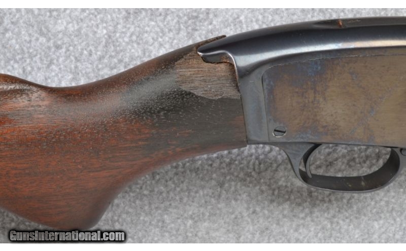 Description: Receiver has been reblued at some point. Barrel and magazine tube remain original. Bore is excellent. Buttstock has a piece missing at the rear of the receiver on the right side. SOLD Manufacturer: S/N 164XXX Caliber Info: .410 Bore Chambers: 3 Metal Condition: Very Good Wood Condition: Good Bore Condition: Excellent Barrels: 26" Plain Triggers: Factory Stock: Uncheckered Walnut Pistol Grip Stock Dimensions: 12 5/8" LOP Fore End: Grooved - Flat Bottom Butt Pad: Black Hard Rubber Weight: 5 3/4 LB Sights: Single Front Bead Chokes: Full Item Location: Wheeling, WV |