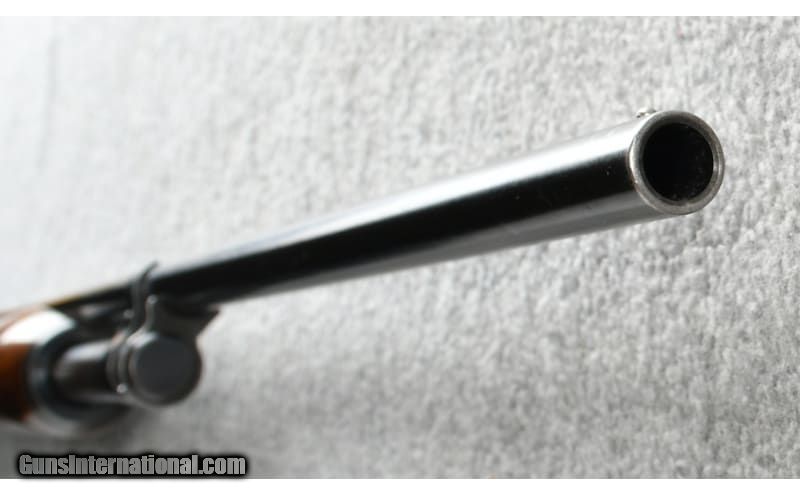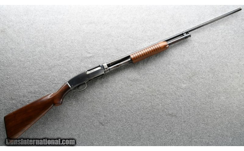 Description: This Model 42 was made in 1948. The action is smooth and functions well. .410 Bore SOLD Chambers: .410 3" chamber tubular magazine pump action shotgun Metal Condition: "Good, shows some wear at the carry points and mag tube from the slider Wood Condition: "Very good, shows a light scratch on the left side of the buttstock and a couple of small ding on the slider Bore Condition: Mirror bright Barrels: 28" Plain Triggers: Factory Stock Dimensions: 13 7/8" LOP Fore End: Grooved walnut slider Butt Pad: Winchester composite with logo Weight: 6 Lbs. 2 Oz. Sights: Metallic bead front Chokes: Fixed Full Item Location: Grand Junction, CO |
