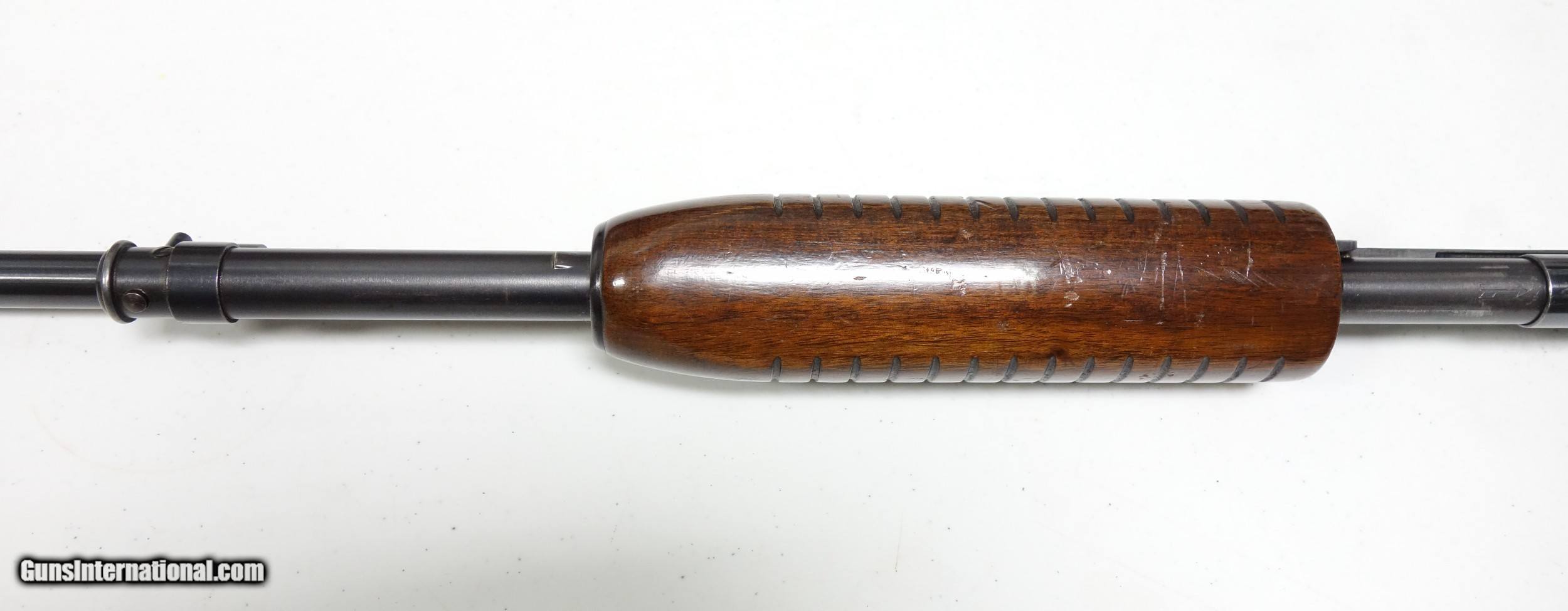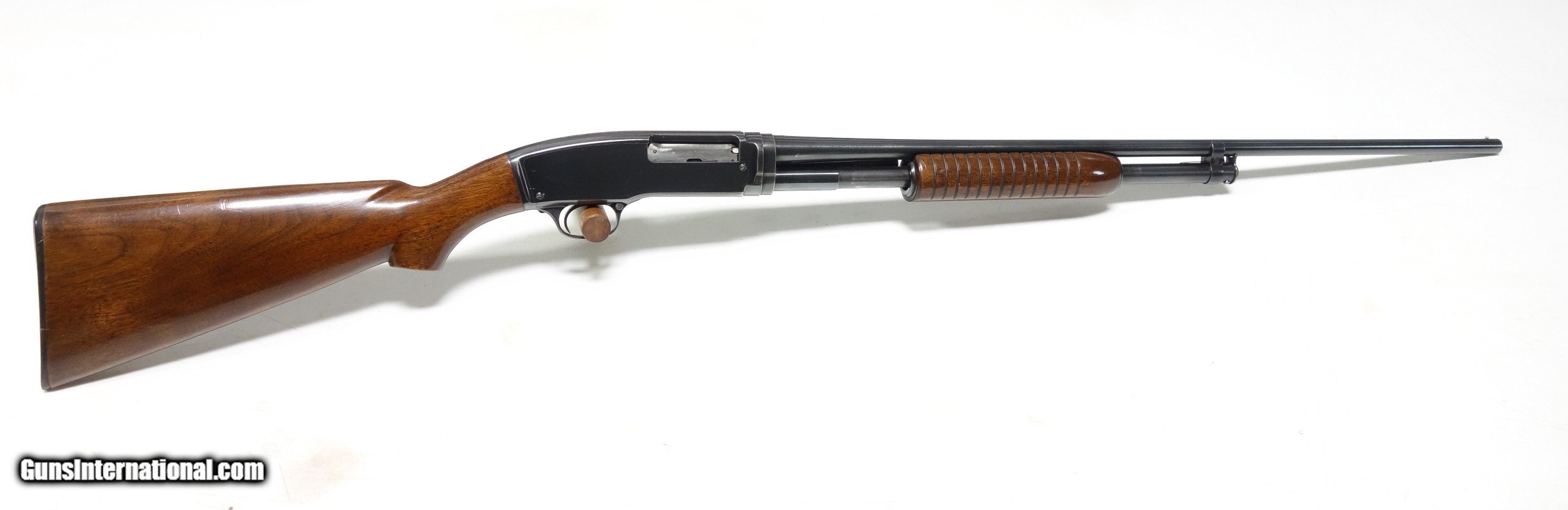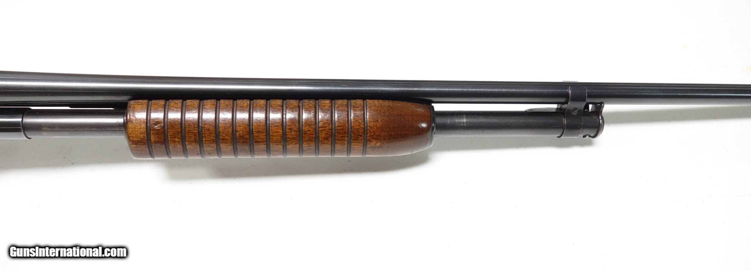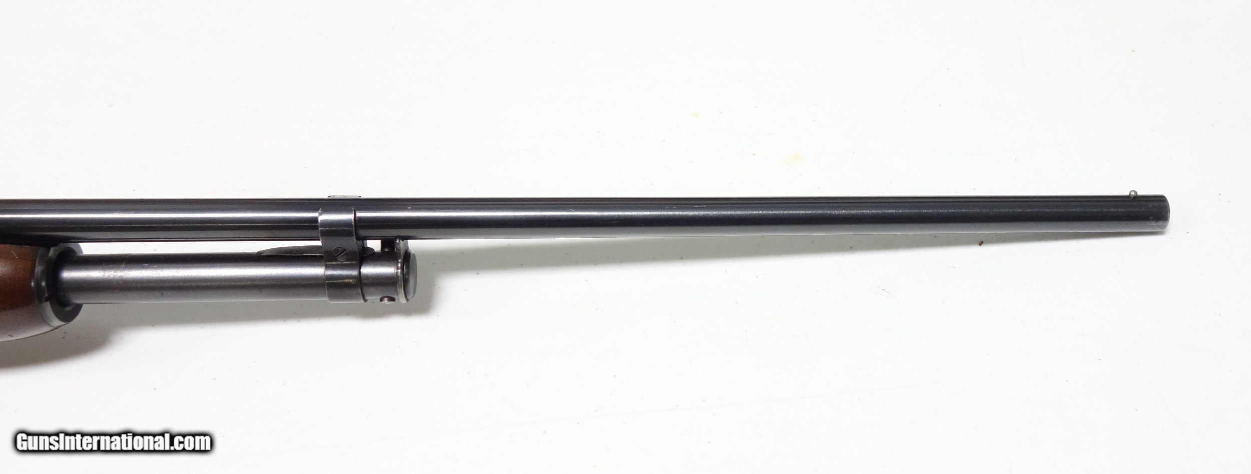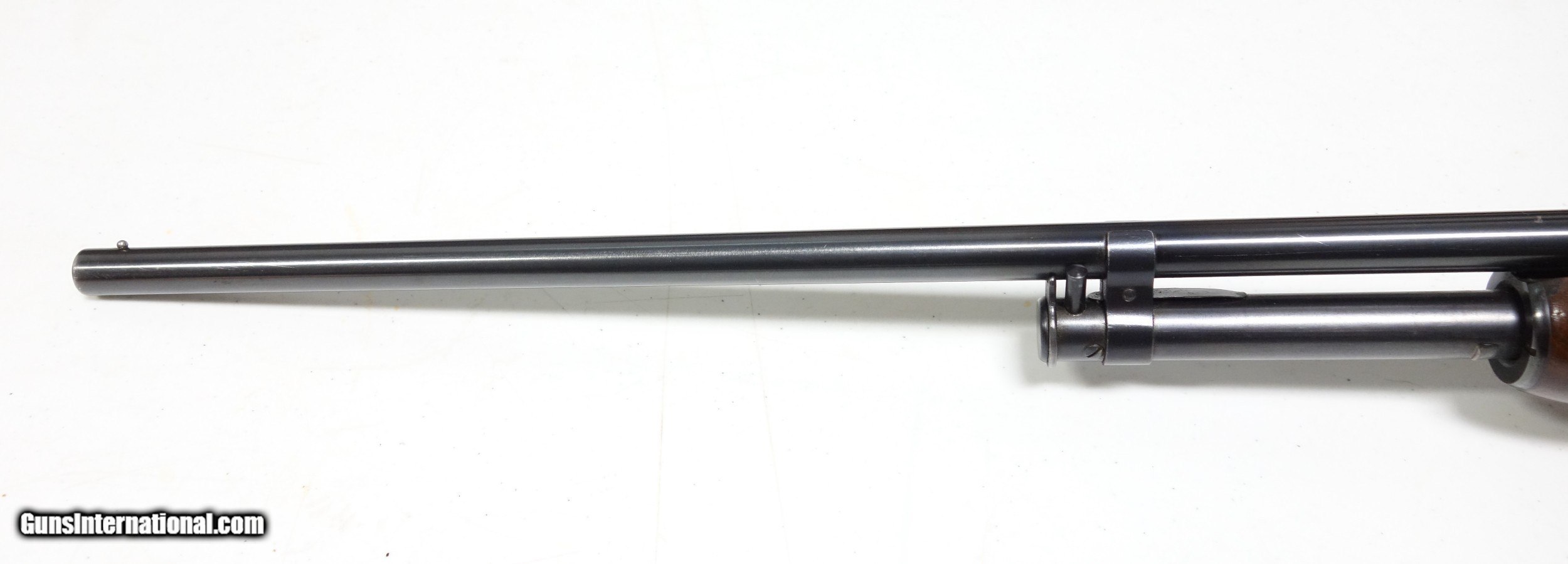 Description: Very nice Winchester Model 42 .410 gauge pump action shotgun. S/N 63*** made in 1947. 28" full choke barrel with 3" chamber. About 96% with light handling marks, most notably on underside. A bit of nice grain showing in stock. Bore is great and mechanical function is flawless. A really nice, unaltered small bore shotgun that you can still take out and enjoy as intended. SOLD Curio/Relic: Yes |