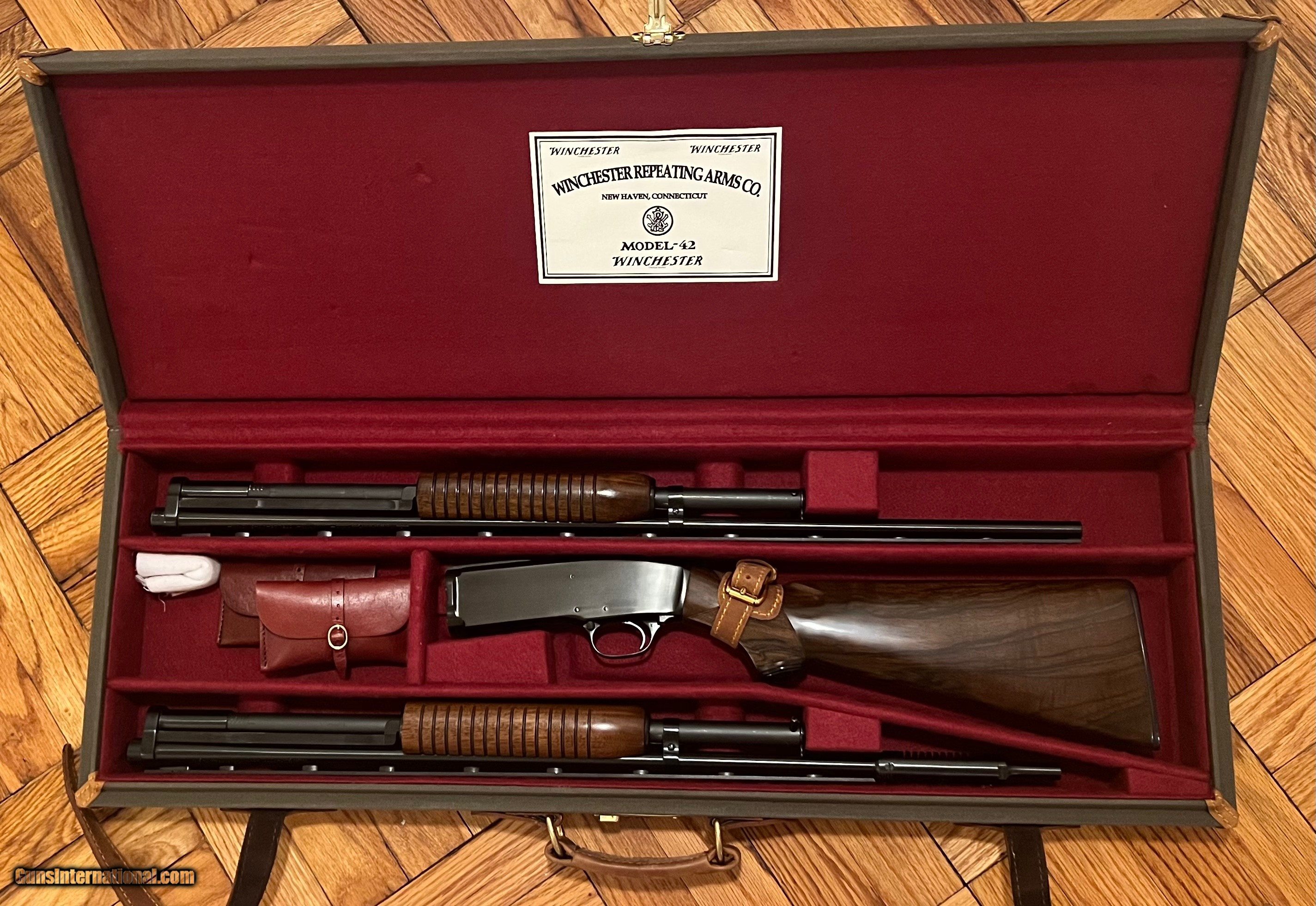 WINCHESTER MODEL 42 .410 TWO BARREL SET 28” FULL 27” CUTTS TAKEDOWN CASE ALL SN’S MATCH CLAYS/GAME PUMP