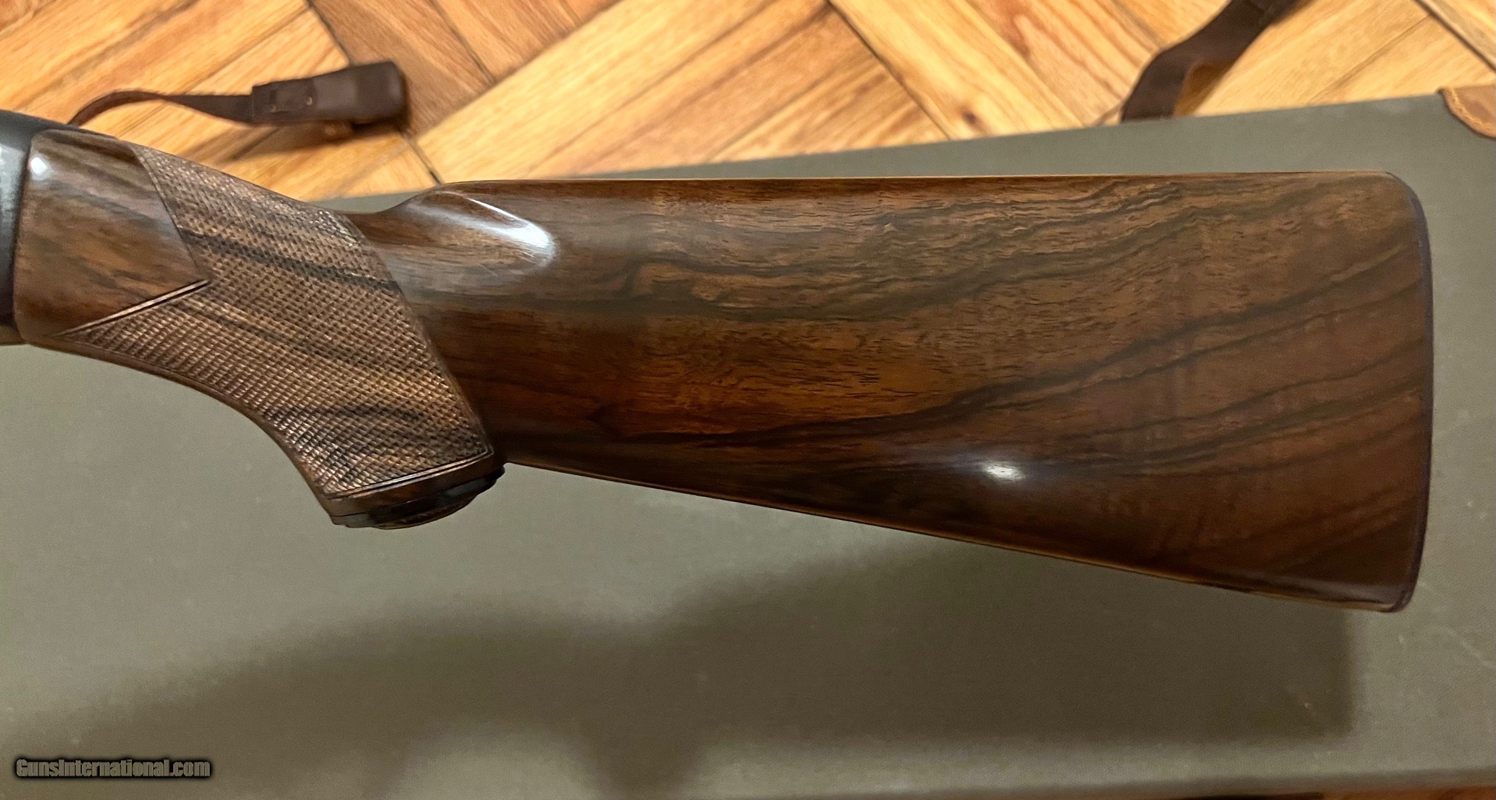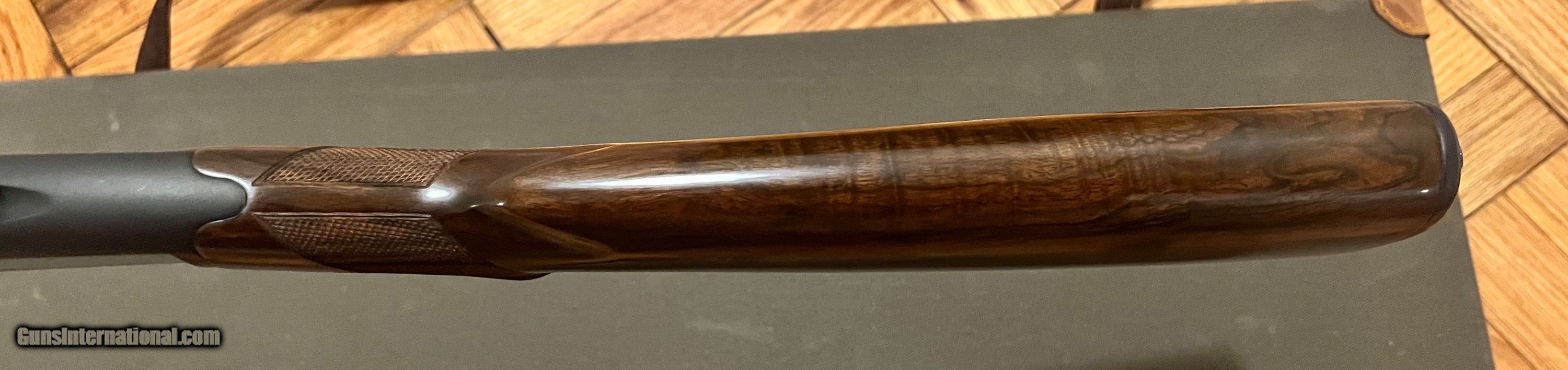 Description: WInchester model 42 .410 two barrel set 28" Simmons vent rib with white front bead Full choke 3" chamber Excellent bore 27" Simmons vent rib cutts compensator with silver front bead Two chokes (spreader 10 and mod) 3" chamber Excellent bore LOP 14 1/4 DAC 1 1/2 DAH 2 1/2 Neutral cast 6lbs 8oz with 28" barrel 6lbs 10oz with 27" barrel All serial numbers match SN: 97749 Gun was completely reblued by Simmons when vent ribs were added, deluxe figured stock, corn cob forend on both barrels. Nicley setup model 42 .410 for game & clays Open to reasonable offers. SOLD Curio/Relic: Yes Shotgun Gauge: .410 Gauge |