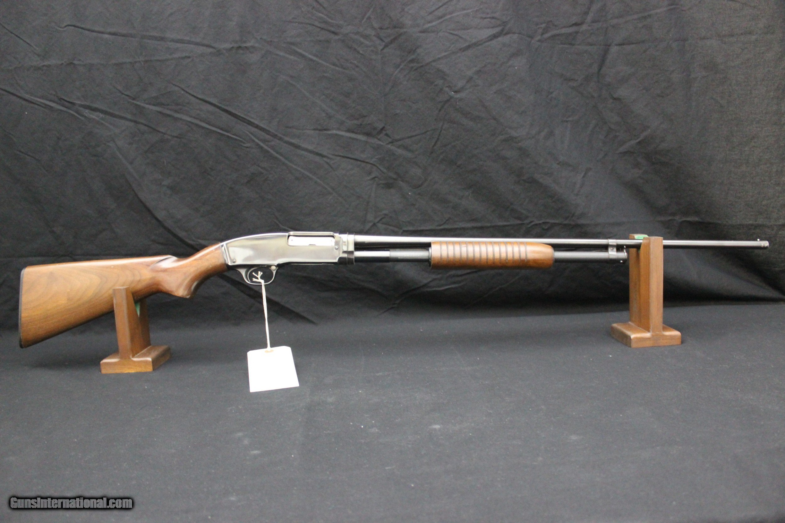 Description: Beautiful little Winchester Model 42 .410 pump action shotgun manufactured in 1961. Shotgun/stock shows wear from normal field use with some wear to the finish as well. Action is still nice and smooth. Bore is bright and clear. Dimensions are as follows. BBL. 26" Plain Full choke 3" chamber WT. 6lbs DIM. 13 3/4"x 1 1/2"x 2 1/2" SOLD |