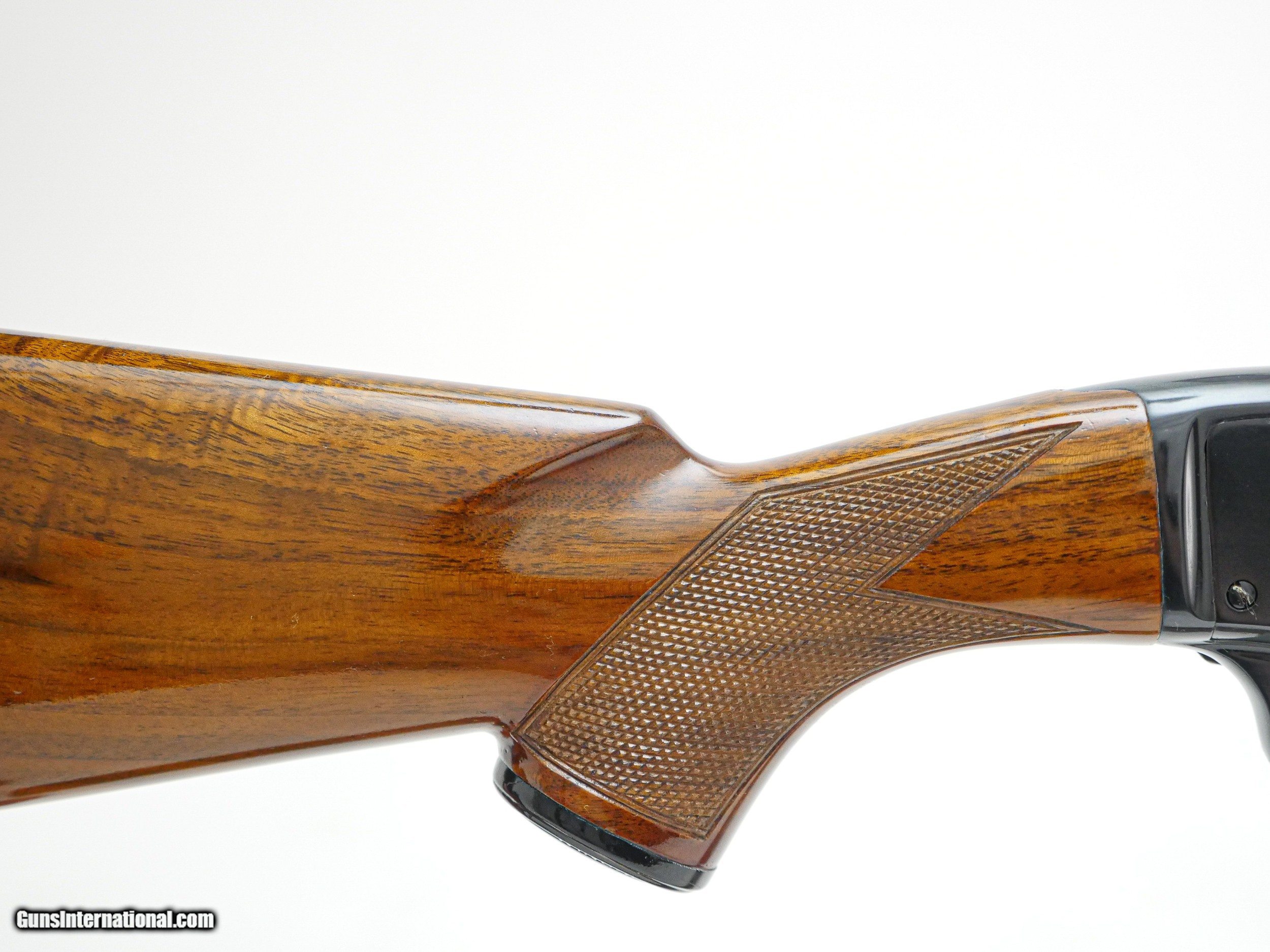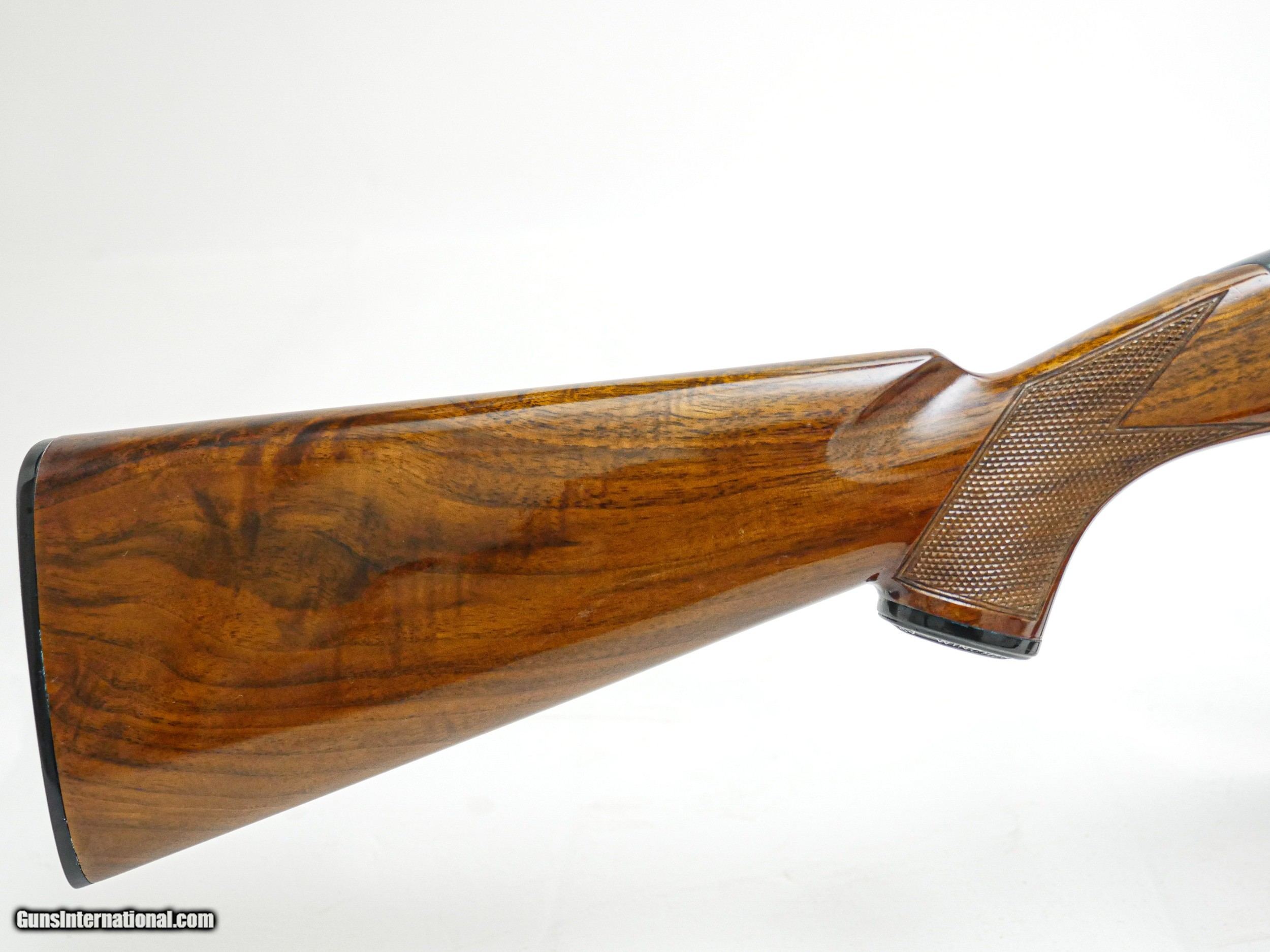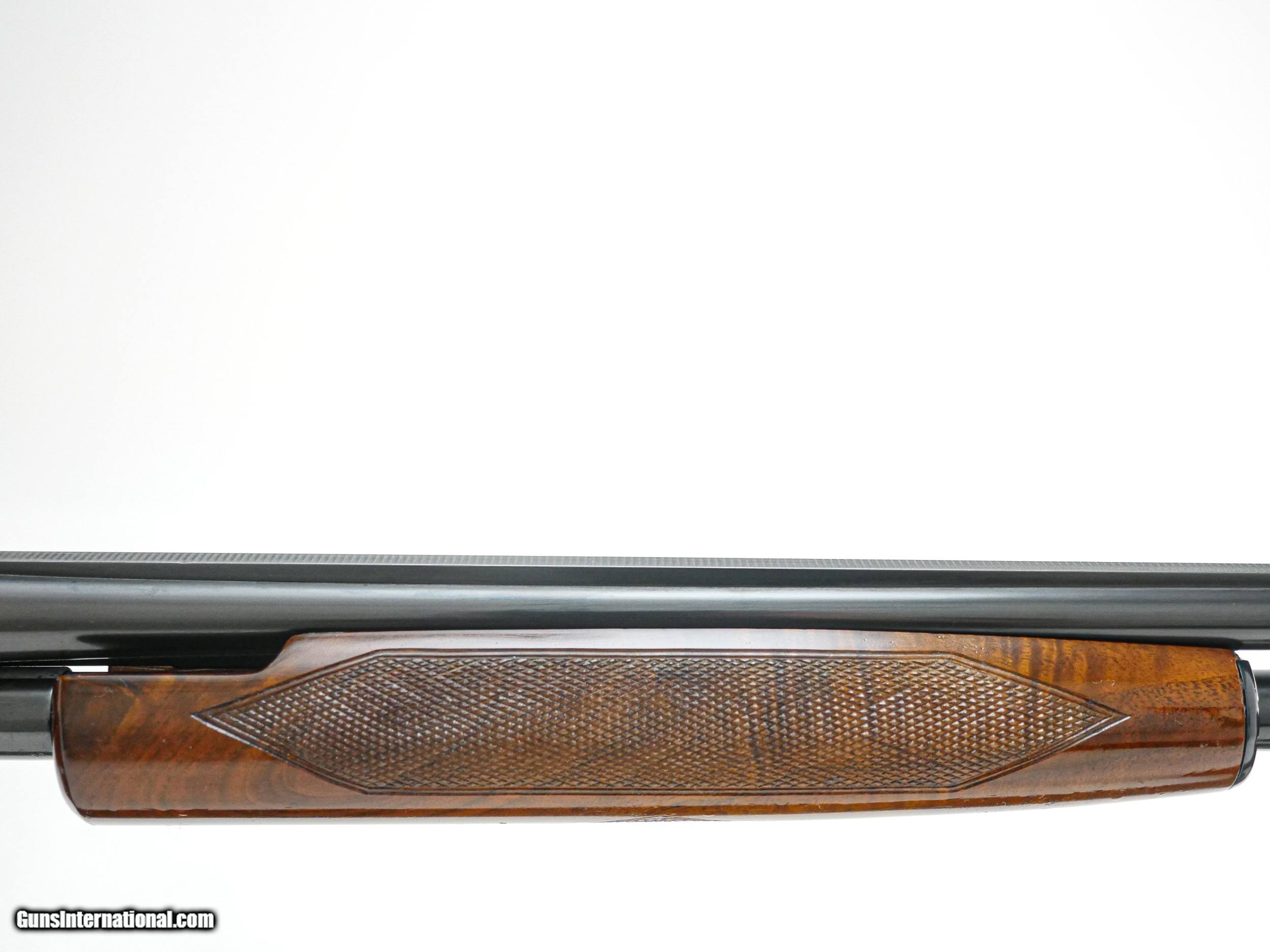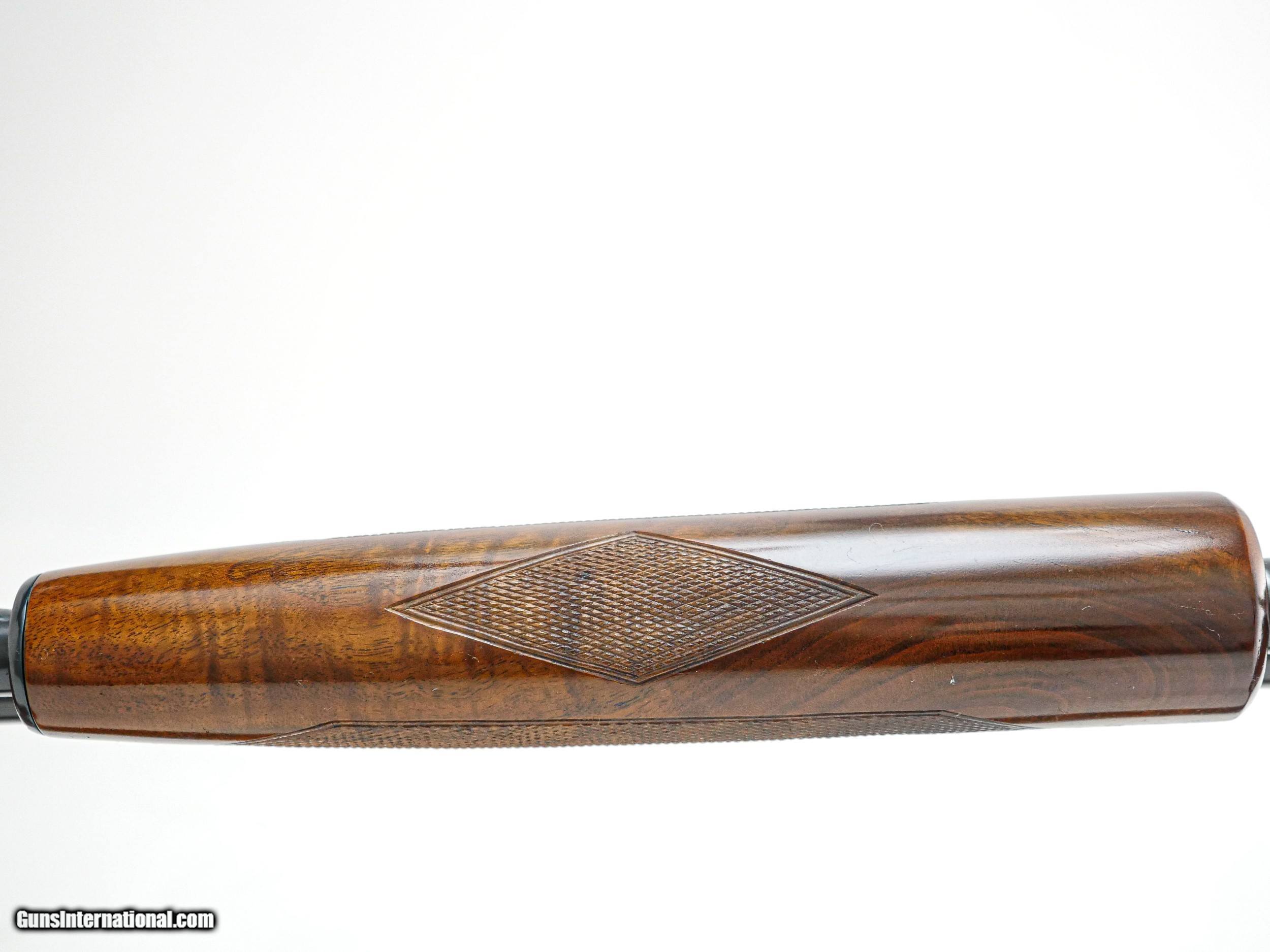 Description: Winchester - Model 42, .410ga. 28" Barrel Choked Full. Solid rib, deluxe checkered full fancy wood, capped pistol grip, butt plate 99% gun near perfect very sharp, very crisp. It has perfect screws, a great find. S&H - $50.00. Inv: 20457 6 lbs. 7.2 oz. 14 3/8" X 1" X 2" $5,995.00 SOLD |