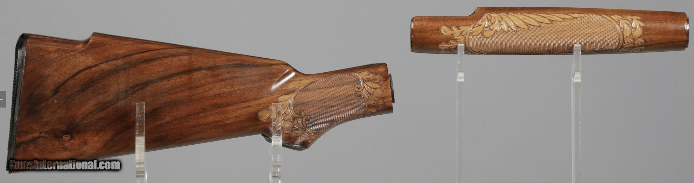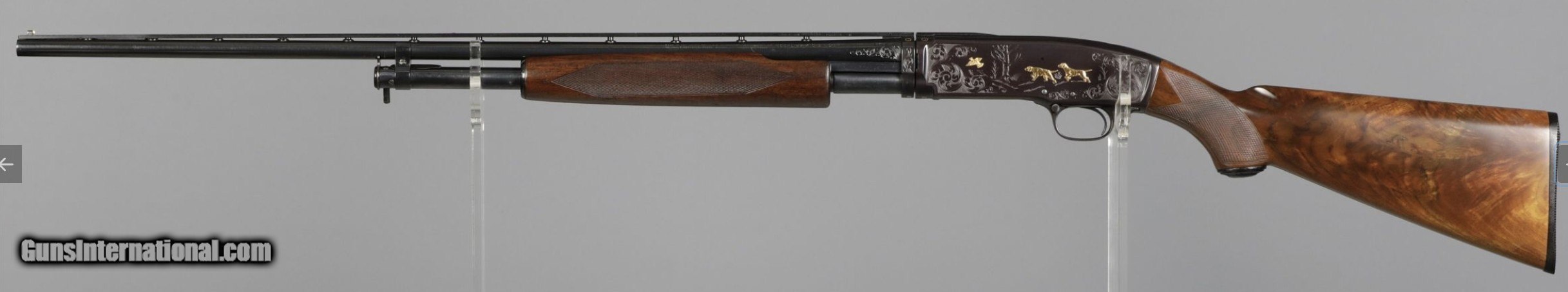 Description: Winchester Model 42 A Robertson Master Engraved Signed Gold Inlaid .410 Ga DISCRIPTION Manufactured in 1948 and subsequently upgraded with relief gold inlaid hunting dog and bird scenes on either side of the receiver, scroll engraving, and a Simmons vent rib. Signed "A. Robertson Engr." above the ejection port. Chamber marked 3", choke marked modified, and 14" LOP. Includes an extra well-figured and carved stock and forend set Condition Very good, with nearly all of the finishes, plum hue on the action, light handling evidence, a tiny chip from the right stock head, and crisp checkering. Mechanically needs work, improperly assembled and suck. Extra wood is very good. Contact Guy McRee (972) 670-8562 (Call or Text) Shotgun Gauge: .410 Gauge Price: $6,990.00 Shipping: $75.00 Pay with