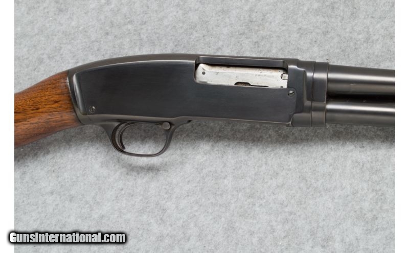 Description: SOLD Manufacturer: Circa: 1952 Caliber Info: .410 Bore Chambers: 3 Metal Condition: Excellent refinished bluing. Wood Condition: Very good; a few handling marks; finish is worn on forearm Bore Condition: Clean and bright Barrels: 26 Triggers: Smooth blued steel Stock: Smooth straight grip walnut (English style) Stock Dimensions: LOP - 14 Fore End: Grooved oval walnut Butt Pad: Black checkered Winchester butt plate Weight: 5 lbs. 13 oz. Sights: Silver bead front Chokes: Fixed - CYL bore (marked on barrel) Item Location: Fort Worth, TX |