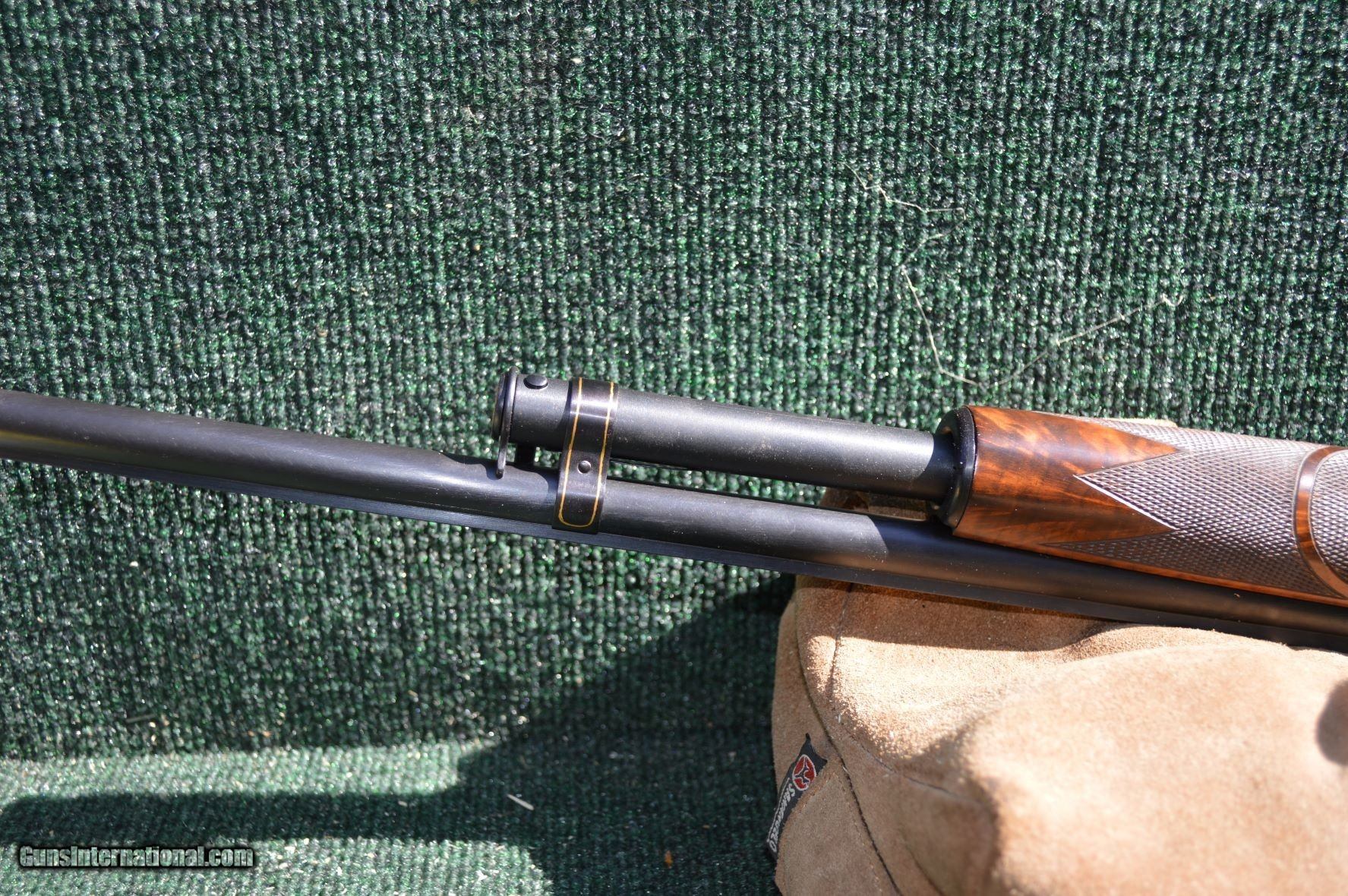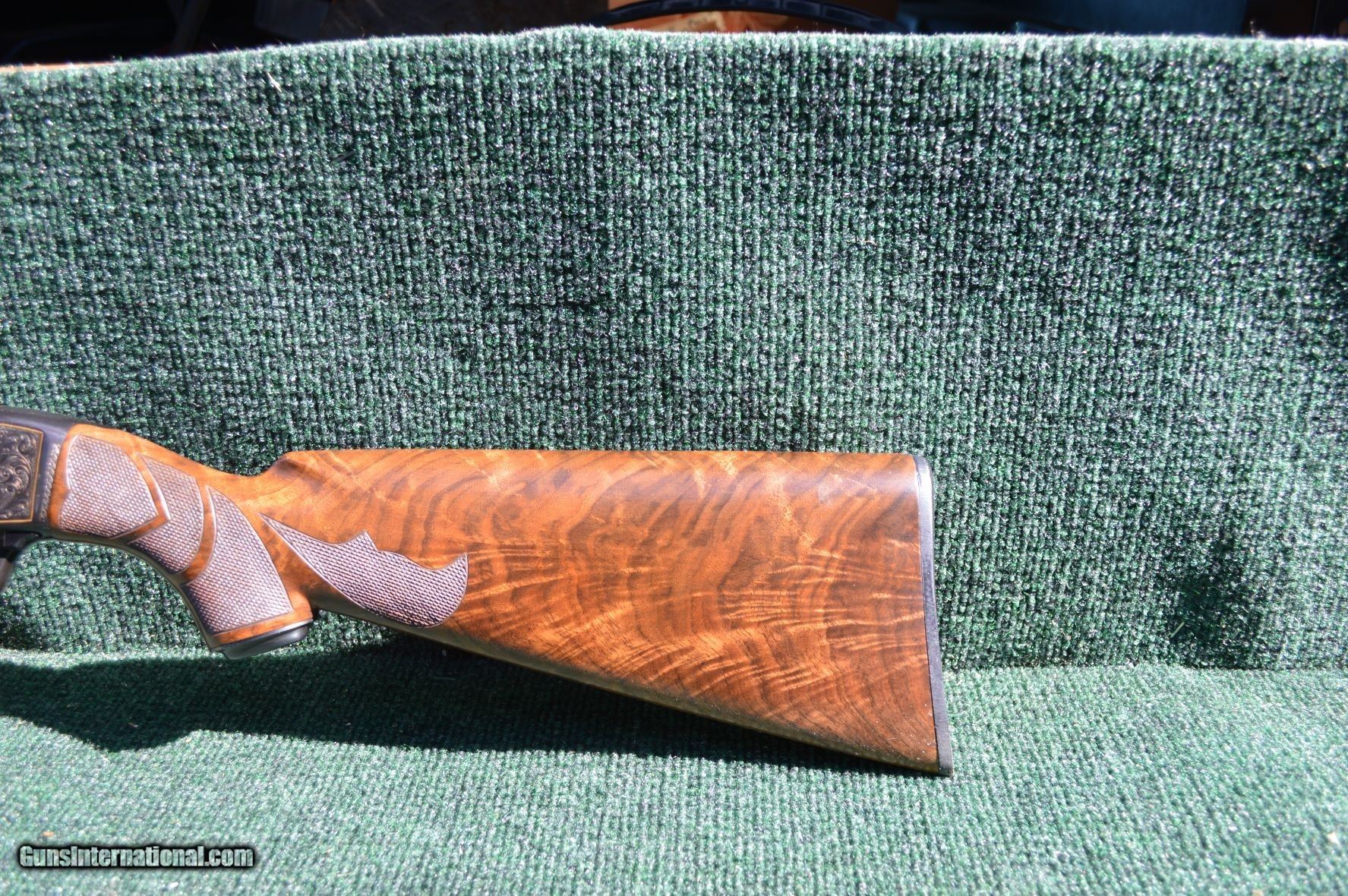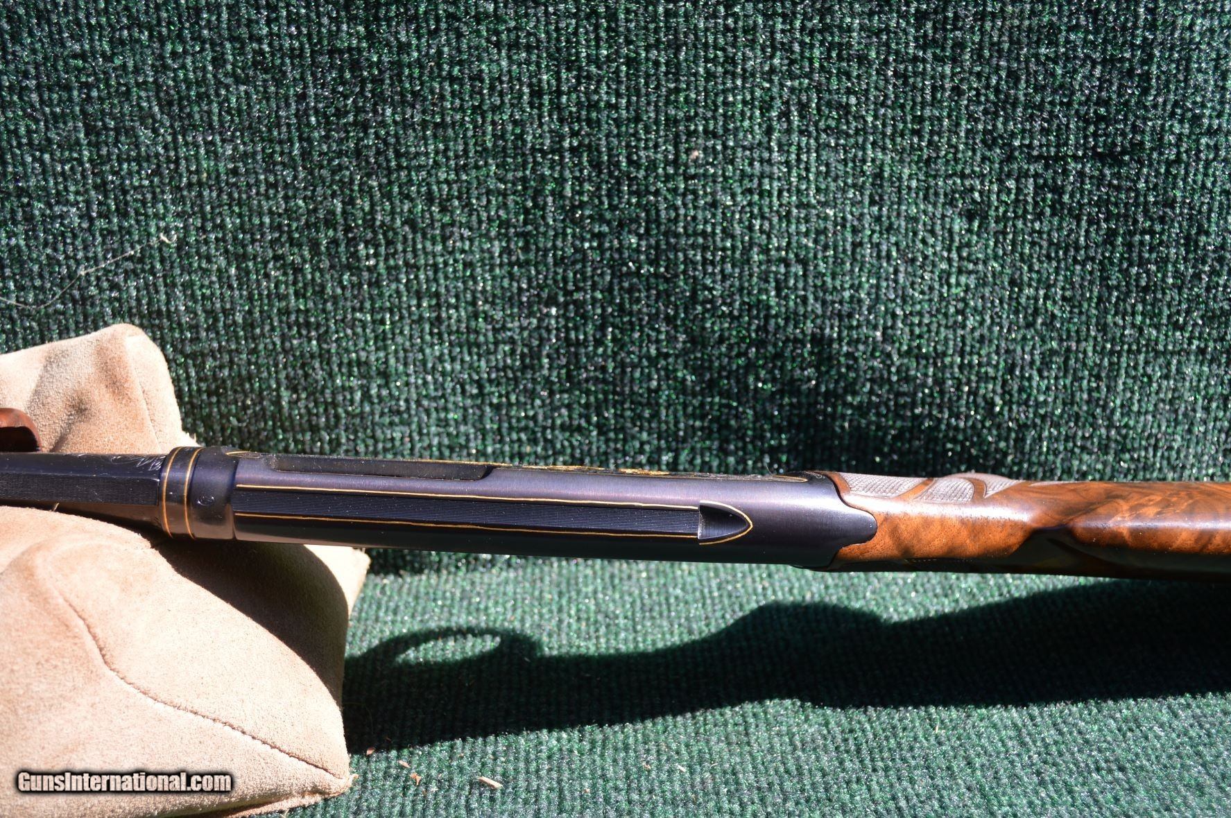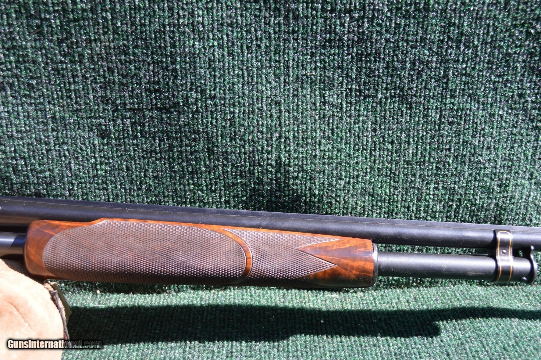 Description: Win Model 42 Shotgun in 410. Game scene engraved with many gold inlays. 26" solid rib Mod choked bbl. American Walunut custom stock with 'A' carved checkering. DAC 1 7/16. LOP 14". Ships in black plastic case to your FFL dealer. No Ca. or Intl. sales. SOLD Shotgun Gauge: .410 Gauge |