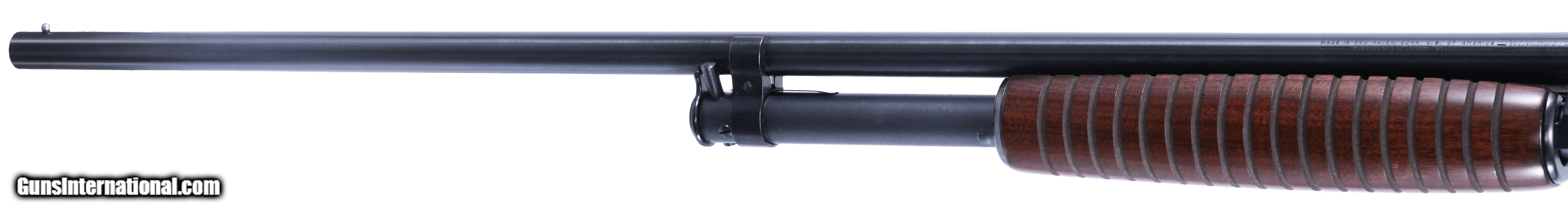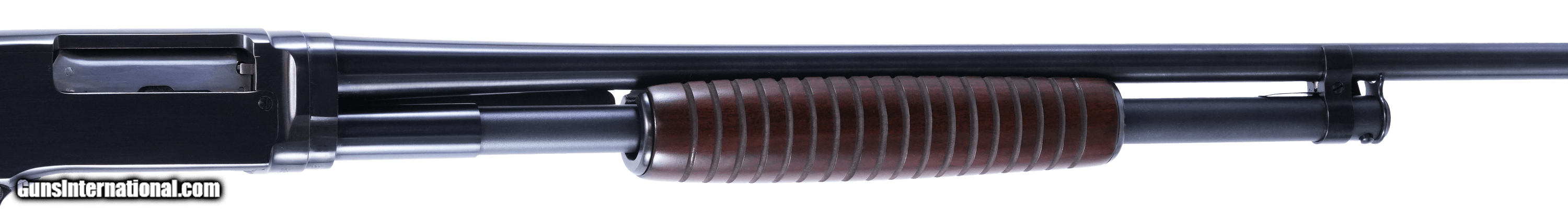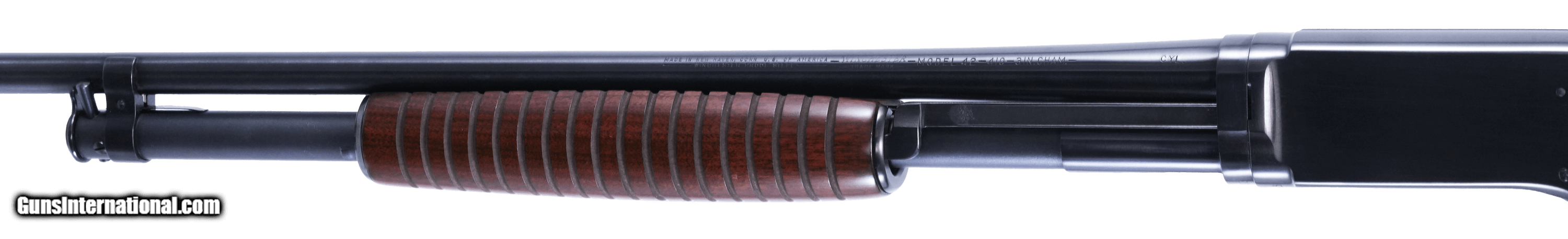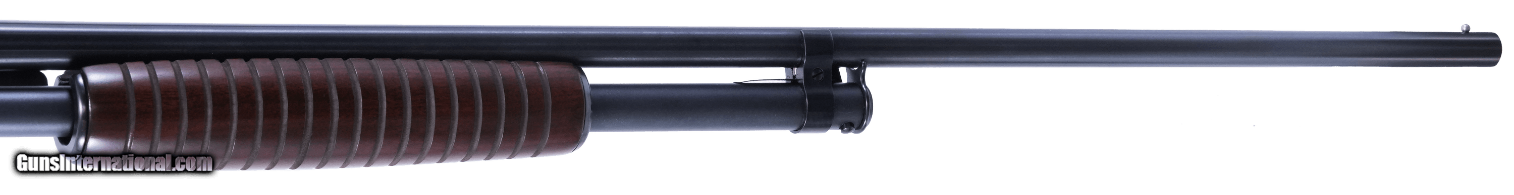 Description: WINCHESTER MODEL 42 FIELD 410GA 28" BARREL CYLINDER CHOKE **RARE** CIRCA 1950 SINGLE STEEL BEAD ON BARREL, 3" CHAMBER 28" BARREL MARKED CYL ON BARREL VERY FEW CYL CHOKE 42'S WERE PRODUCED ONE OF THE RARER MODELS TO FIND. The "WP" PROOF MARKS ARE IN THE BARREL AND RECEIVER WITH A TOOTSIE ROLL 14 GROOVE STYLE FOREARM WITH MINOR HANDLING MARKS ON STOCK, MECHANICALLY EXCELLENT. SOLD Shotgun Gauge: .410 Gauge Manufacturer: WINCHESTER Model: MODEL 42 FIELD Serial Number: 89033 Barrel Length: 28 Bore: EXCELLENT Chambers: 3 Condition: EXCELLENT Metal Condition: EXCELLENT Wood Condition: EXCELLENT Bore Condition: EXCELLENT Action: PUMP Triggers: SINGLE Stock: WALNUT Stock Comb: 1 1/2 Stock Heel: 2 1/8 Stock Cast: -0- Fore End: 14 GROOVE TOOTSIE ROLL STYLE FOREARM Butt Pad: ORIGINAL BUTT PLATE LOP: 14 Finish: BLUED Sights: STEEL FRONT BEAD Manufacture Date: 1950 Chokes: CYL |