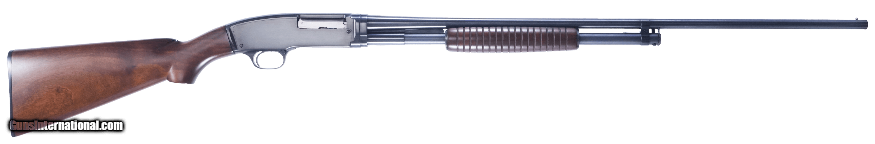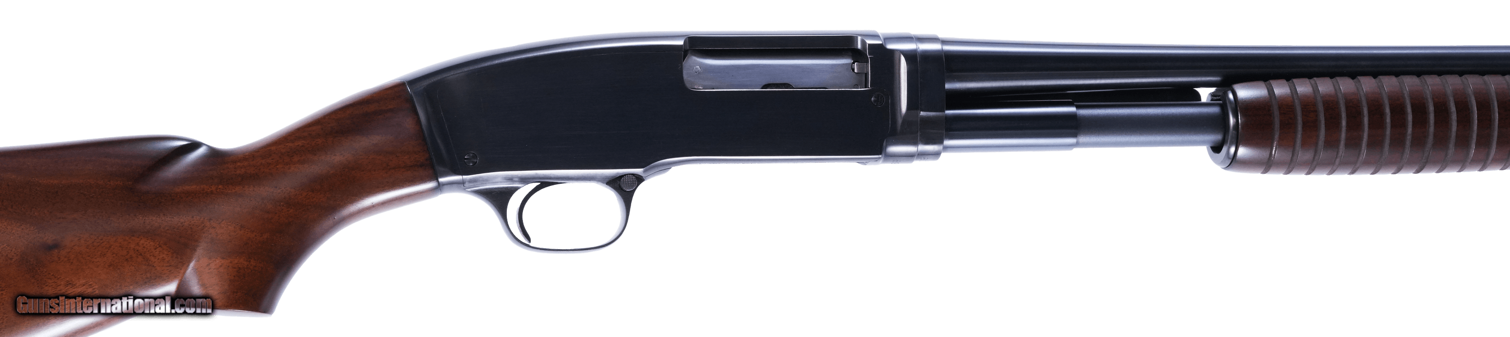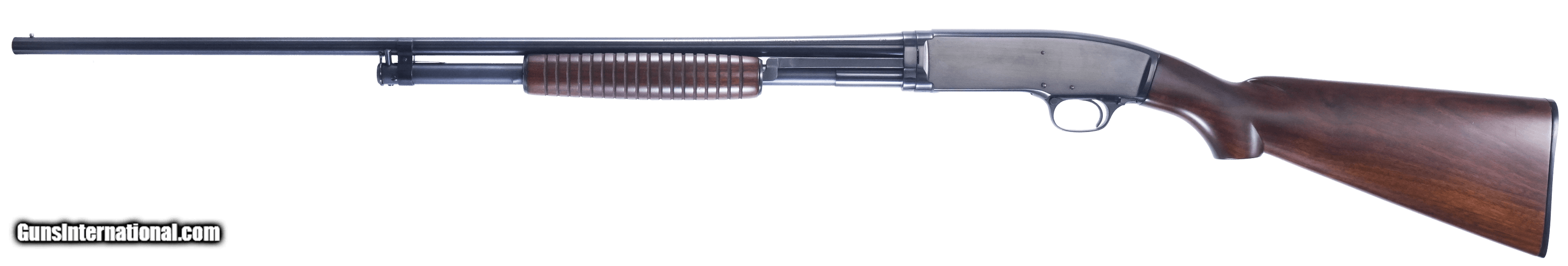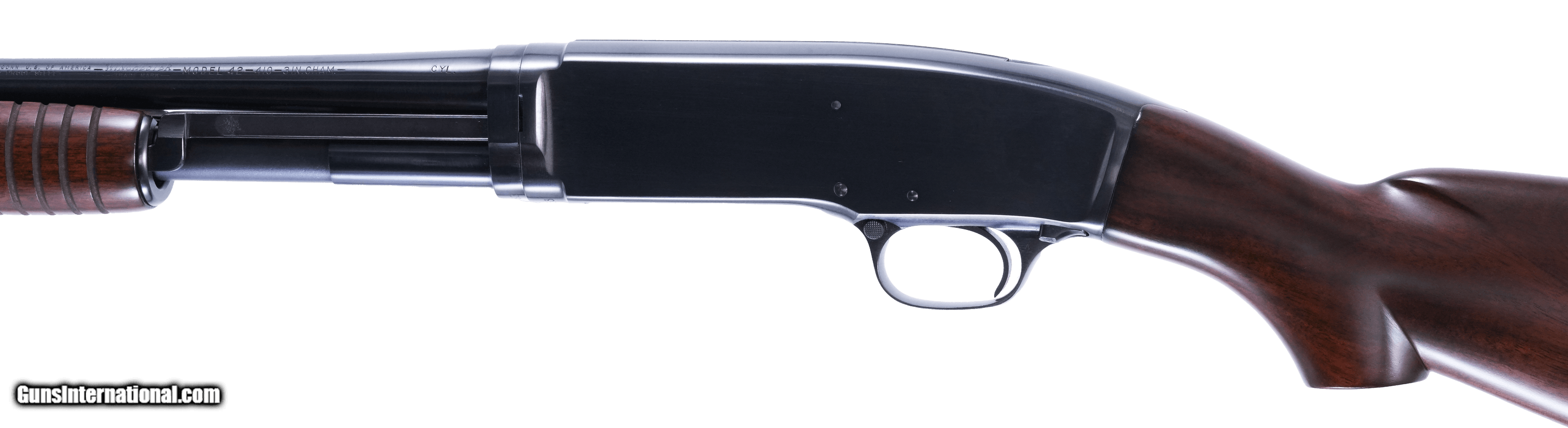 Description: WINCHESTER MODEL 42 FIELD 410GA 28" BARREL CYLINDER CHOKE **RARE** CIRCA 1950 SINGLE STEEL BEAD ON BARREL, 3" CHAMBER 28" BARREL MARKED CYL ON BARREL VERY FEW CYL CHOKE 42'S WERE PRODUCED ONE OF THE RARER MODELS TO FIND. The "WP" PROOF MARKS ARE IN THE BARREL AND RECEIVER WITH A TOOTSIE ROLL 14 GROOVE STYLE FOREARM WITH MINOR HANDLING MARKS ON STOCK, MECHANICALLY EXCELLENT. SOLD Shotgun Gauge: .410 Gauge Manufacturer: WINCHESTER Model: MODEL 42 FIELD Serial Number: 89033 Barrel Length: 28 Bore: EXCELLENT Chambers: 3 Condition: EXCELLENT Metal Condition: EXCELLENT Wood Condition: EXCELLENT Bore Condition: EXCELLENT Action: PUMP Triggers: SINGLE Stock: WALNUT Stock Comb: 1 1/2 Stock Heel: 2 1/8 Stock Cast: -0- Fore End: 14 GROOVE TOOTSIE ROLL STYLE FOREARM Butt Pad: ORIGINAL BUTT PLATE LOP: 14 Finish: BLUED Sights: STEEL FRONT BEAD Manufacture Date: 1950 Chokes: CYL |
