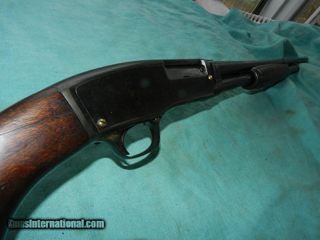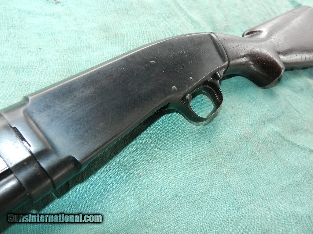 Description: <<<<SOLD>>>>> A shooter grade this Winchester Model 42 takedown has a factory 23" barrel , and mirror clean shiny bore with a choke of rare MOD. and exterior has a dull blue wearing to grey on top of the breech frame and breech of the barrel , possibly could have been re-blued? Two screws on the side plate left side look not original, but are available. The original grooved American walnut forend has a stress crack but it's solid as the stock also has stress cracks on each side flats behid the breech end of the frame, but still solid.. so this is a shooter grade , not investment grade. if you want a very good pump .410 for reasonable money this is it! Has what appears to be the original Winchester black hard rubber butt-plate with a LOP of about 14 1/2". The SN 558XX is matching. Year made is 1947 right after the war and normal production started again.Shipping may be higher than stated as shippers raise their prices twice year without notice! When buying a gun always have it examined by a competent gunsmith before shooting. To buy a gun from me you must get a direct email for me, with details, and shipping cost. We don’t have a web site .I prefer money orders or a check. Item ships when funds come in. I try to keep guns affordable, which means I make less money than most dealers. You won’t get altitude sickness, or nose bleed, with my prices! I consistently have the best selection of older guns If you attempt to buy, you must still contact us for details . Best to email to buy. Sometimes a local person can stop buy and purchase before the gun is removed. Sometimes not home to get calls. Some guns are required shipment to a gun dealer near you for a transfer to you when it arrives. Otherwise many older or black powder guns ship to your door. With the widest selection of older guns at great prices, We don’t have a store, and sell on the internet only. I’m easy to get along with. Than SOLD Curio/Relic: Yes |