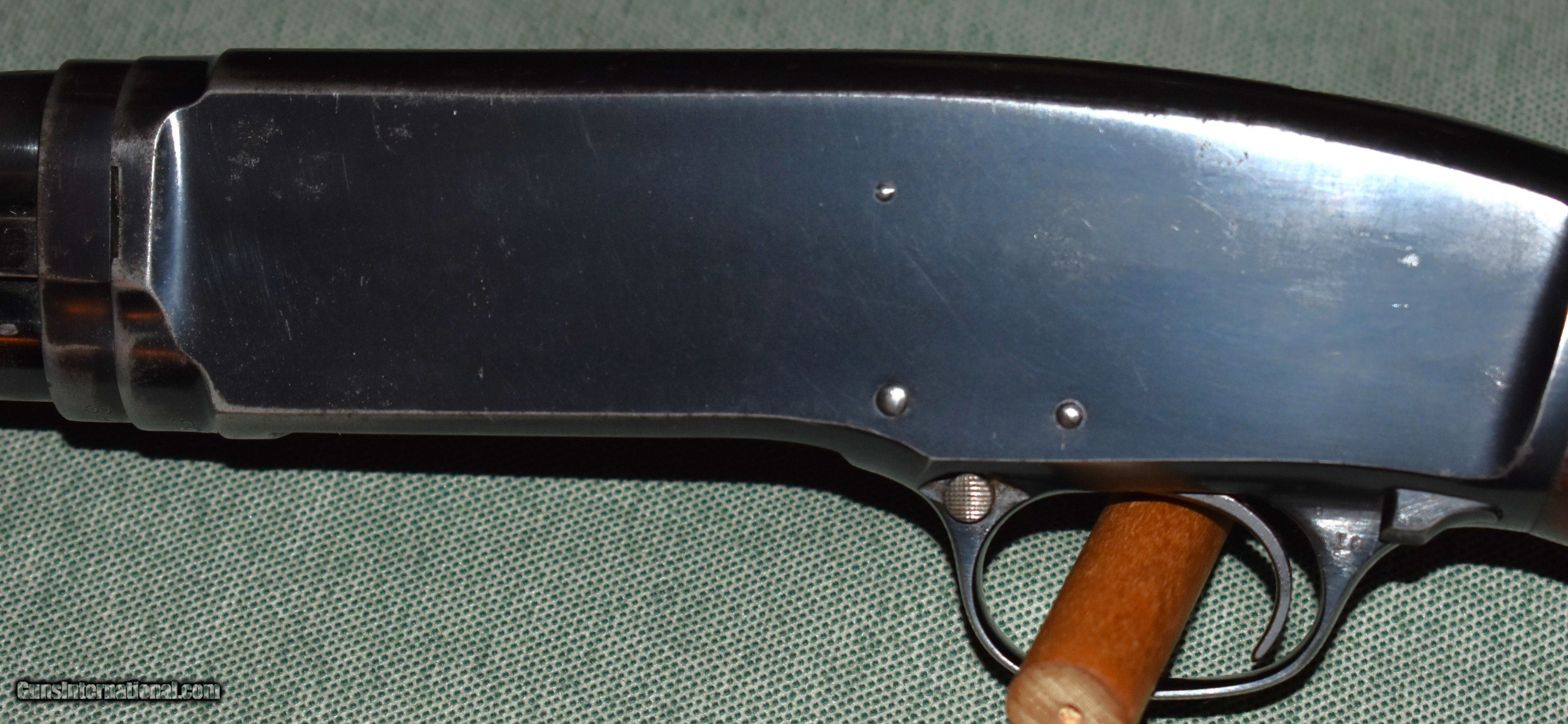 Description: Winchester model 42 field grade 410 gauge built in 1954. This gun has a 28" full choke barrel with a mint bore. The gun is in excellent original condition. It retains 95% of the original blue and wood finish. The action works smoothly and feeds and ejects properly. The stock and forend are sound with no cracks or damage, just a few light handling marks. This would make a great little upland gun for birds or small game. The 42s have become very collectible as well. C&R eligible. Price includes shipping to your FFL. SOLD Curio/Relic: Yes Shotgun Gauge: .410 Gauge Manufacturer: Winchester Model: 42 Field Grade Serial Number: 113358 Barrel Length: 28 Chambers: 3 Condition: excellent Metal Condition: excellent Wood Condition: excellent Bore Condition: mint Barrel Type: Winchester Proof Steel Action: Pump Fore End: Small Flat Bottom Butt Pad: Factory Buttplate Manufacture Date: 1954 Chokes: Full |