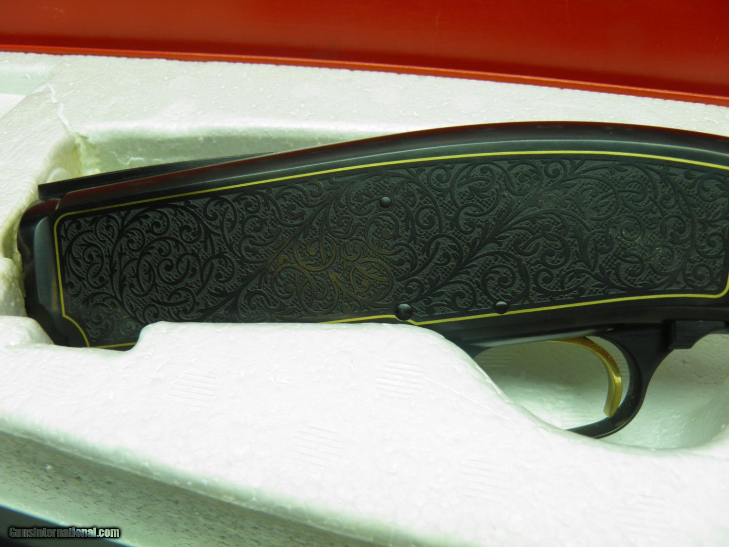 Description: WINCHESTER MODEL 42 410 BORE "HIGH GRADE" LIMITED EDITION 1 OF 850 MFG: 1993 ONLY. 26" VR BARREL FULL CHOKE, TUBE MAG HOLDS SIX, OVERALL LENGTH 45", APPROX: WEIGHT 6 3/4 LBS LBS, LENGTH OF PULL 14", BEAUTIFUL FANCY GRADE 6 WOOD, WITH MODEL 42 HAND CUT CHECKERING, SPECIAL OLD STYLE # 7 ENGRAVING WITH GOLD TRIM BORDER. ONE BEAUTIFUL MODEL 42!!! "CONDITION" 100% NEW AND UNFIRED IN FACTORY BOX WITH ALL THE PAPERS! SOLD |