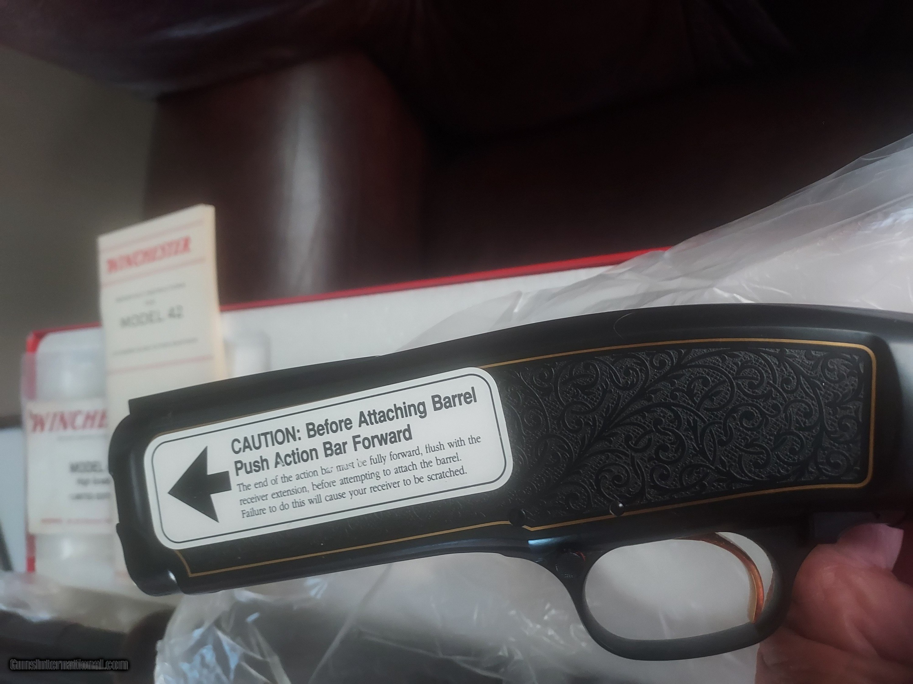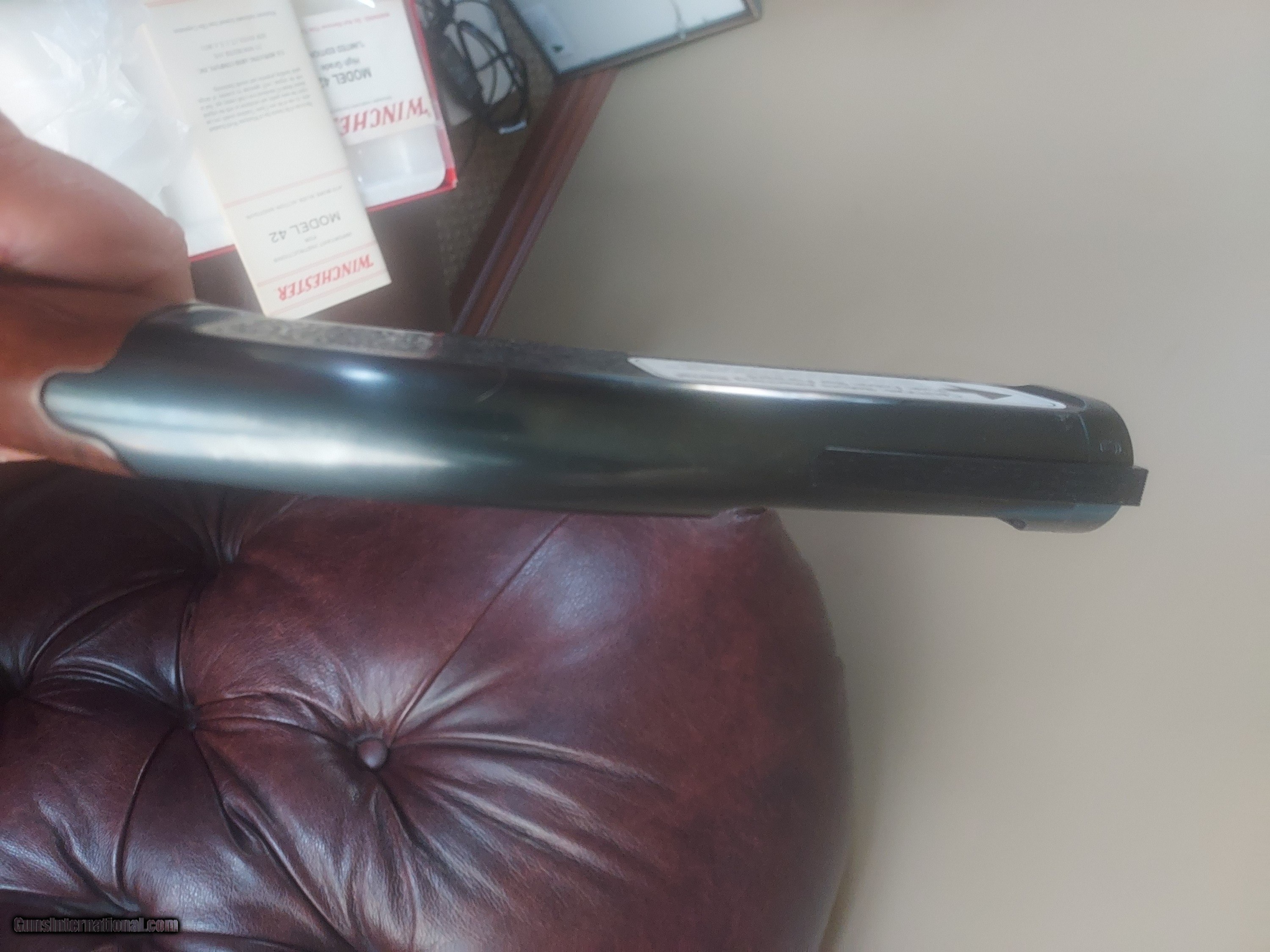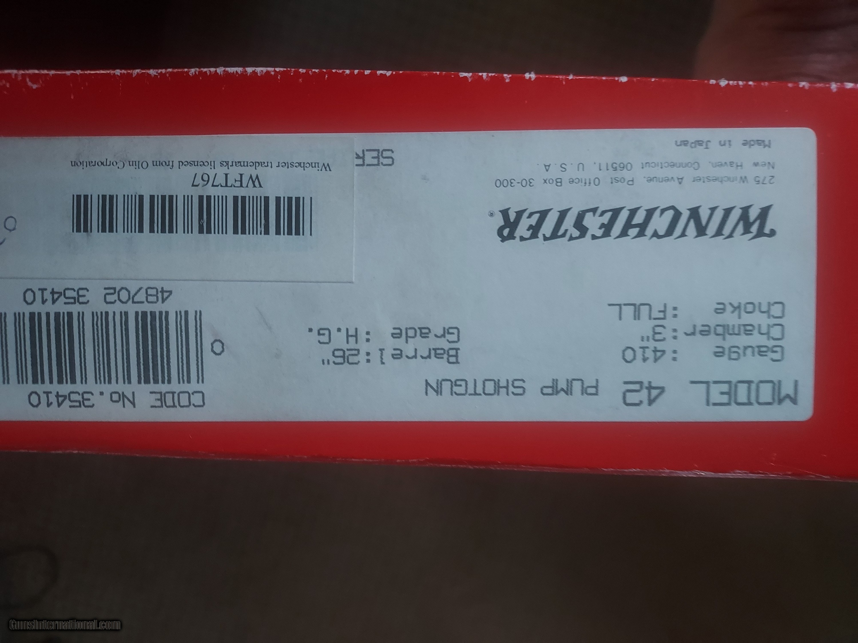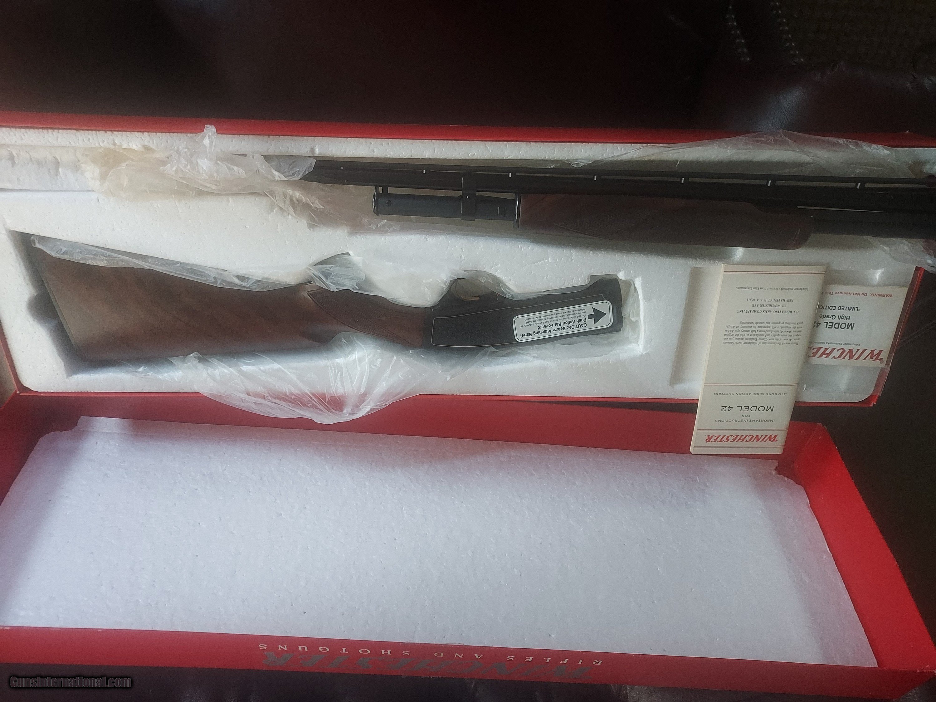 Description: This model 42 High Grade in "new in the box". It comes with the numbers matching box and booklets. It has a 26" full choke barrel. There are no marks on the wood or metal-99% gun. SOLD |