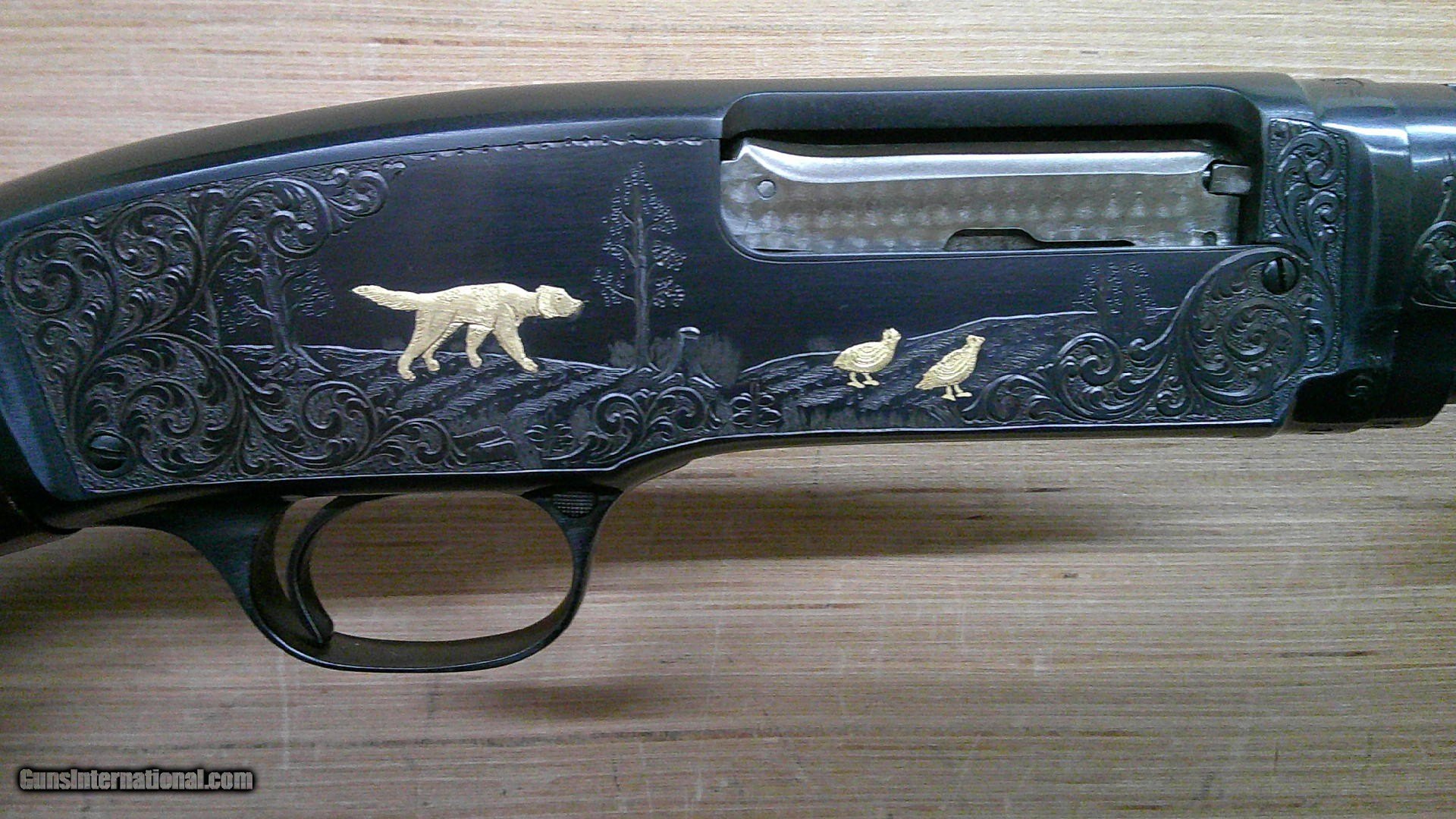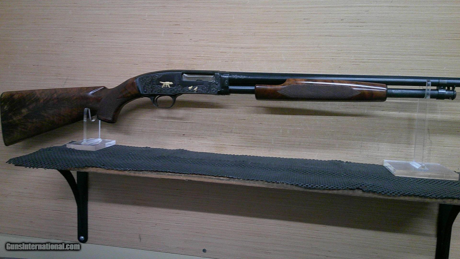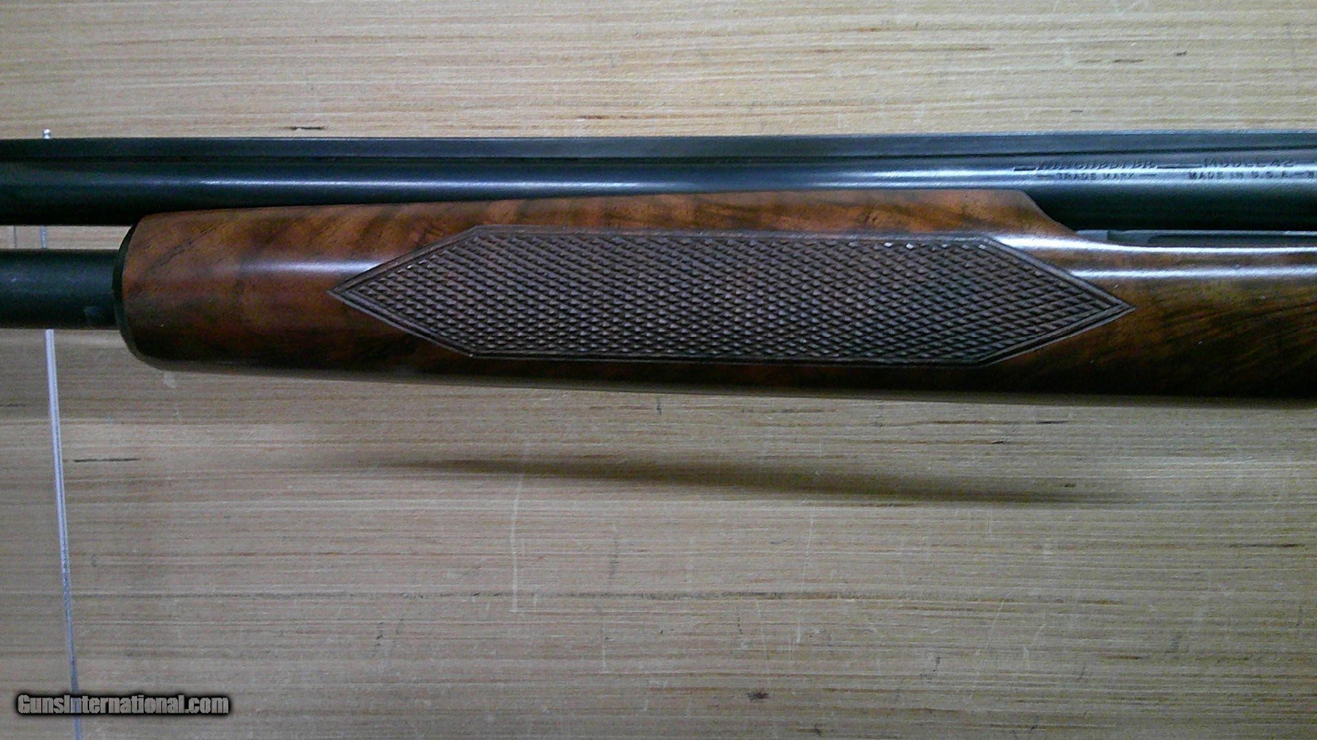 Description: CONSIGNMENT APPEARS UNFIRED WINCHESTER MODEL 42 PIGEON DELUXE ENGRAVED CUSTOM GAME SCENE 410 GAUGE -- 26" SOLID RIB BARREL FIXED FULL CHOKE -- DELUXE CHECKERED WOOD STOCK APPEARS UNFIRED- BORE IS BRIGHT & SHINEY SERIAL # IS 1624xx *** PRICE INCLUDES SHIPPING & INSURANCE ****PLEASE CALL IN THE WITH THE SELLER’S INVENTORY NUMBER IF INQUIRING ABOUT A FIREARM****** WE DO NOT SHIP FIREARMS AND/OR FIREARMS’ PARTS OUT OF THE 50 UNITED STATES, SO DON’T ASK—YOU NEED TO KNOW IF FIREARM IS LEGAL FOR YOUR STATE PRICE REFLECTS PAYMENT BY MONEY ORDER / CASHIERS CHECK. A 3% PREMIUM IS ADDED FOR CREDIT CARDS. WE DO ACCEPT PERSONAL OR BUSINESS CHECKS, BUT THERE IS A GRACE PERIOD OF 10 BUSINESSS DAYS ON THEM. Shipping is $60 for handgun and $50 for long gun. Shipping to Alaska and Hawaii will be more based on weight of firearm. USPS SHIPPING IS HIGHER. WE DO OFFER LAYAWAY PLANS FOR 30,60, OR 90 DAYS.NOT ON CONSIGNMENT GUNS THERE IS A $5.00 CHARGE FOR EVERY 30 DAYS ITEM IS ON LAYAWAY. WE ALSO REQUIRE A 20% DOWN PAYMENT ON TOTAL OF LAYAWAY SALE. LAYAWAYS ARE NON- REFUNDABLE. HERE IS HOW THIS PROCESS WORKS. YOU WOULD CALL US AT 540-337-9218 WITH LISTER # TO PURCHASE THE GUN. THEN ONCE I HAVE RECEIVED PAYMENT AND AN FFL (FEDERAL FIREARMS LICENSE) FROM A LICENSED DEALER IN YOUR AREA OF YOUR CHOICE. WE WILL THEN SHIP THE GUN TO THEM. YOU WOULD THEN PICK UP THE GUN AT YOUR LOCAL DEALER AND DO PAPER WORK THERE. Please have your FFL Dealers contact information when you call. DOMINION OUTDOORS 15 ANGELA COURT FISHERSVILLE, VA 22939 540-337-9218 540-337-2422 fax M – F 9 a.m. to 6 p.m. ETZ Sat 9 a.m. to 4 p.m. ETZ ****PLEASE CALL IN THE WITH THE SELLER’S INVENTORY NUMBER**** ***PLANO HARD CASES AVAIABLE FOR PURCHASE $25.00 WITH THE PURCHASE OF A FIREARM** *** Online prices compared to in store prices will vary. *** SOLD |