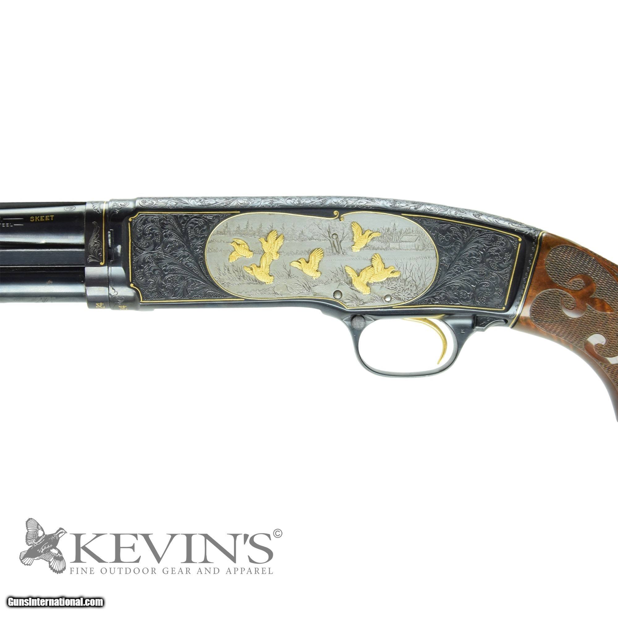Description: Winchester Model 42 Pigeon Grade .410 Custom Engraving Shotgun Gauge: .410 Gauge Manufacturer: Winchester Model: Model 42 Pigeon Grade Barrel Length: 28in Chambers: 3in Condition: Great Barrel Type: Single Action: Pump Action Triggers: Single Stock: Semi-Pistol LOP: 14 1/4in Finish: Blued / Coin / Gold Inlay Weight: 6.45 lbs Chokes: Skeet Engraving: Custom Price: $29,995.00 Contact Seller |